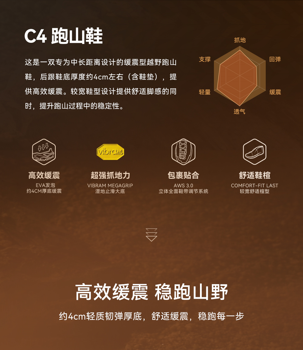 KAILAS凯乐石 户外运动 男款低帮跑山徒步鞋(C4) KS2513114