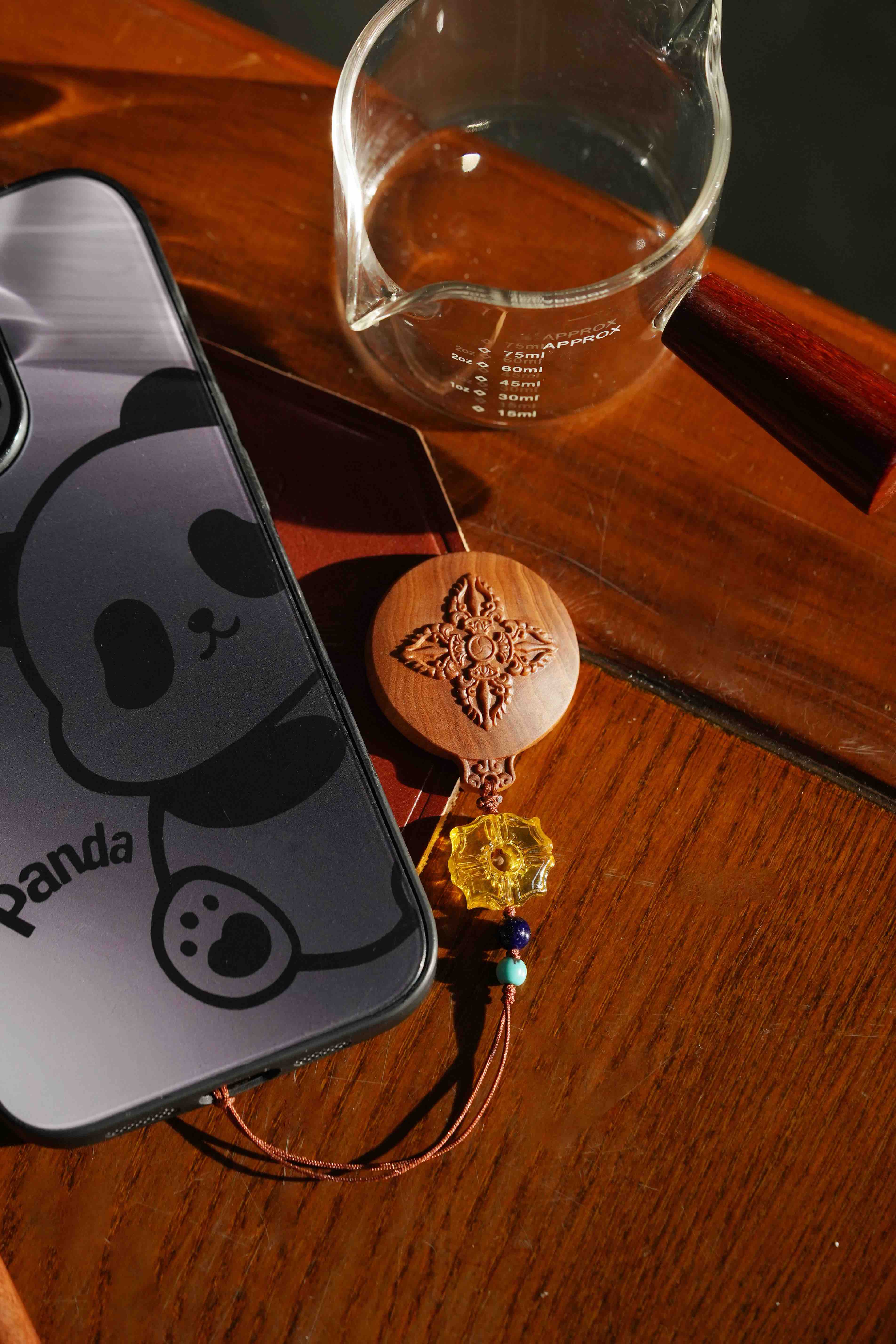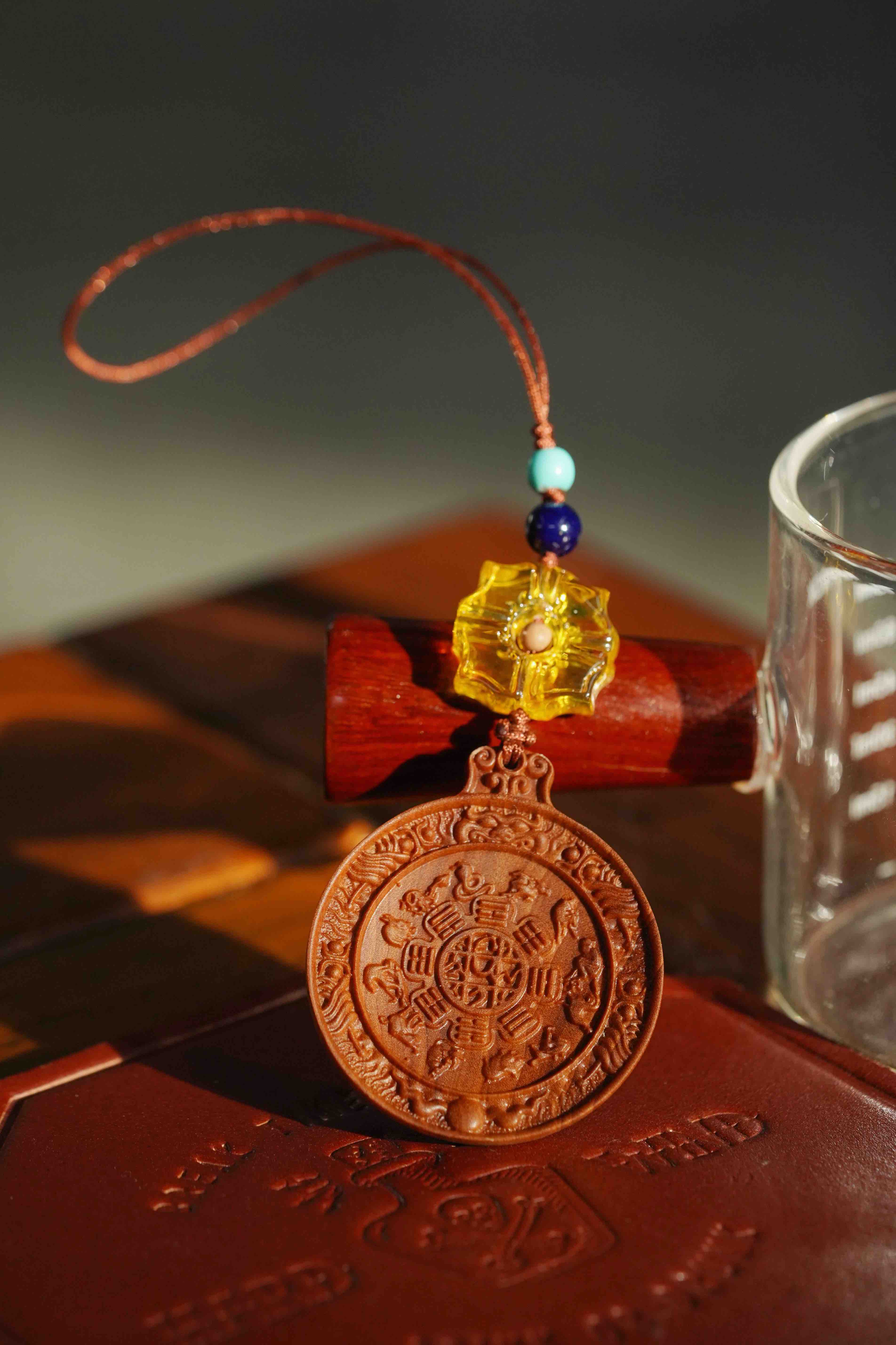 老山檀太极手机挂,一整块老山檀料子雕刻的特别厚实,足足的迈索尔老山檀用料。