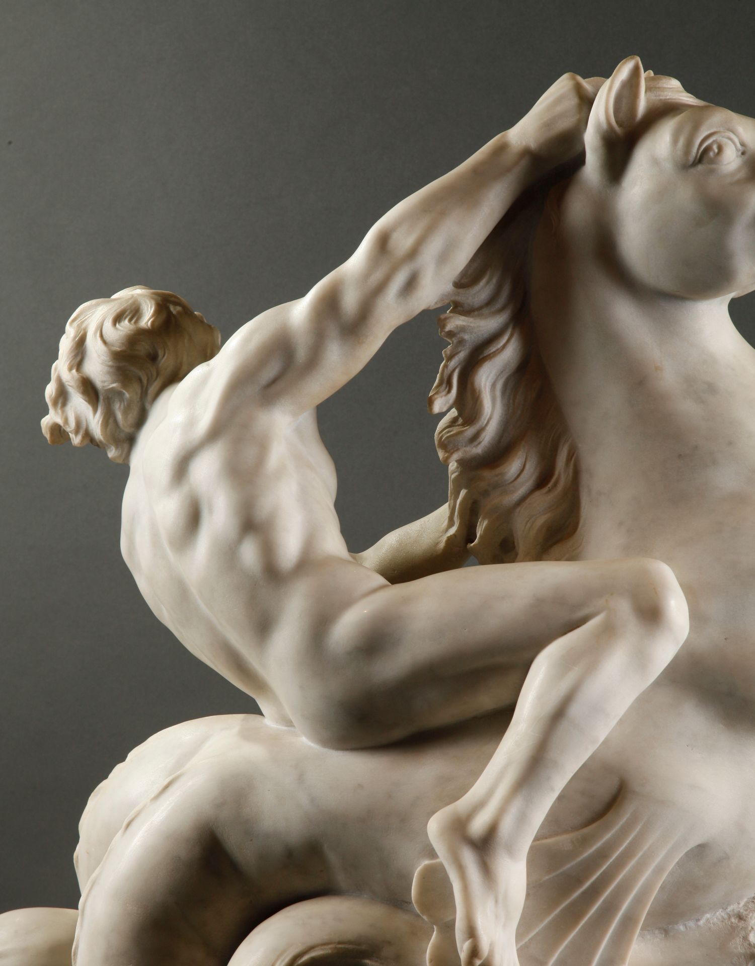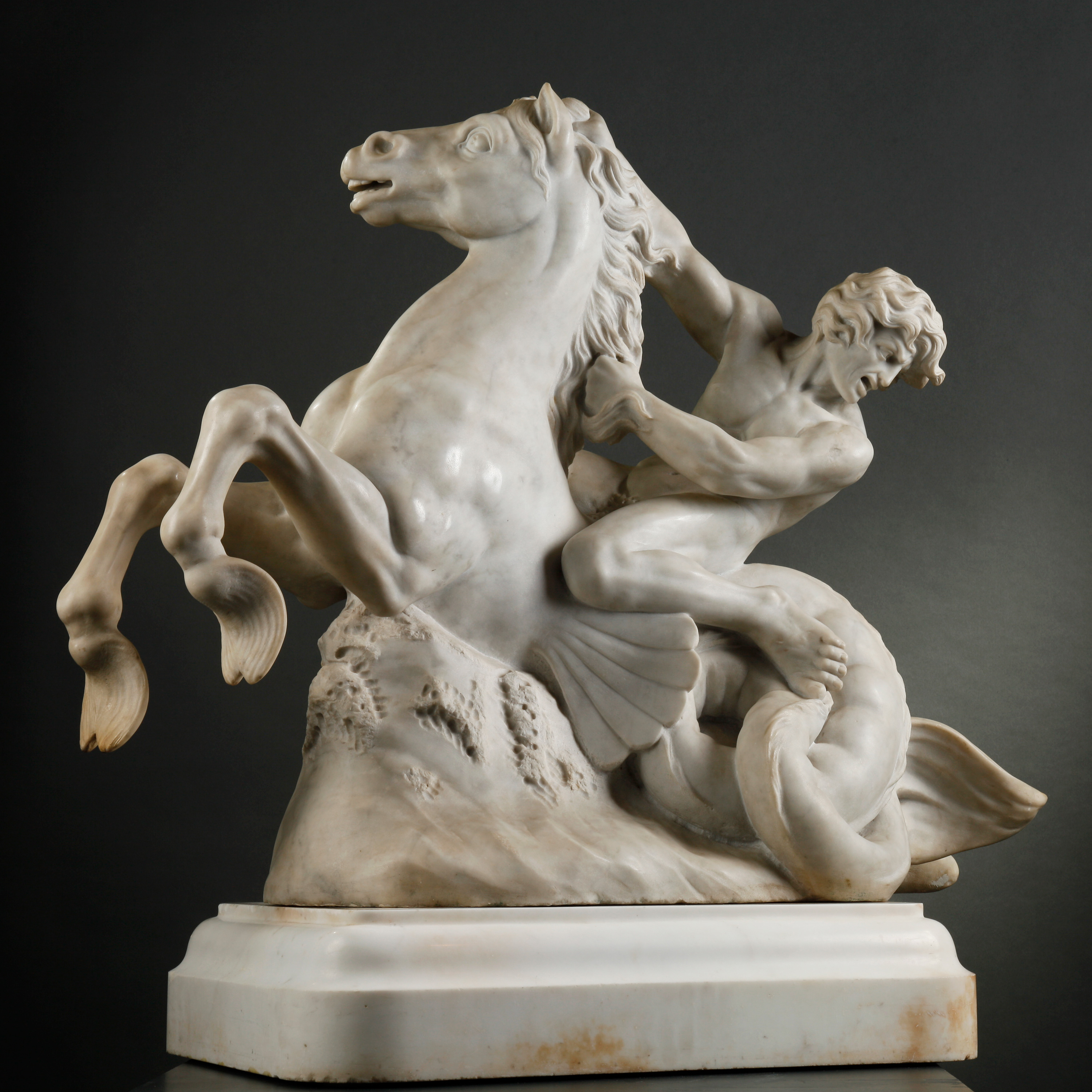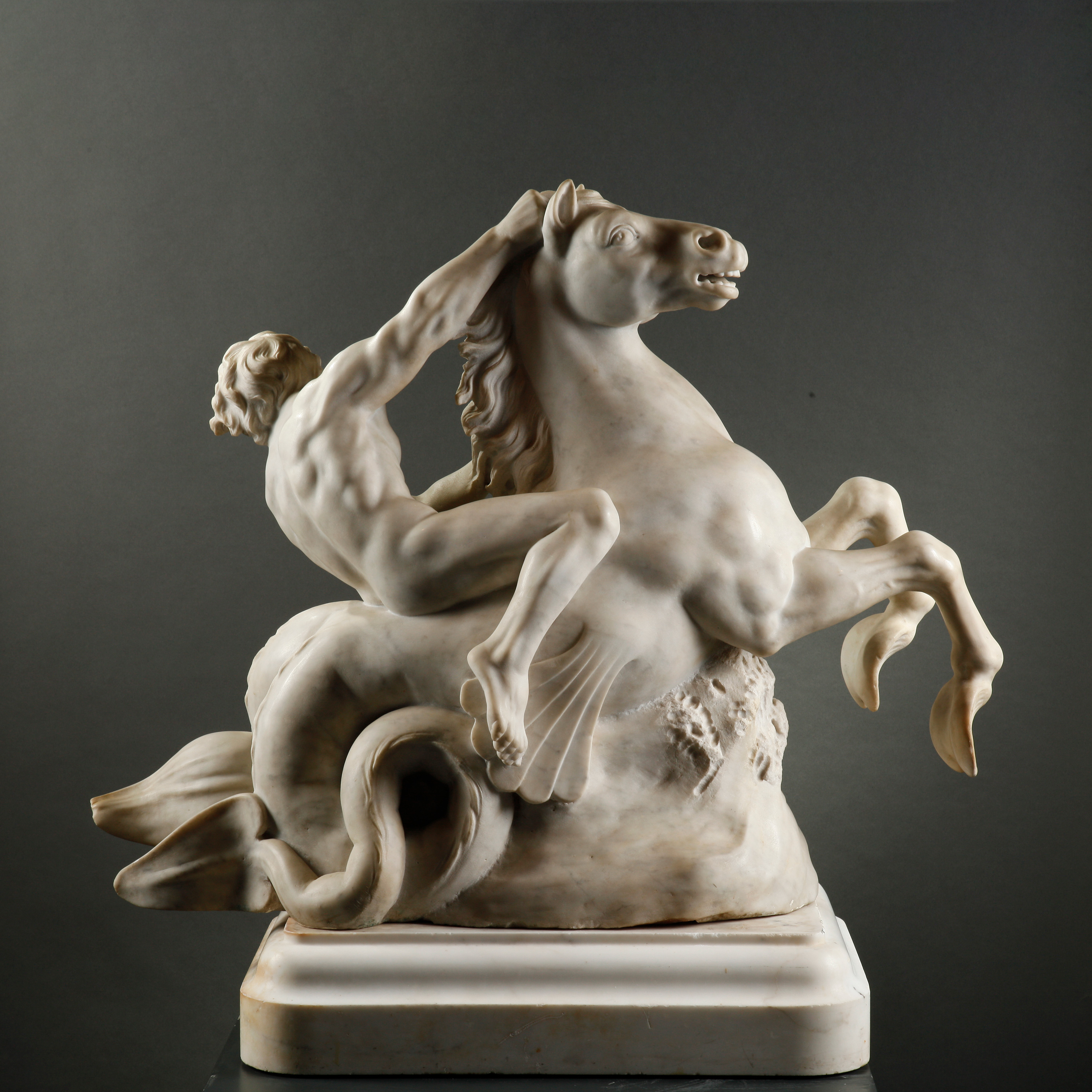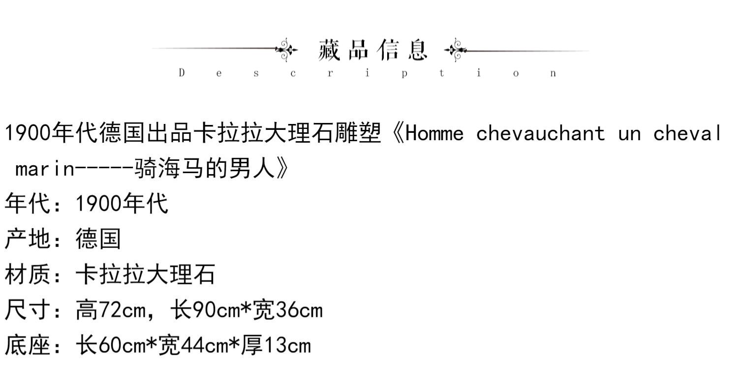独角鹿西洋古董德国卡拉拉大理石雕塑《骑海马的男人》