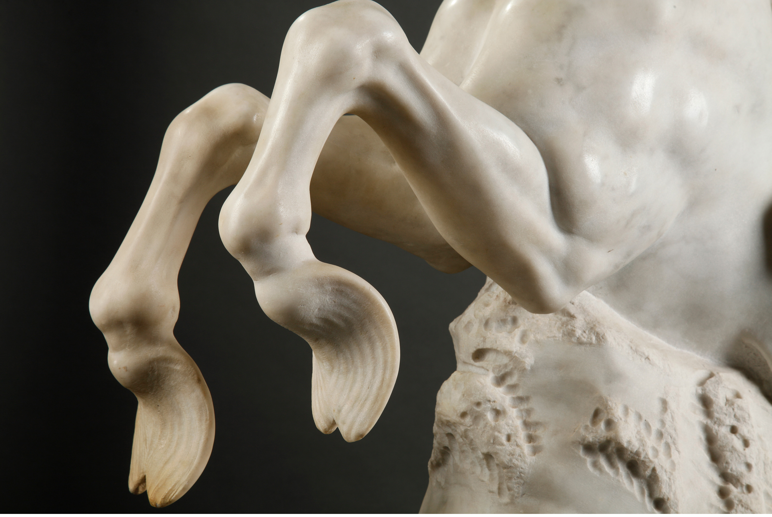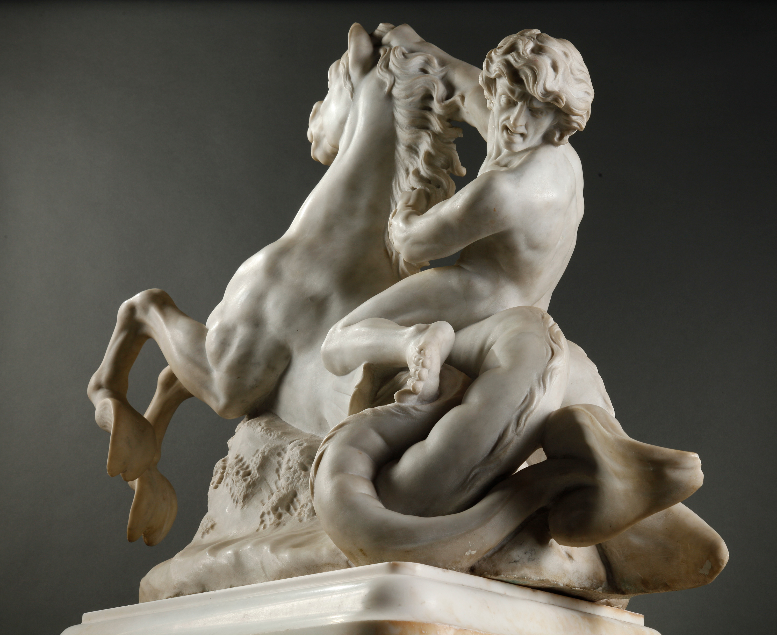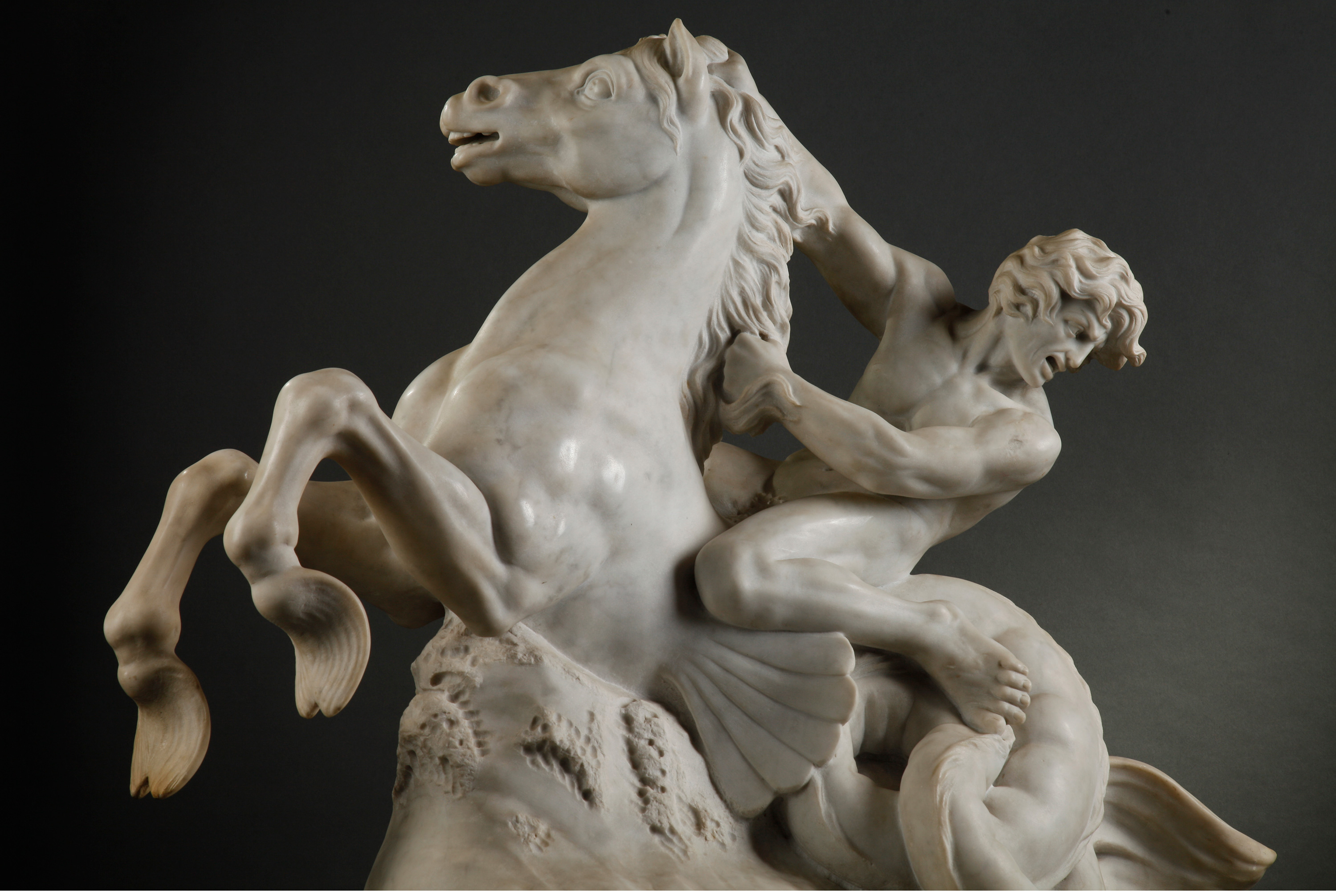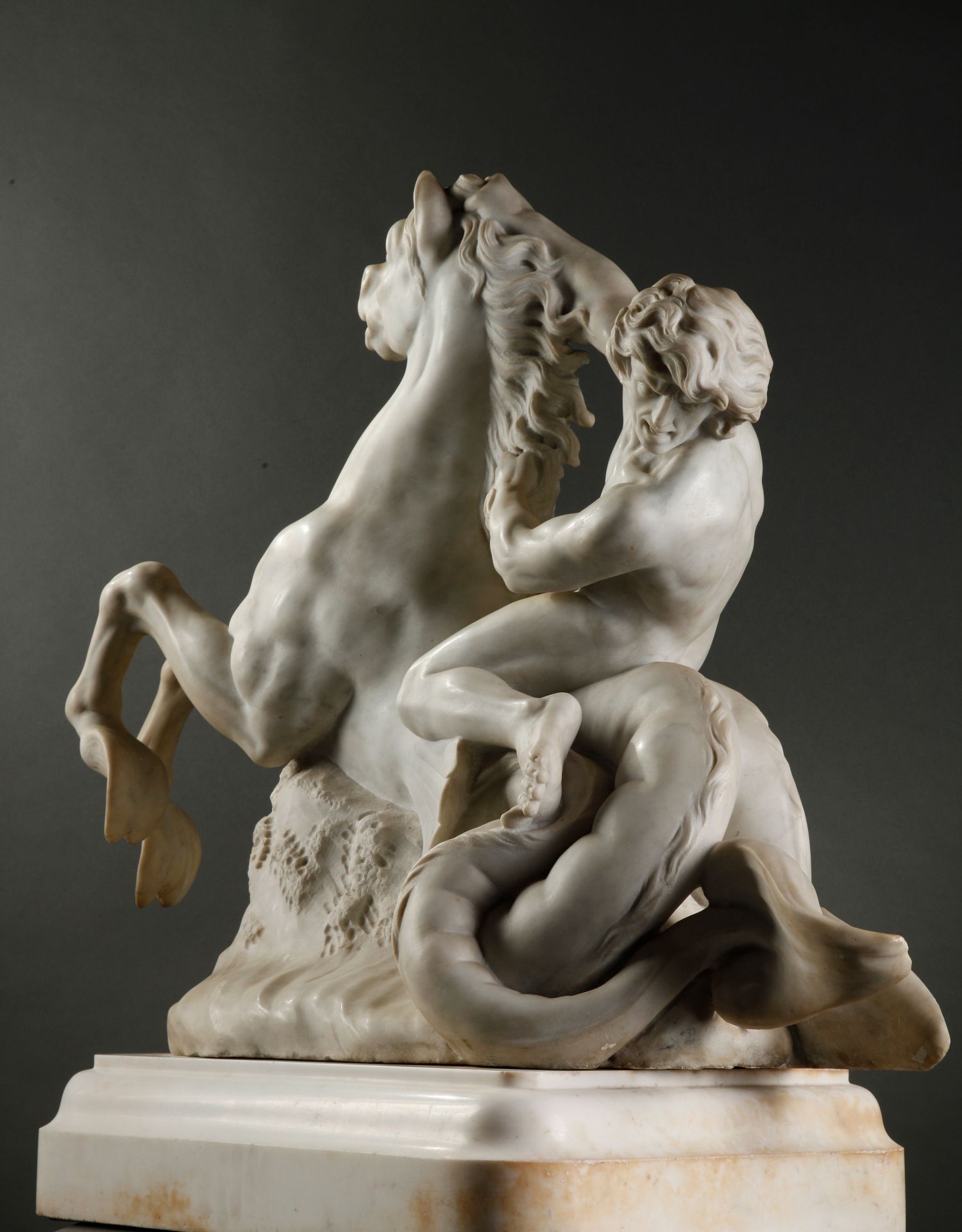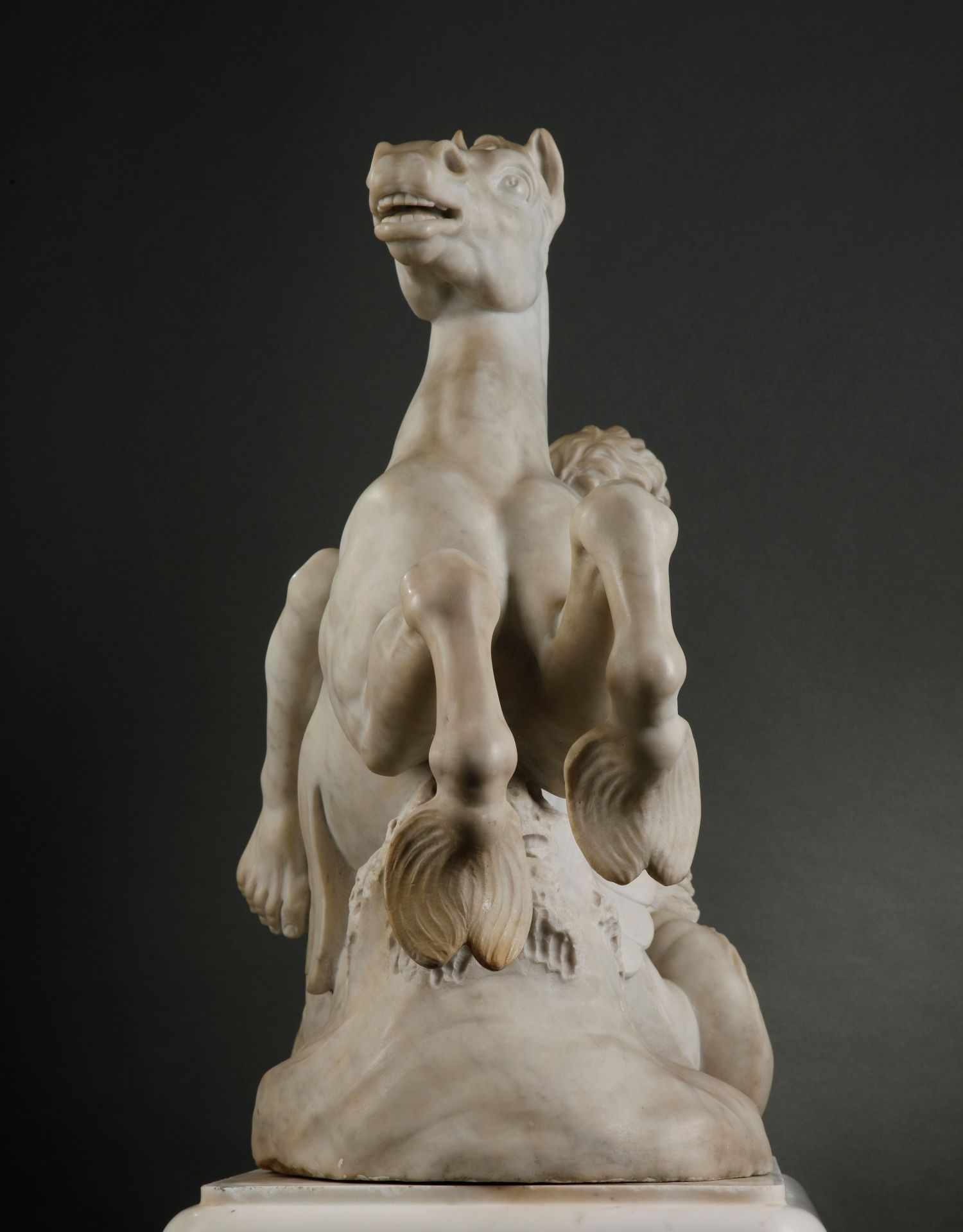 独角鹿西洋古董德国卡拉拉大理石雕塑《骑海马的男人》