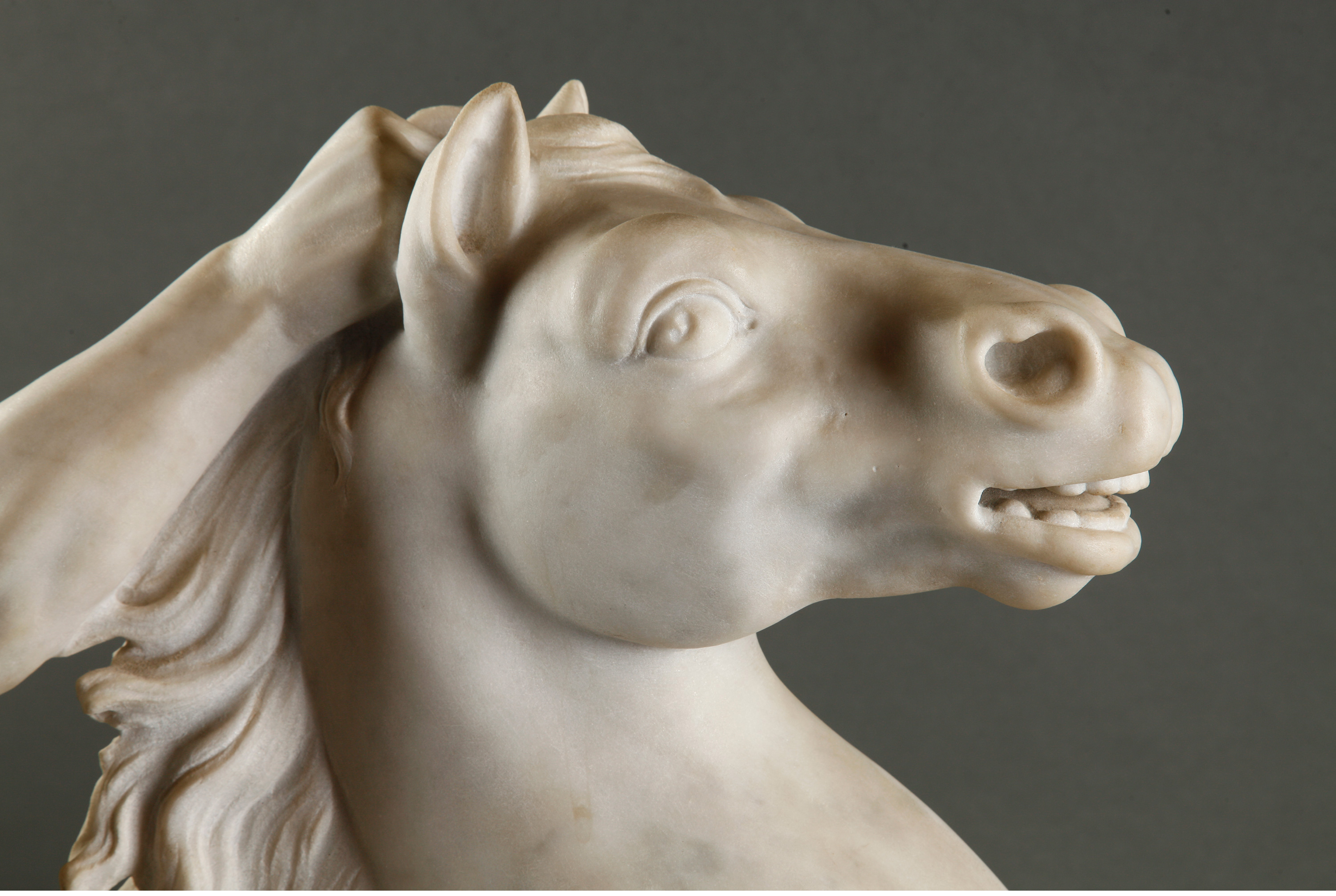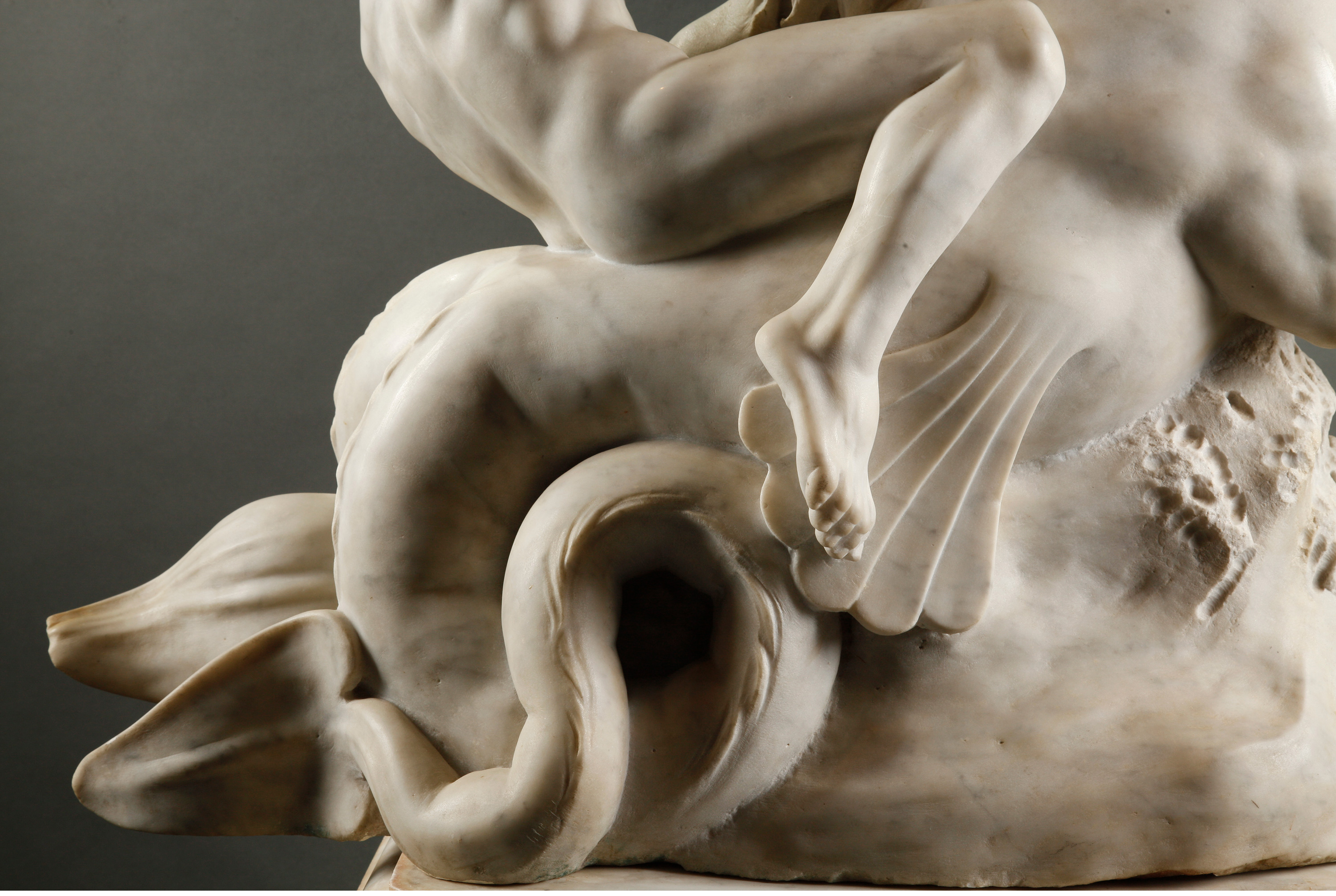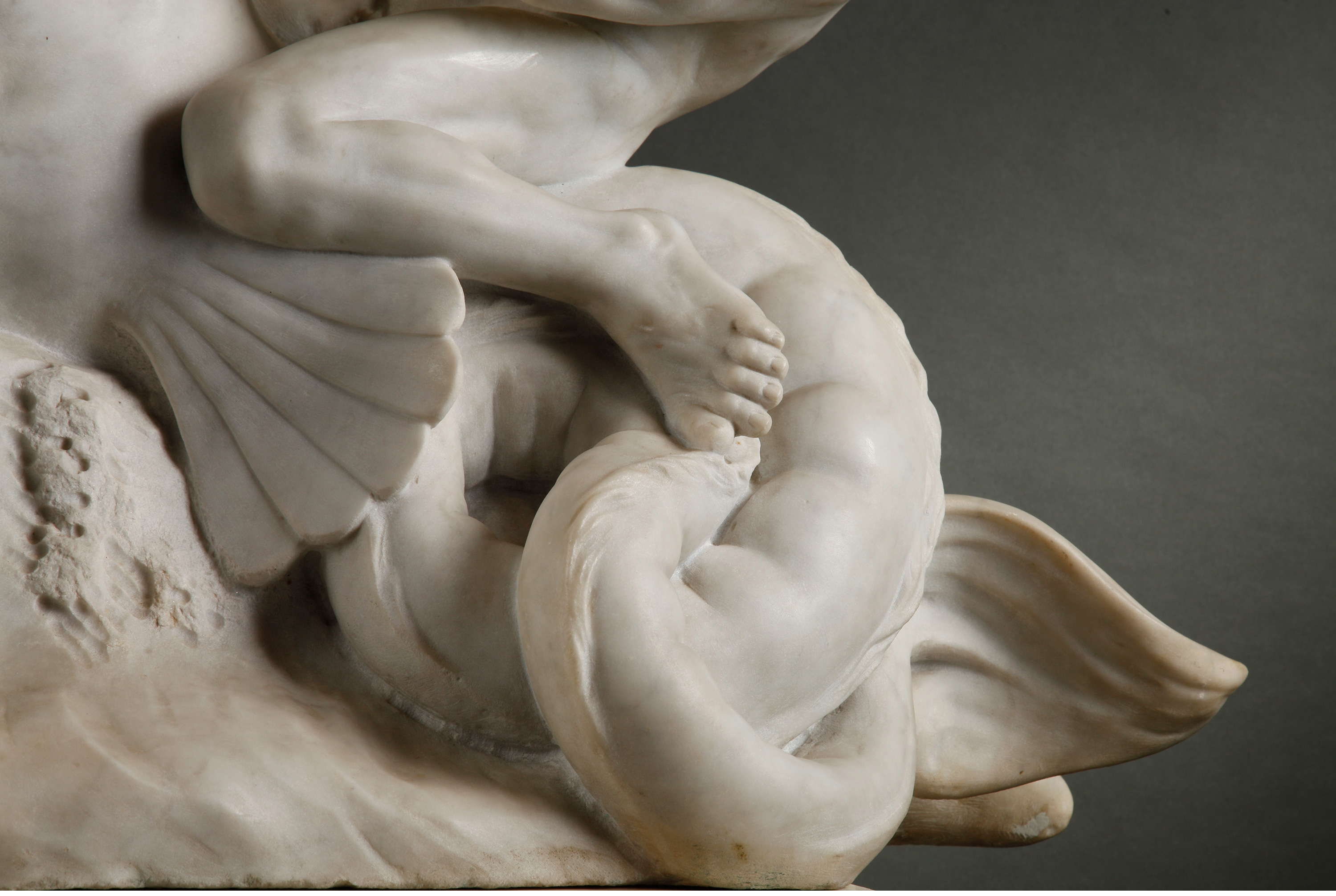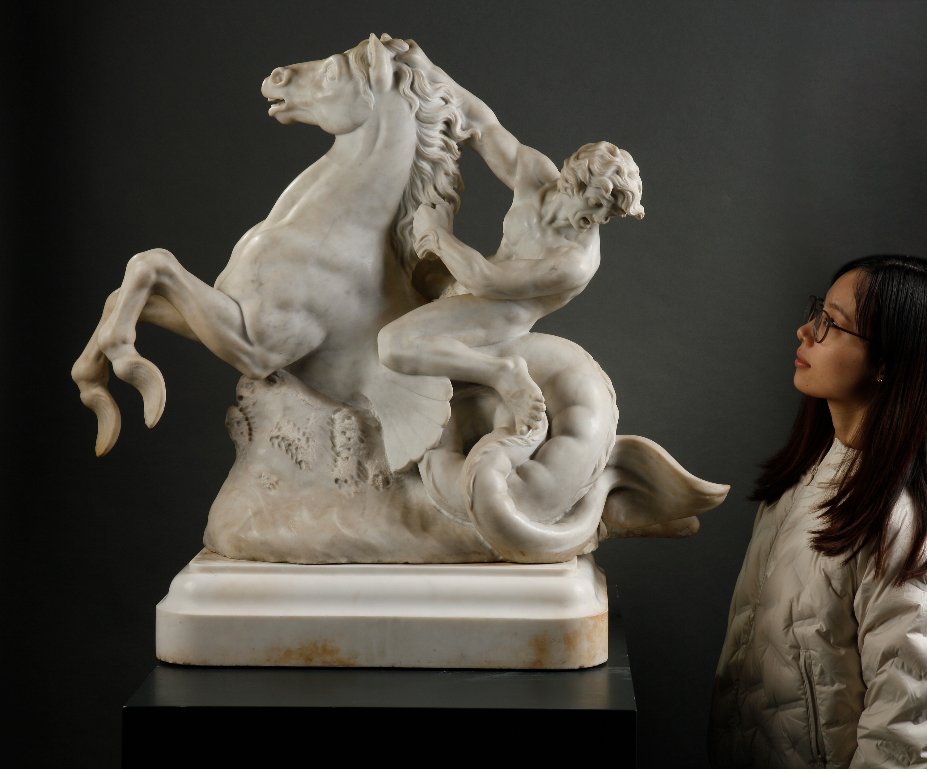独角鹿西洋古董德国卡拉拉大理石雕塑《骑海马的男人》