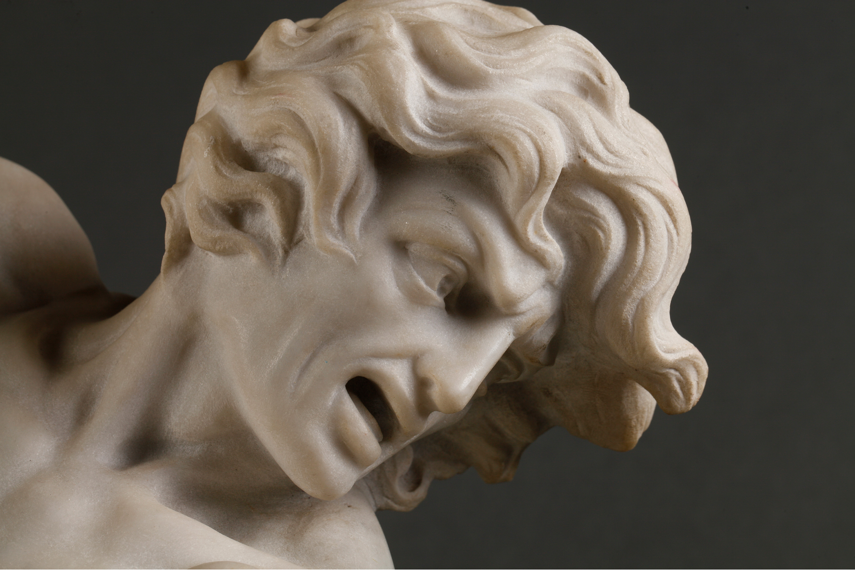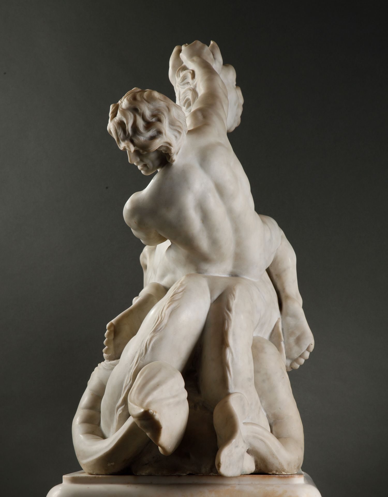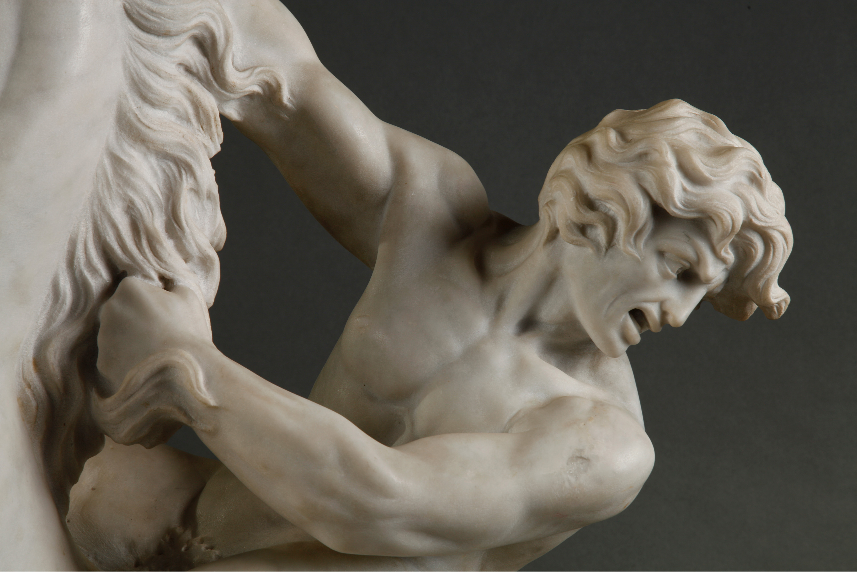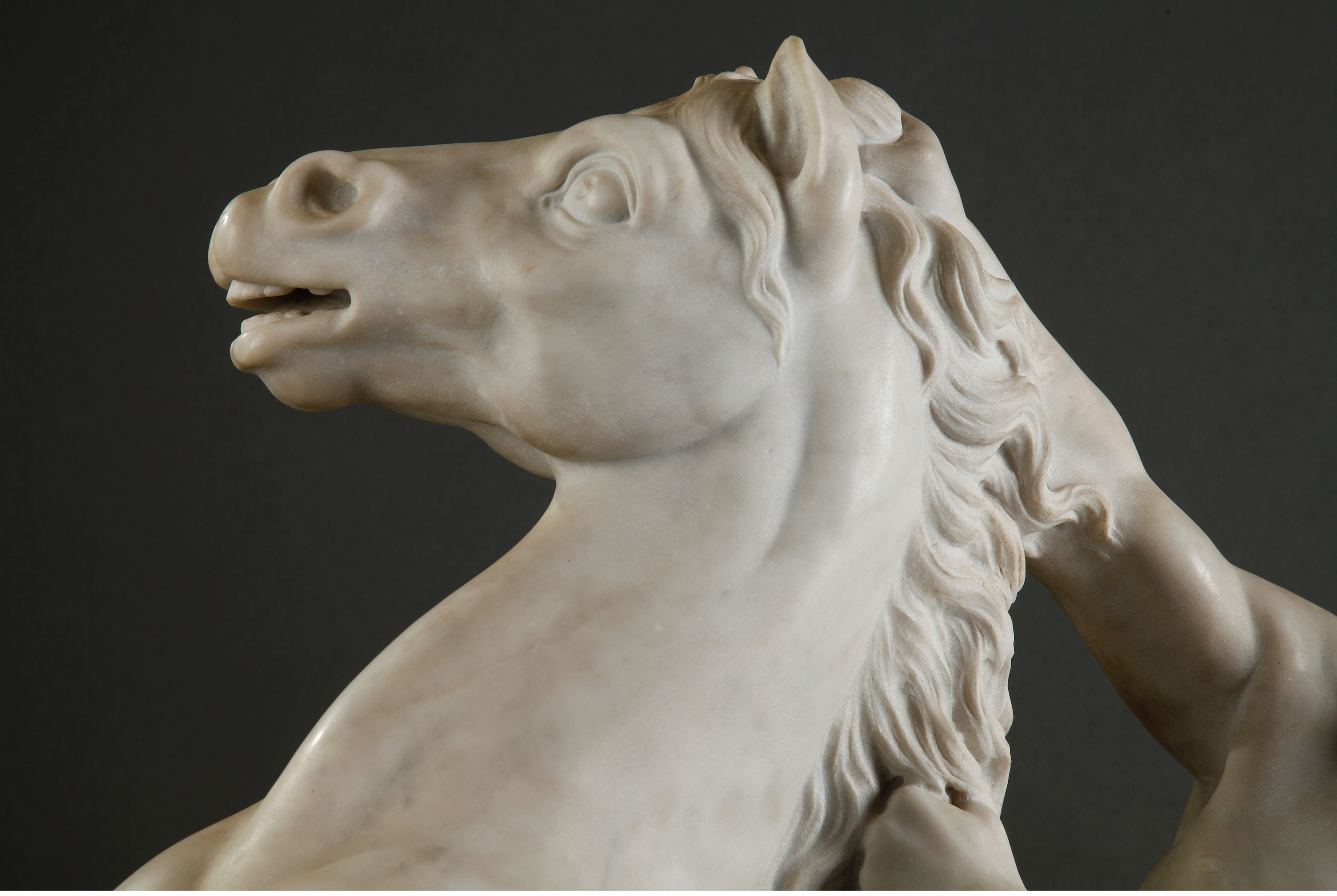 独角鹿西洋古董德国卡拉拉大理石雕塑《骑海马的男人》