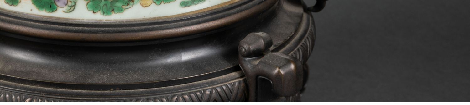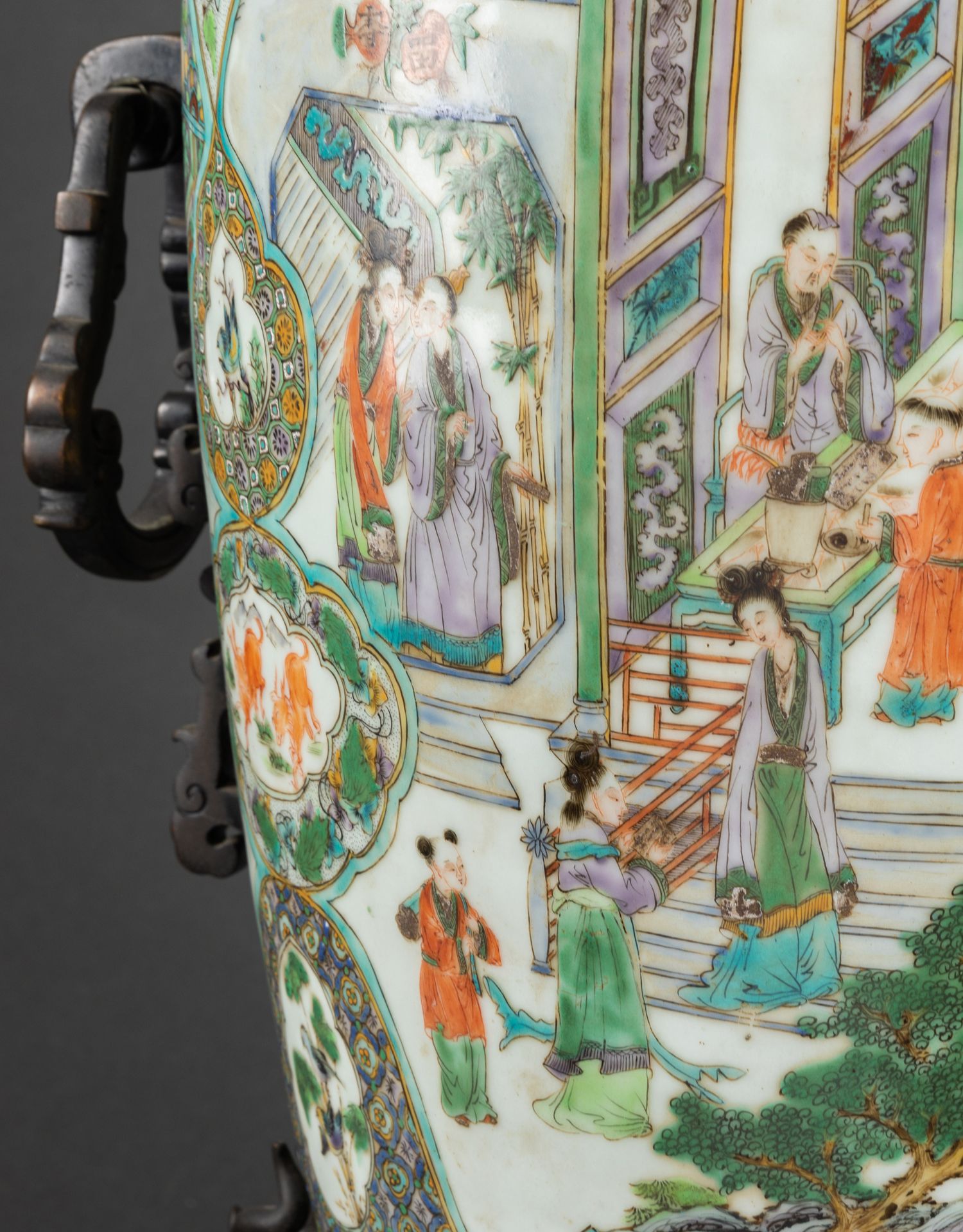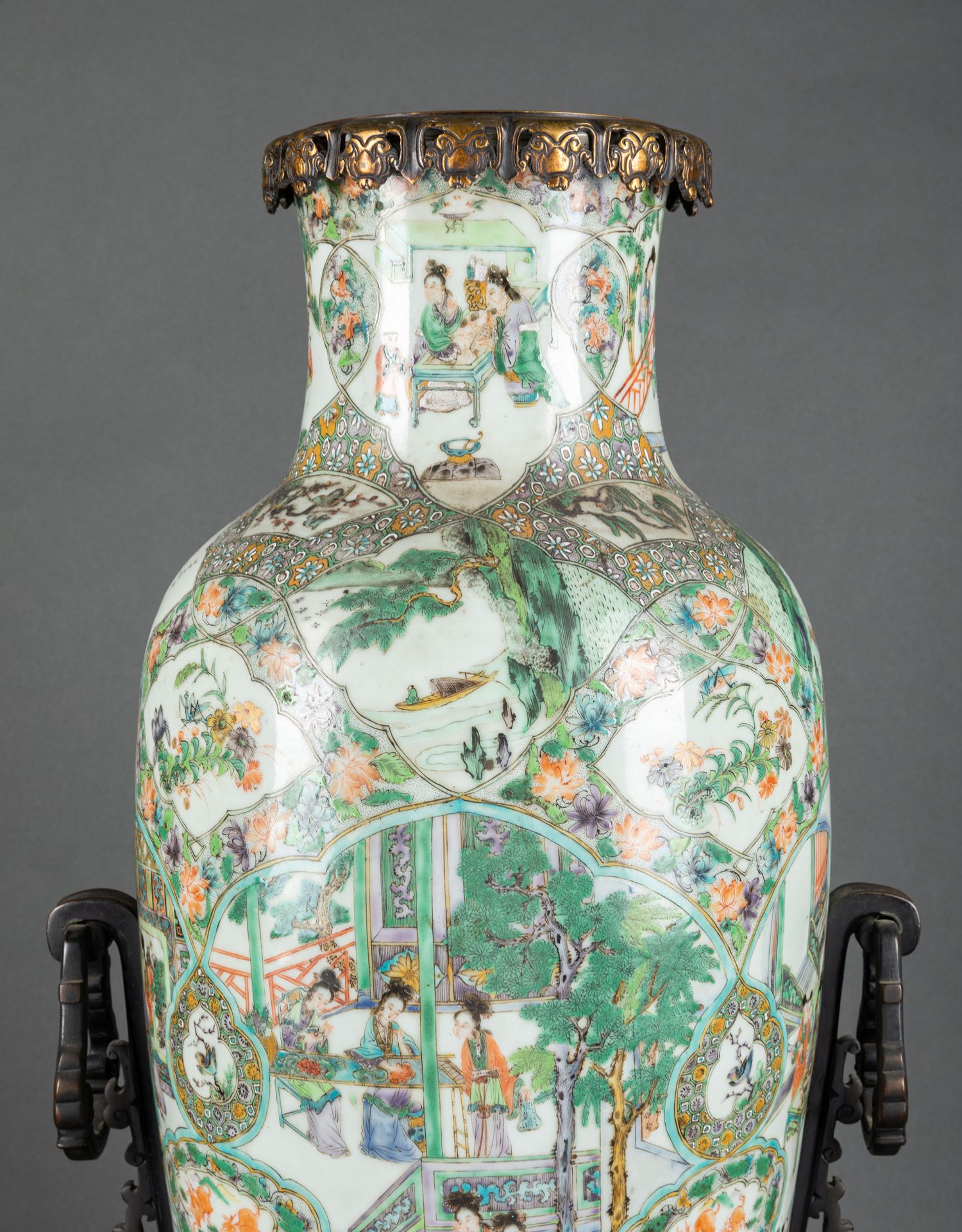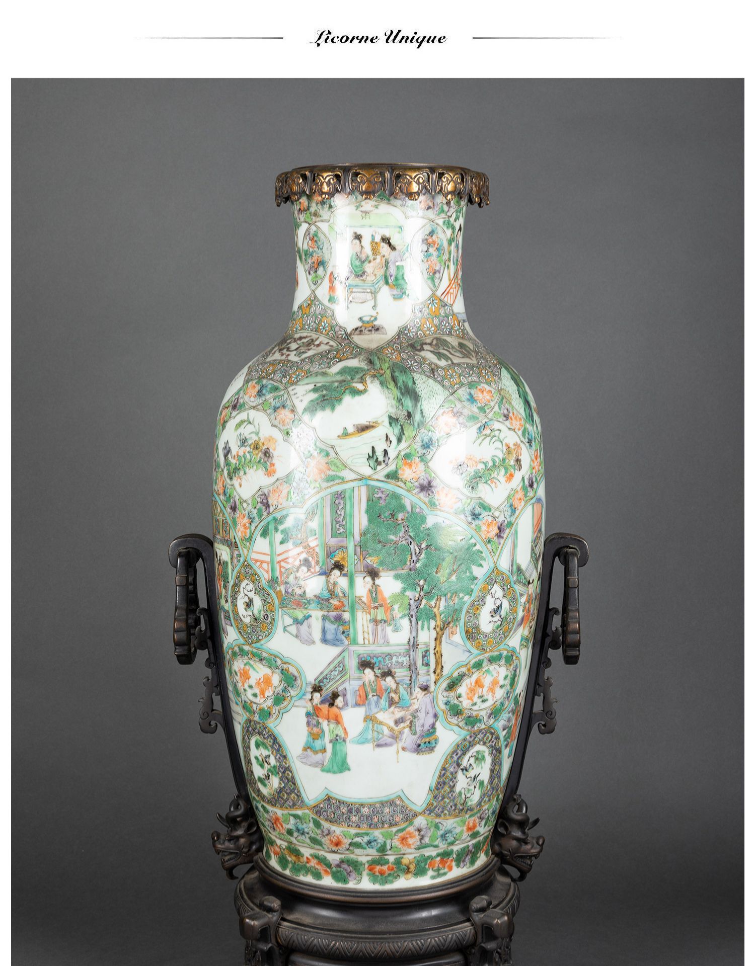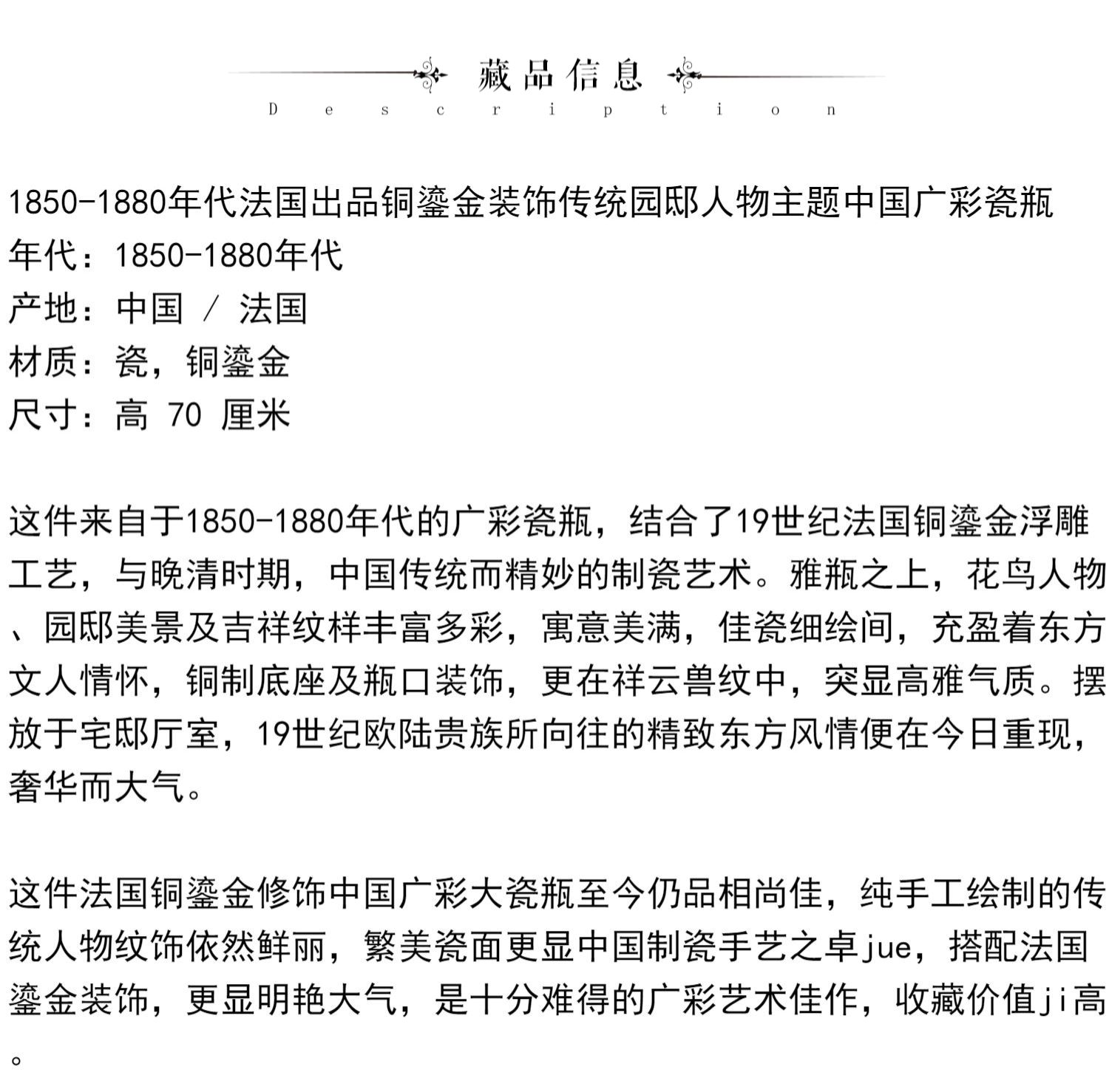 独角鹿西洋古董瓷器法国铜鎏金饰传统园邸人物主题中国广彩瓷瓶