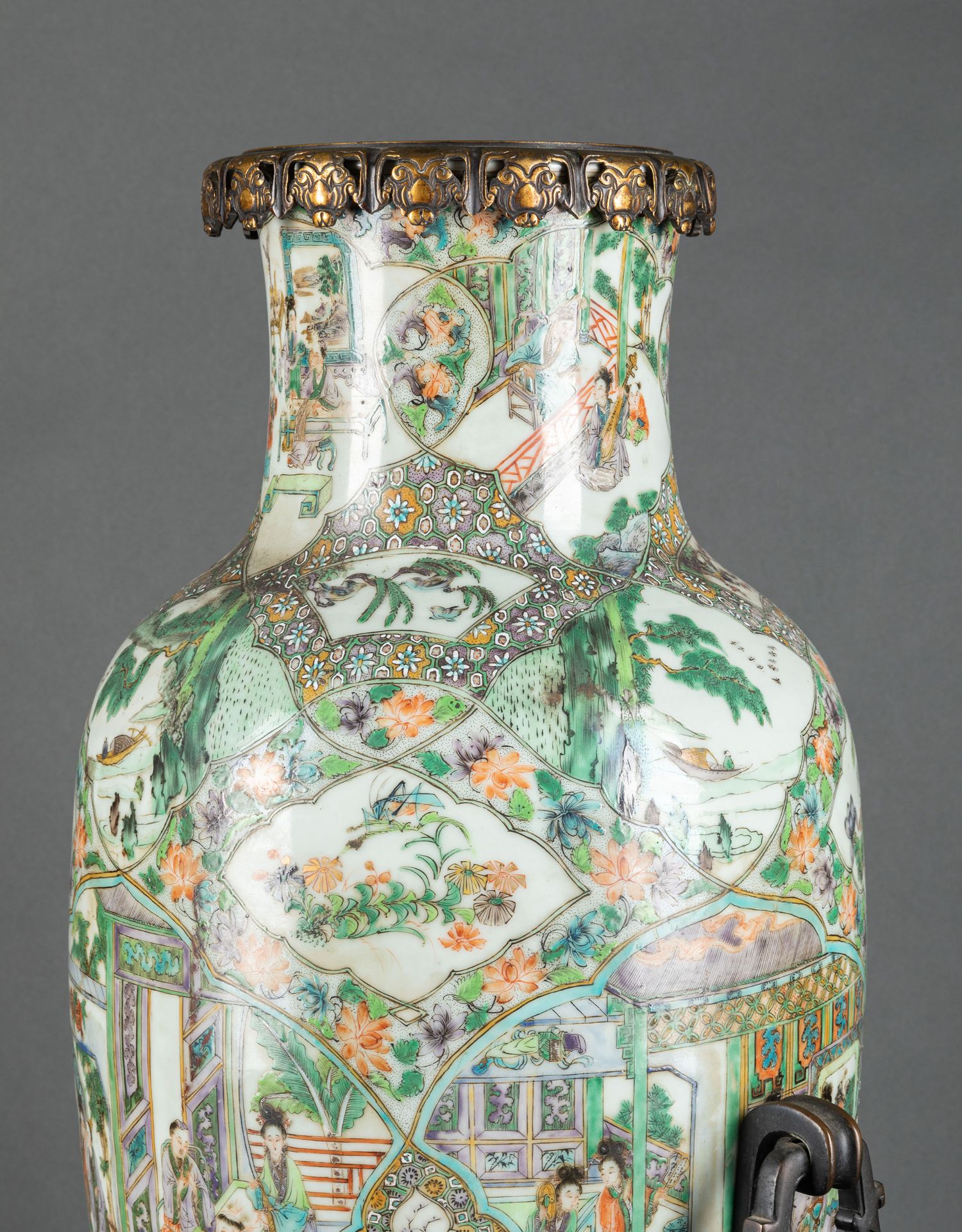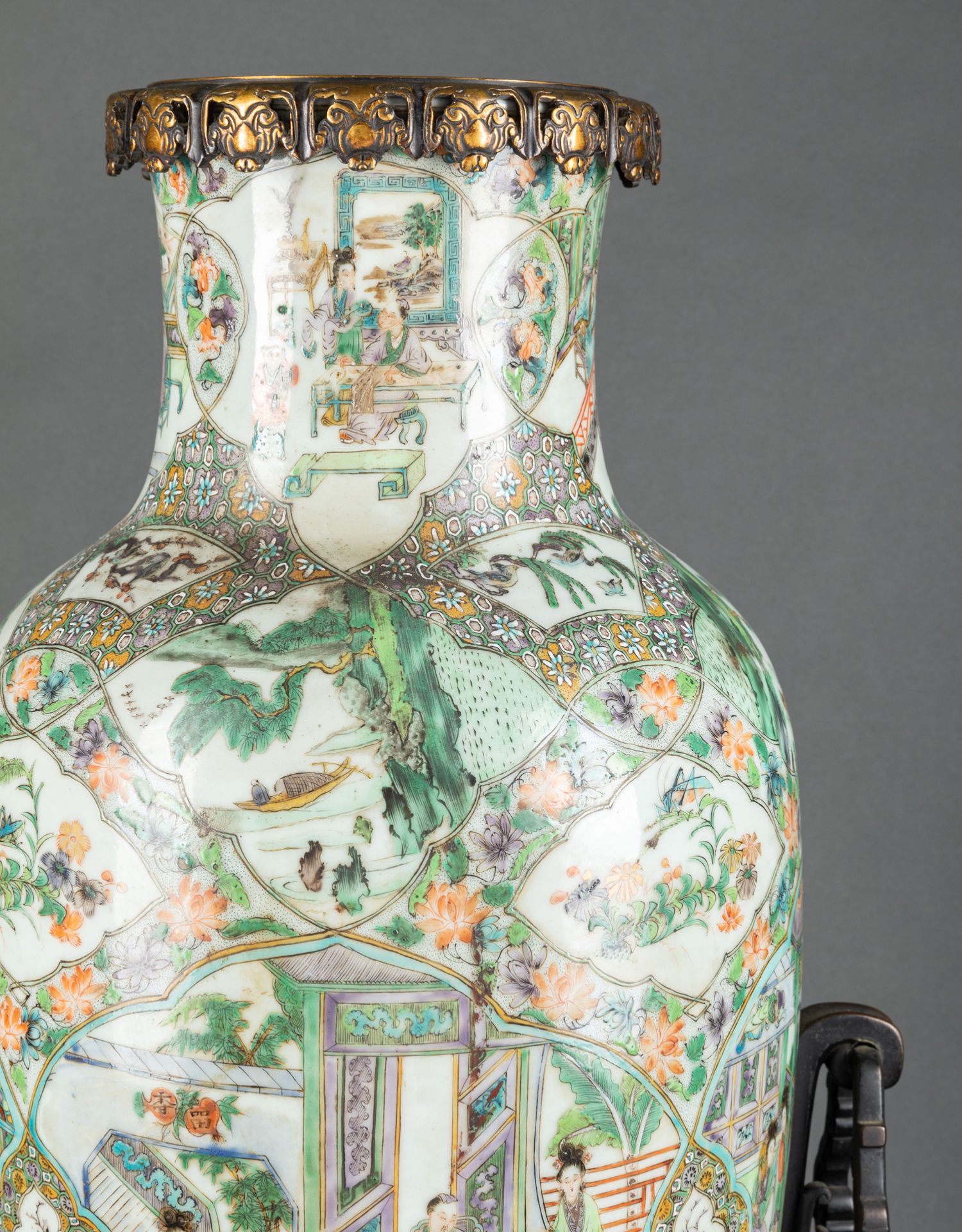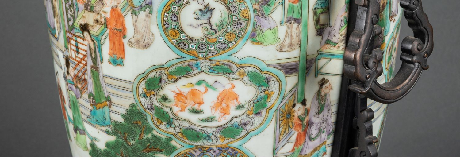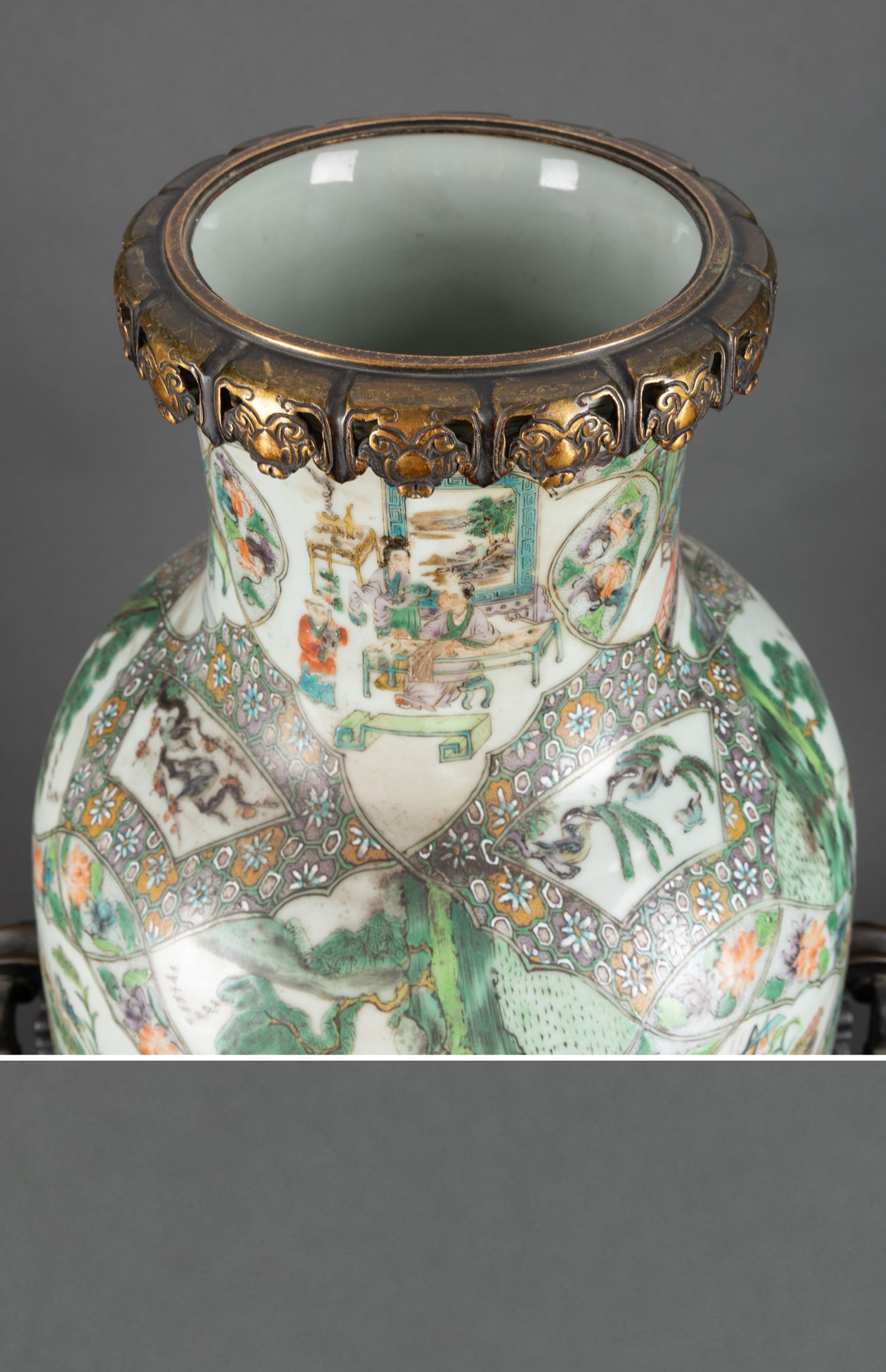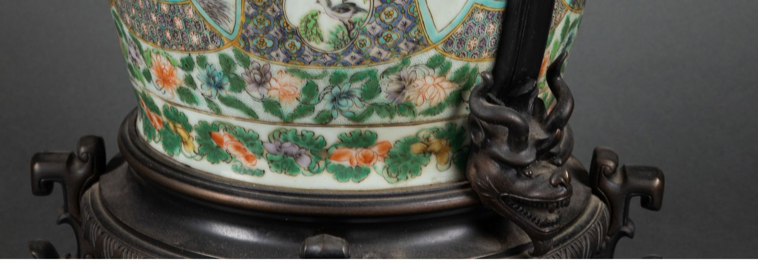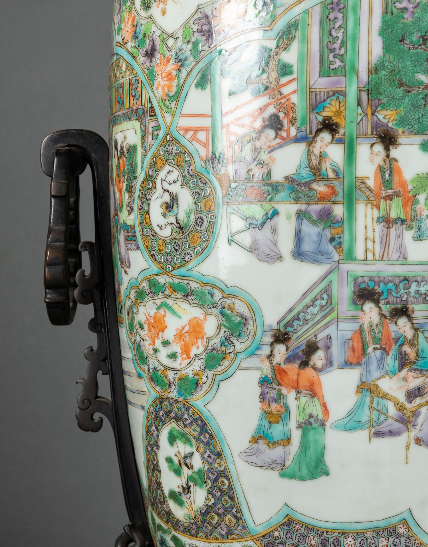独角鹿西洋古董瓷器法国铜鎏金饰传统园邸人物主题中国广彩瓷瓶