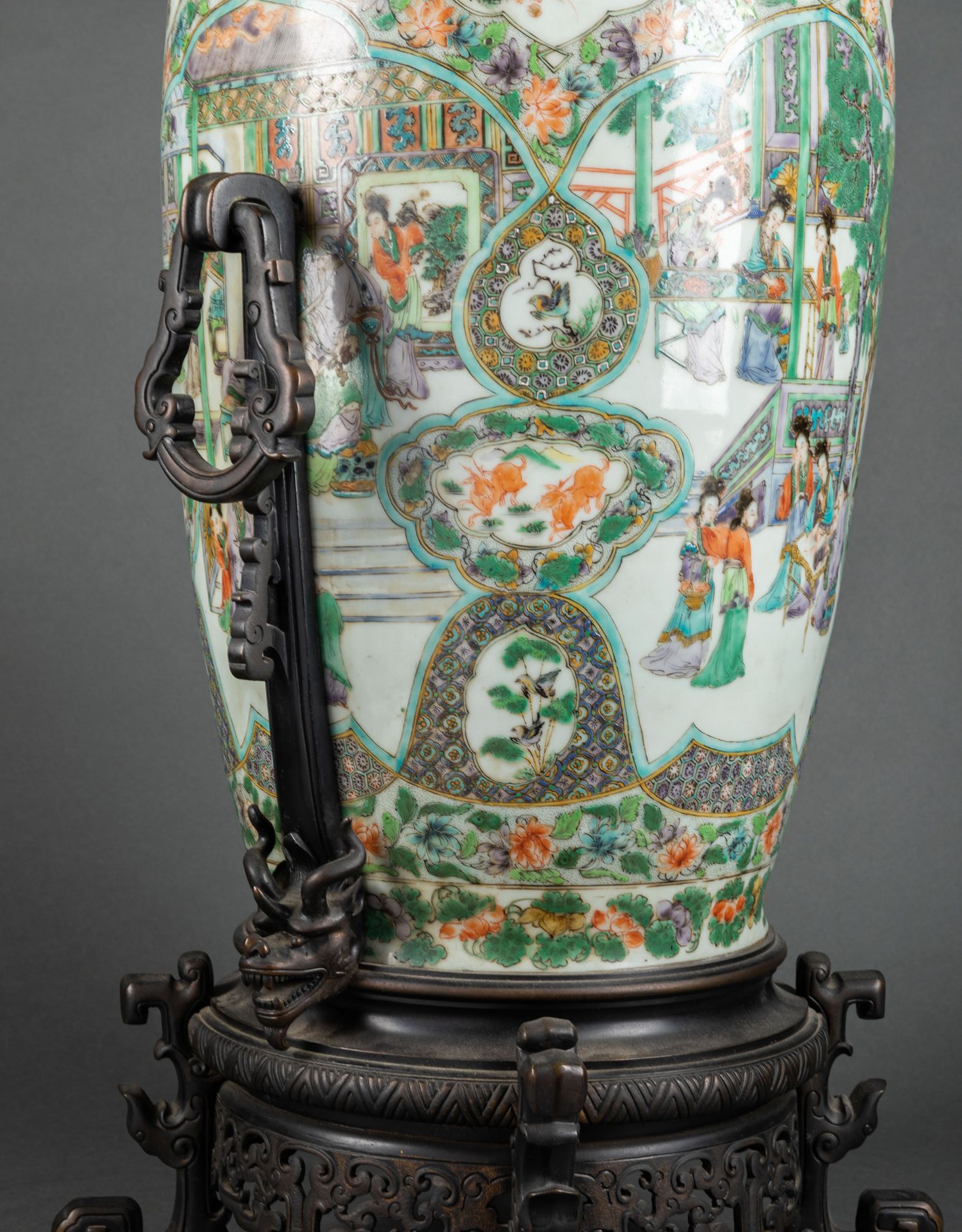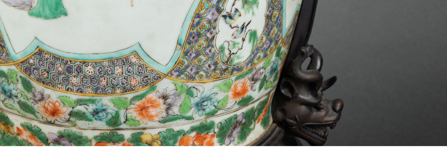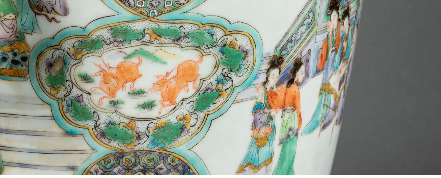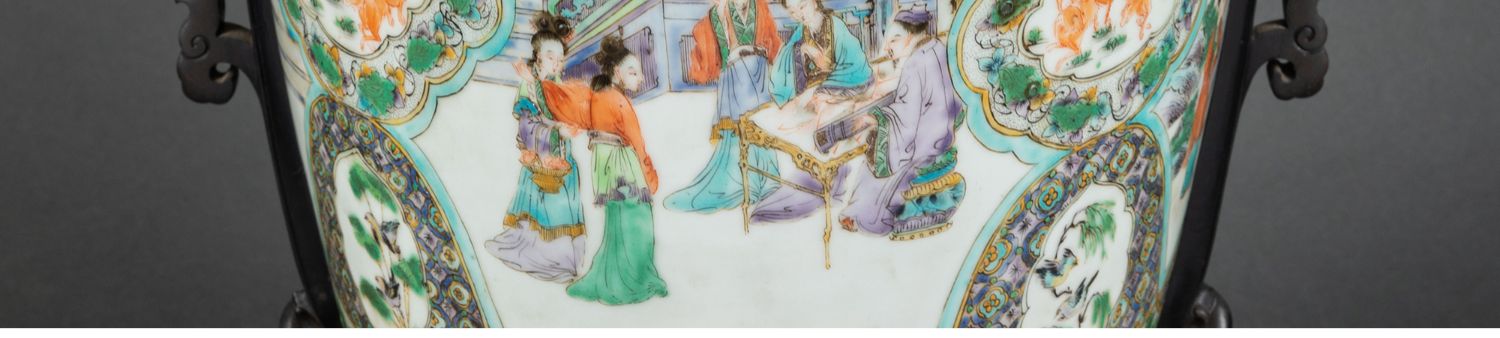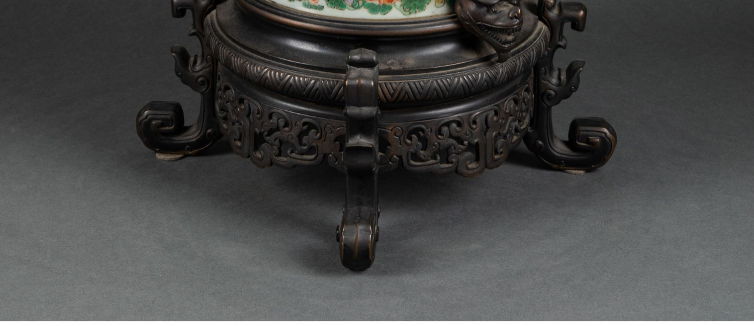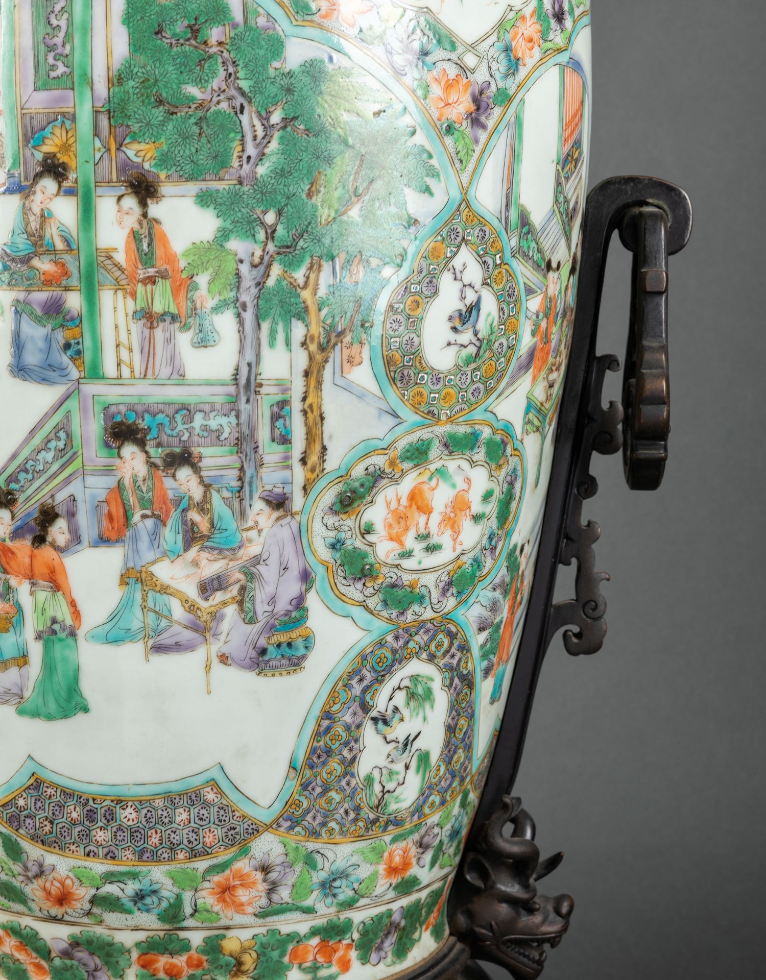 独角鹿西洋古董瓷器法国铜鎏金饰传统园邸人物主题中国广彩瓷瓶