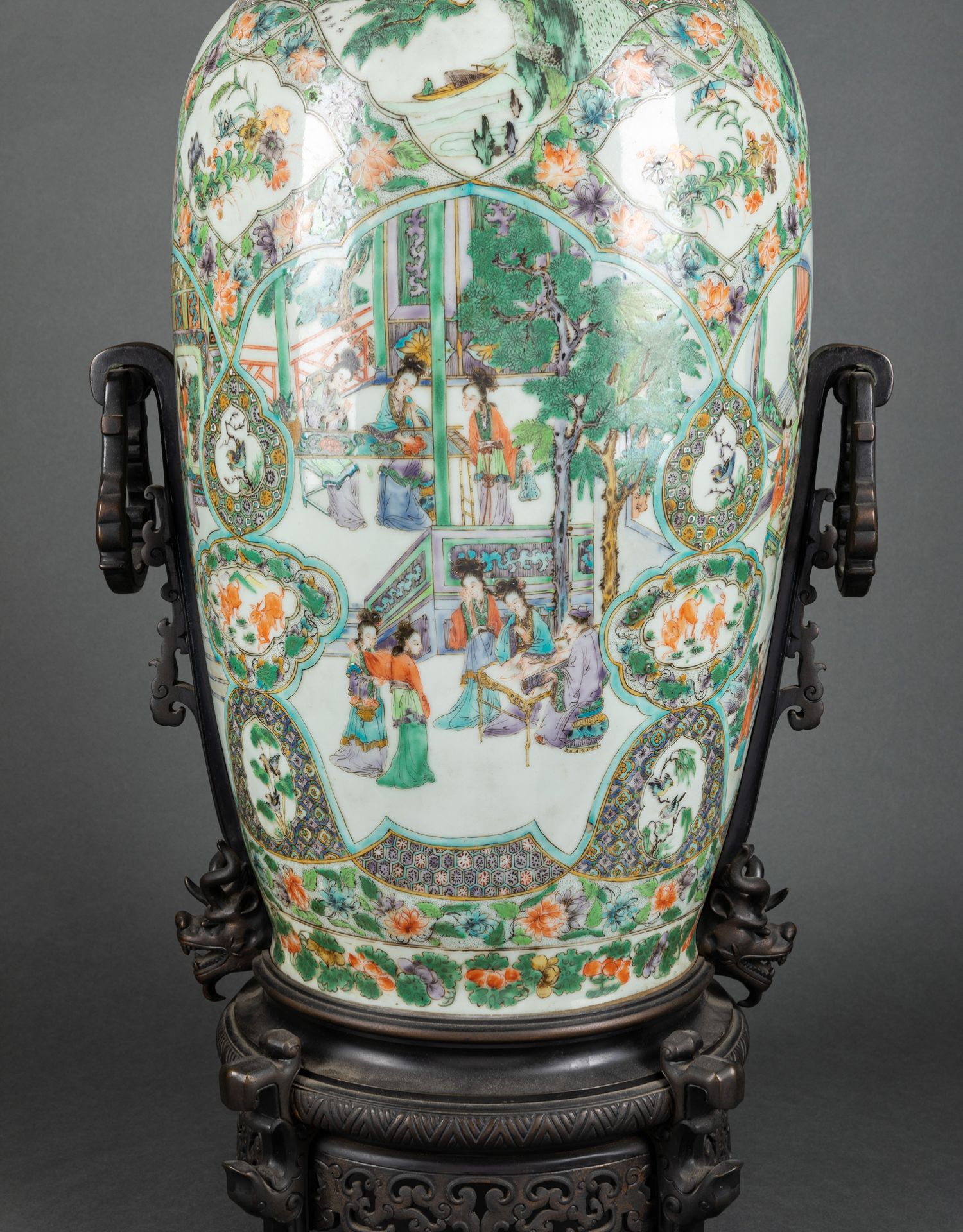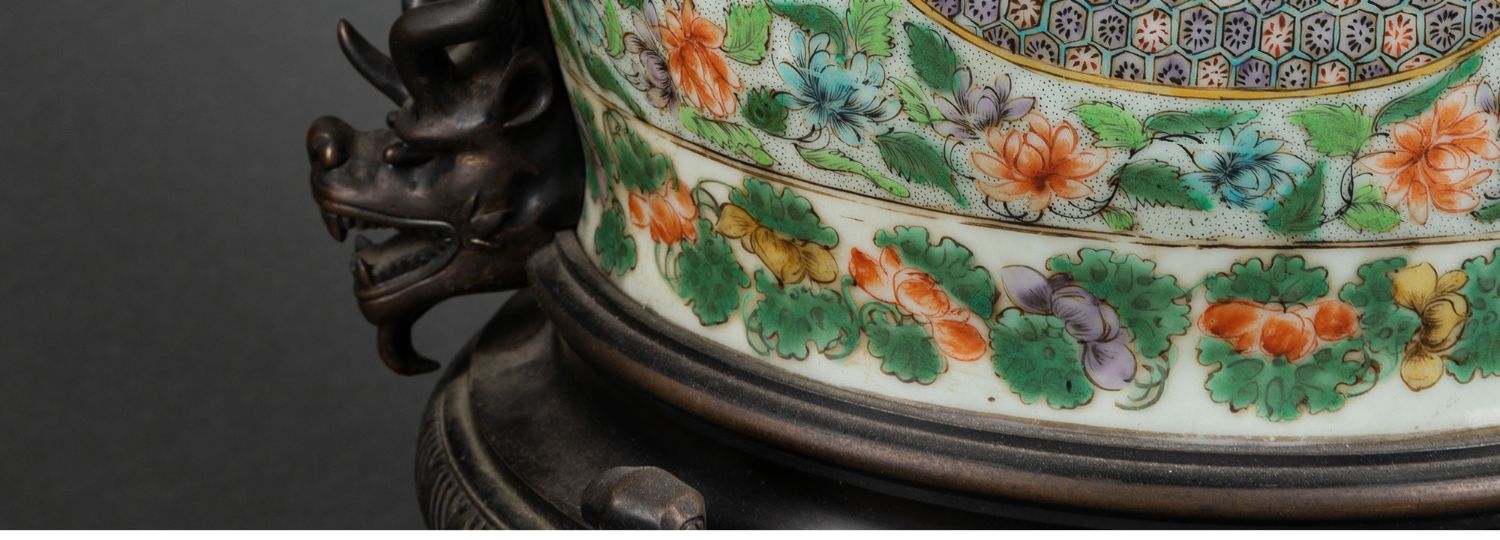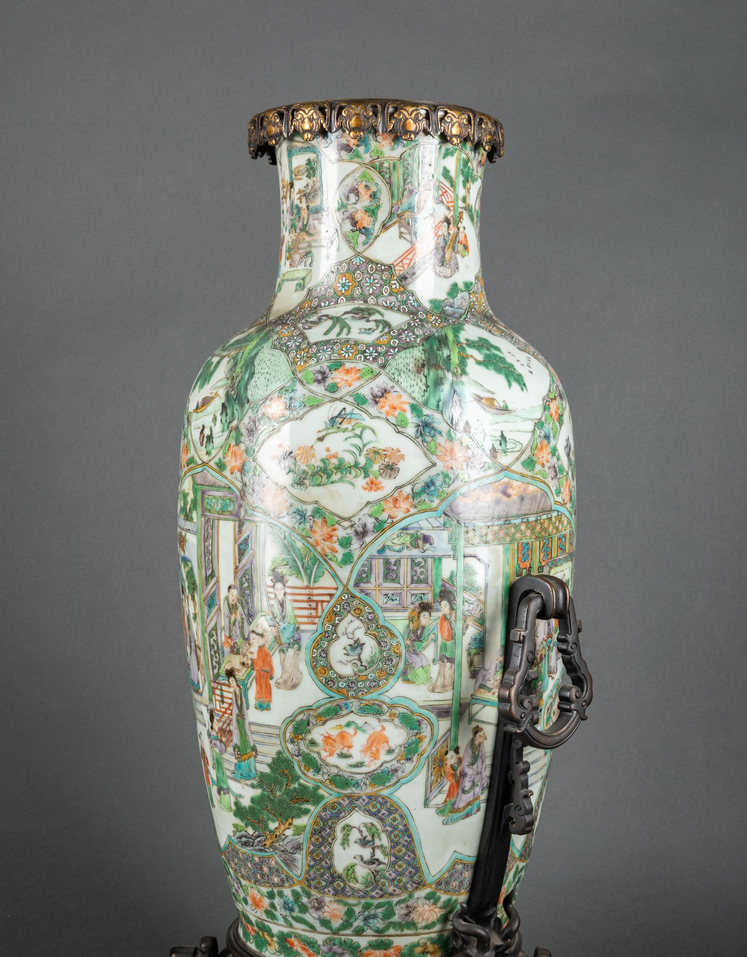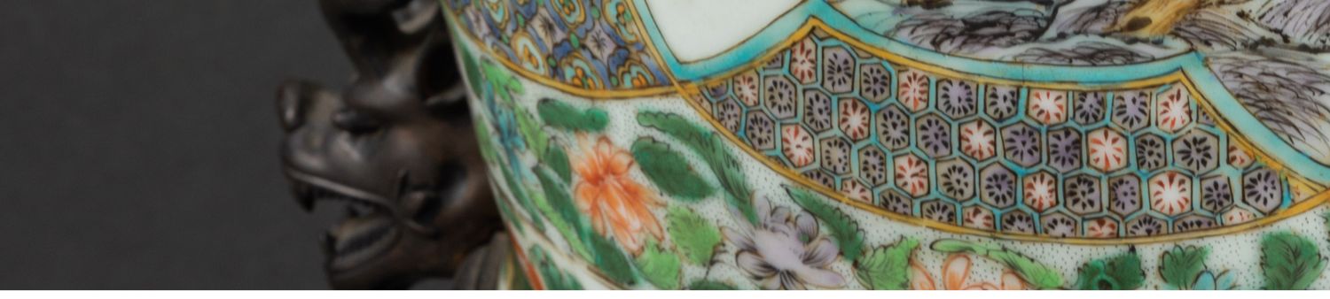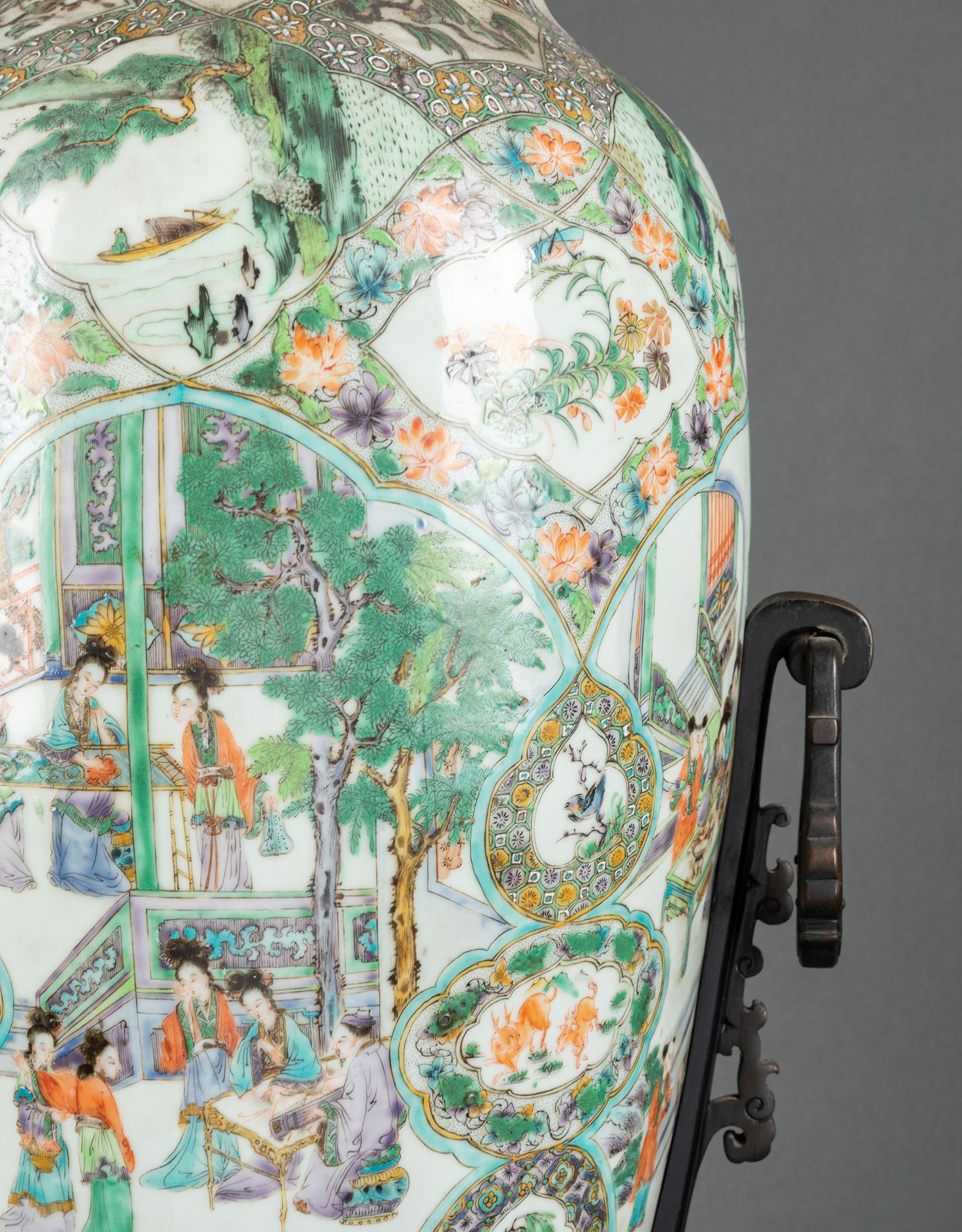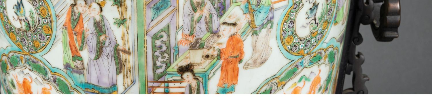 独角鹿西洋古董瓷器法国铜鎏金饰传统园邸人物主题中国广彩瓷瓶