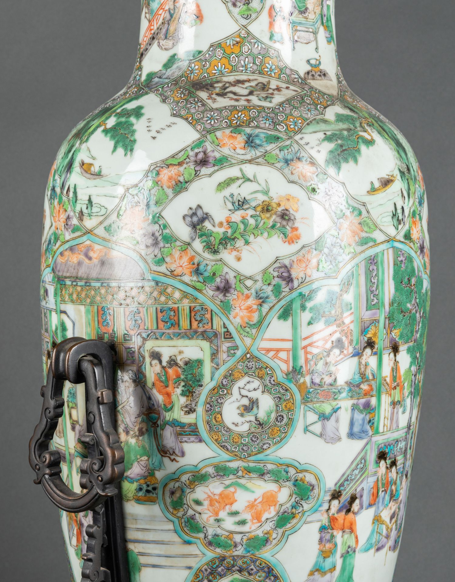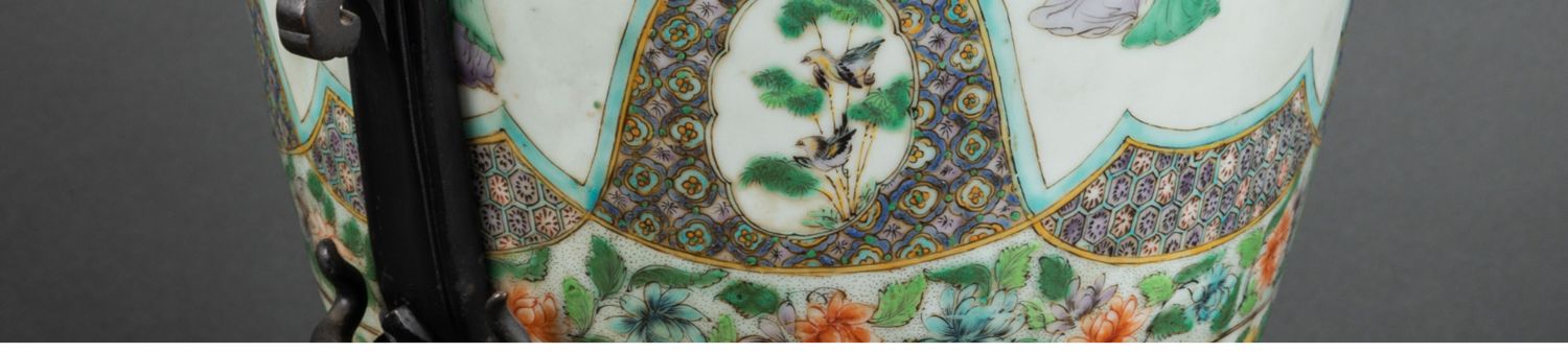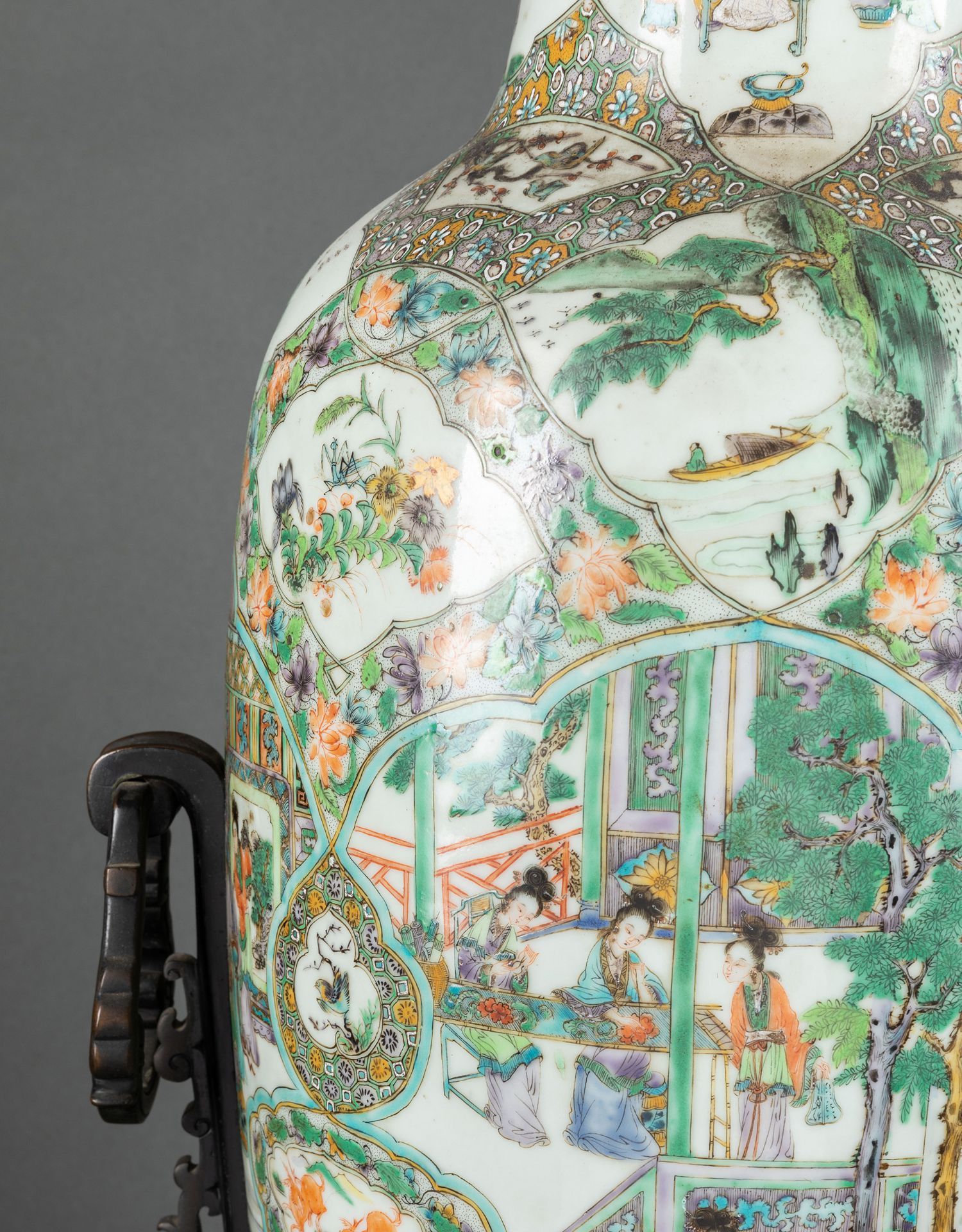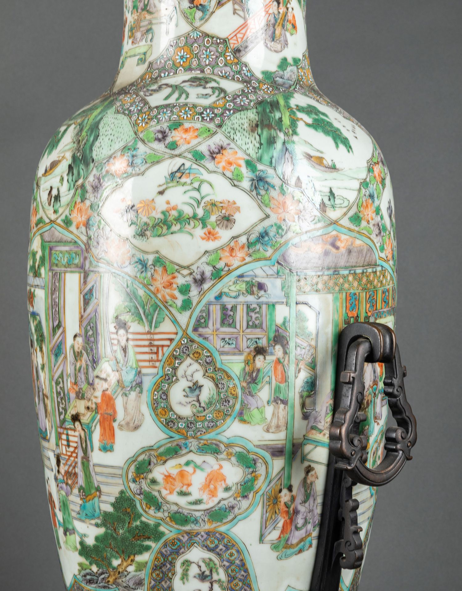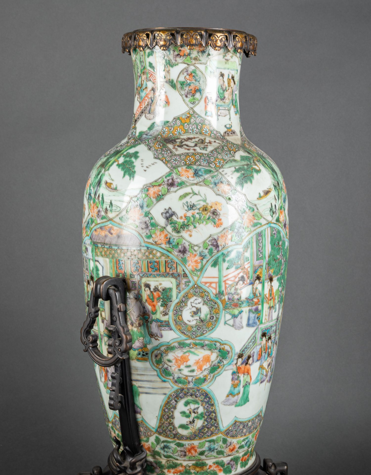 独角鹿西洋古董瓷器法国铜鎏金饰传统园邸人物主题中国广彩瓷瓶