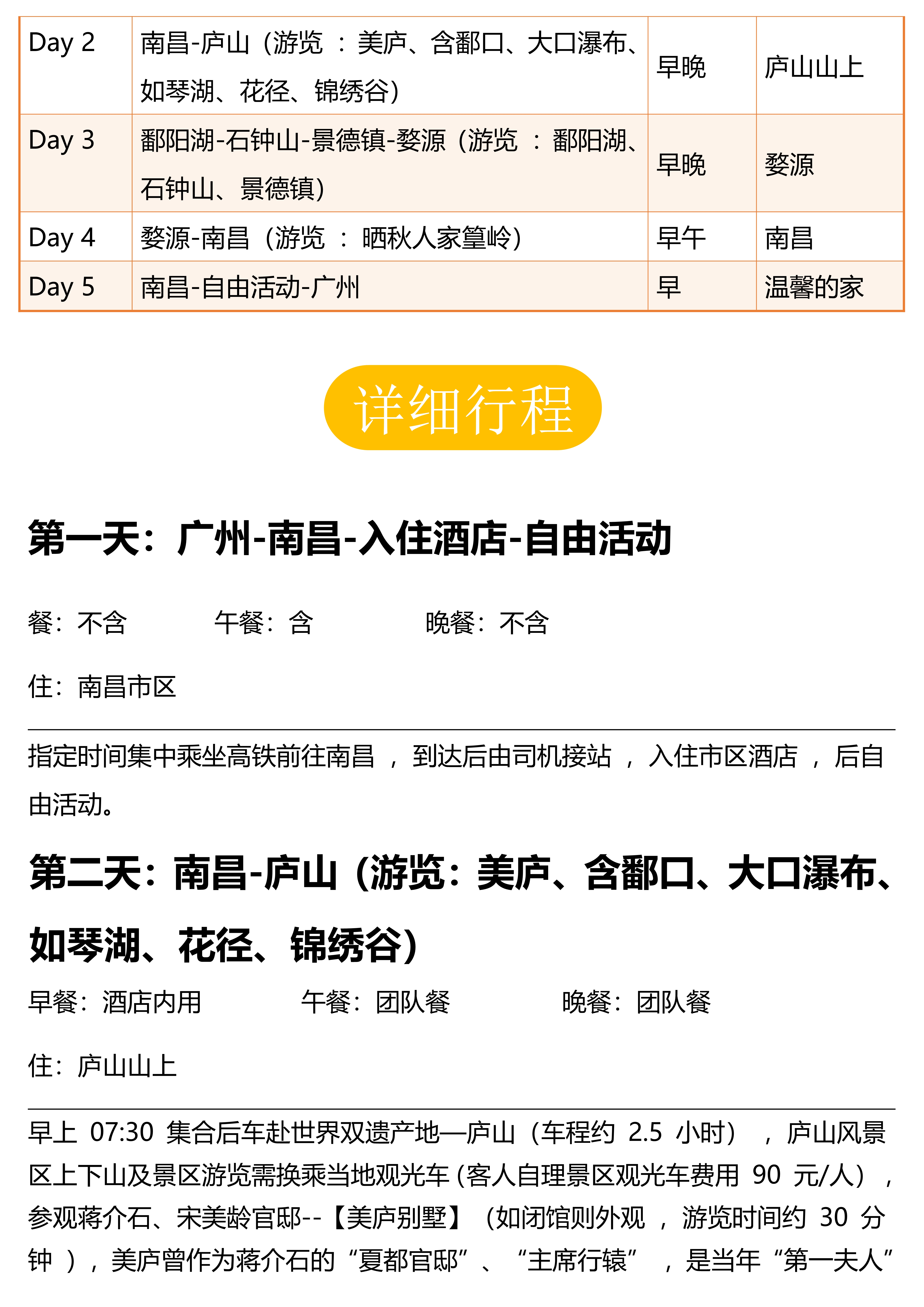 【轻游江西】 庐山·景德镇·婺源·篁岭·5 日游