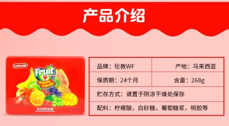 伦敦WF混合果味软糖糖果268g(红色铁盒装)