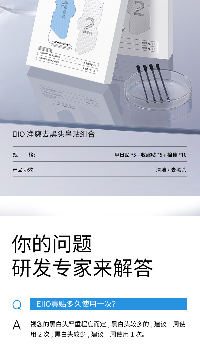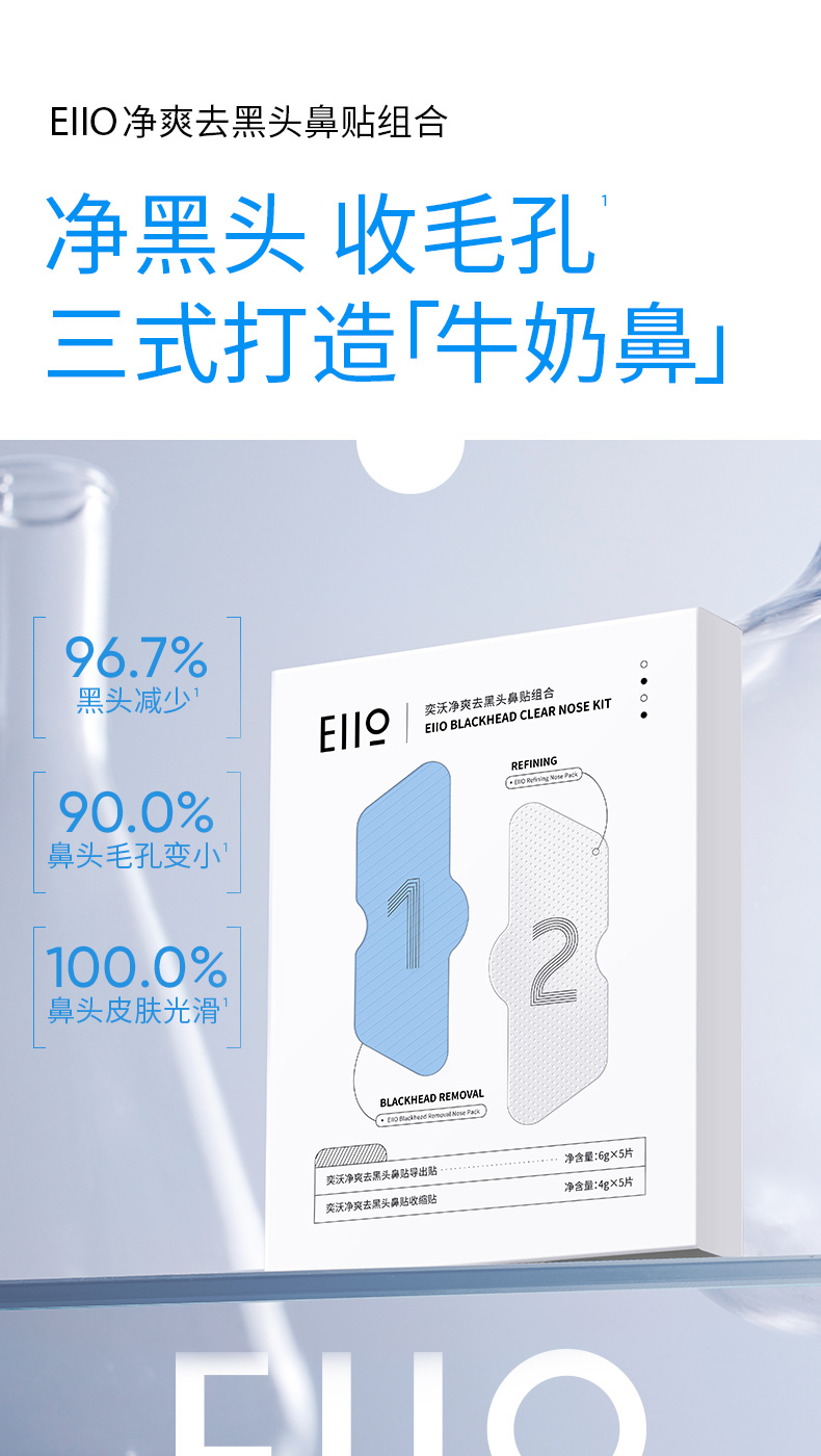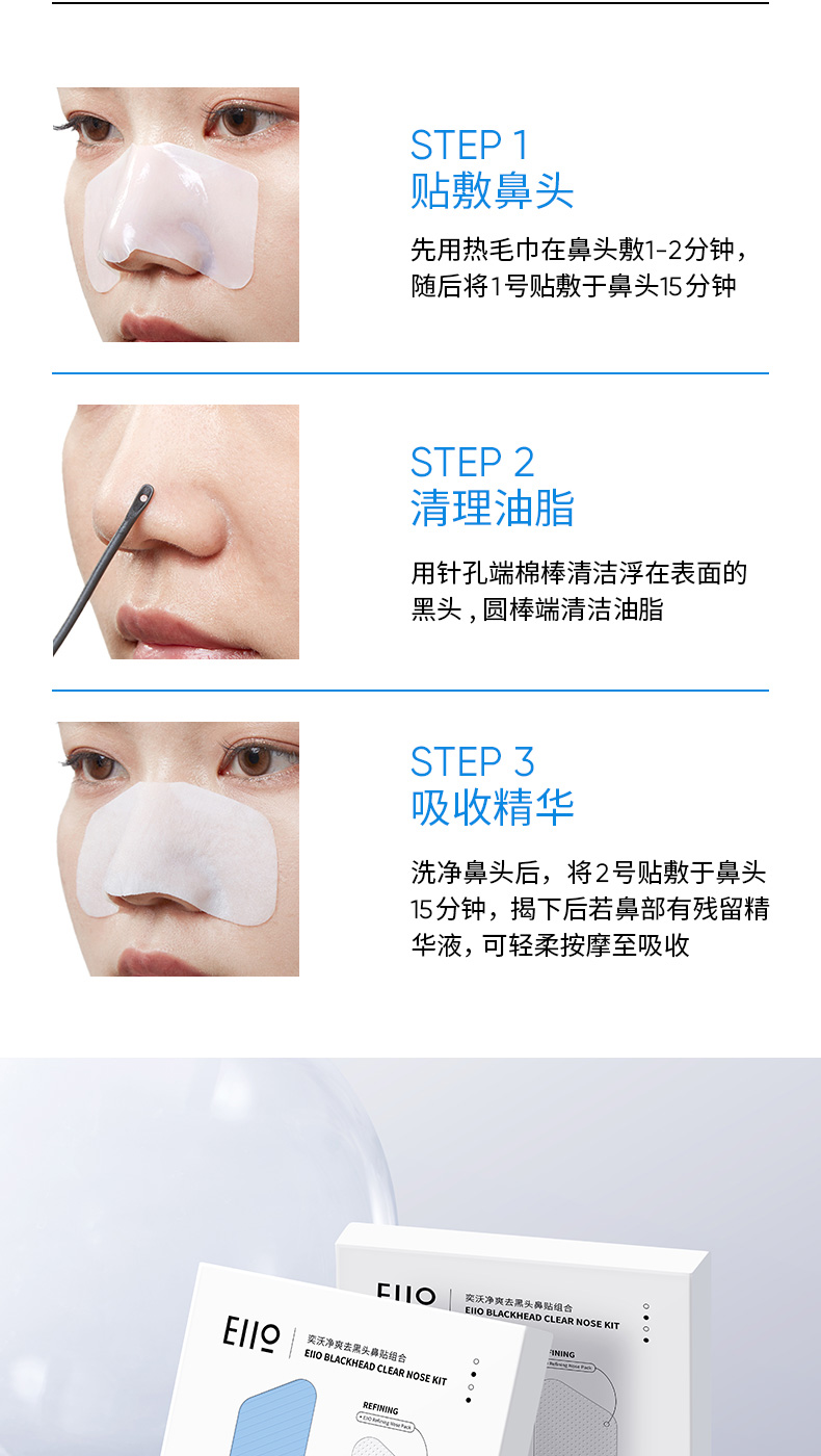 【多妈优选 团购价49元】eiio鼻贴黑头粉刺套装收缩毛孔闭口清洁去导出液黑头贴5组/盒-泓新仓发