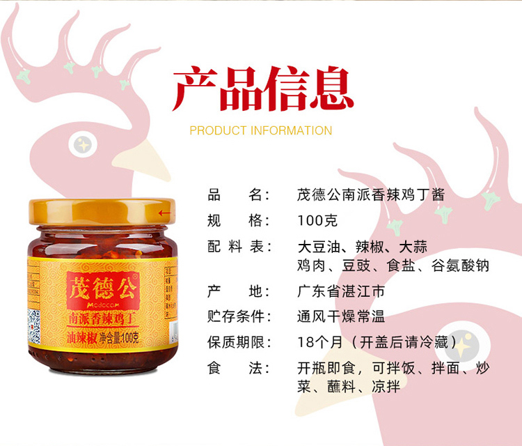 茂德公香辣鸡丁辣椒酱农家香辣拌面拌饭酱自制下饭菜100g