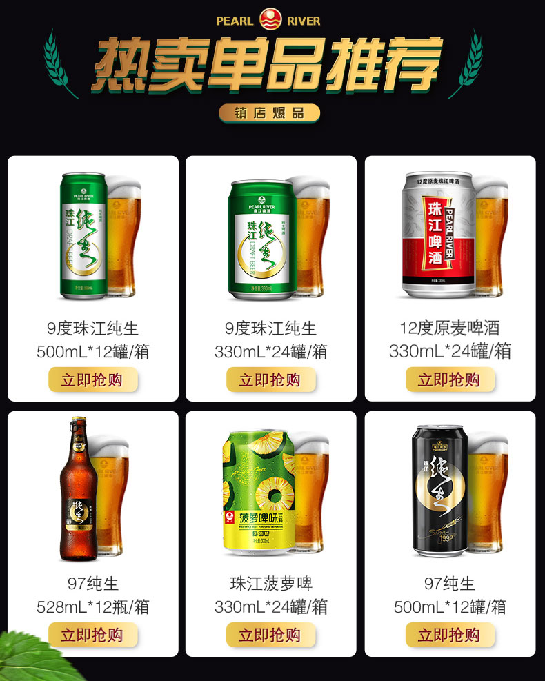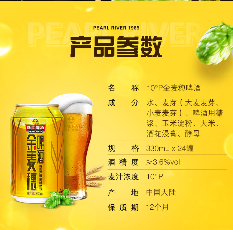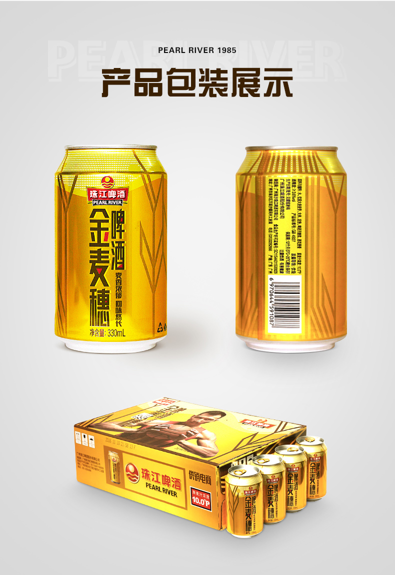 珠江啤酒 10度 金麦穗 330ml*24听 整箱装