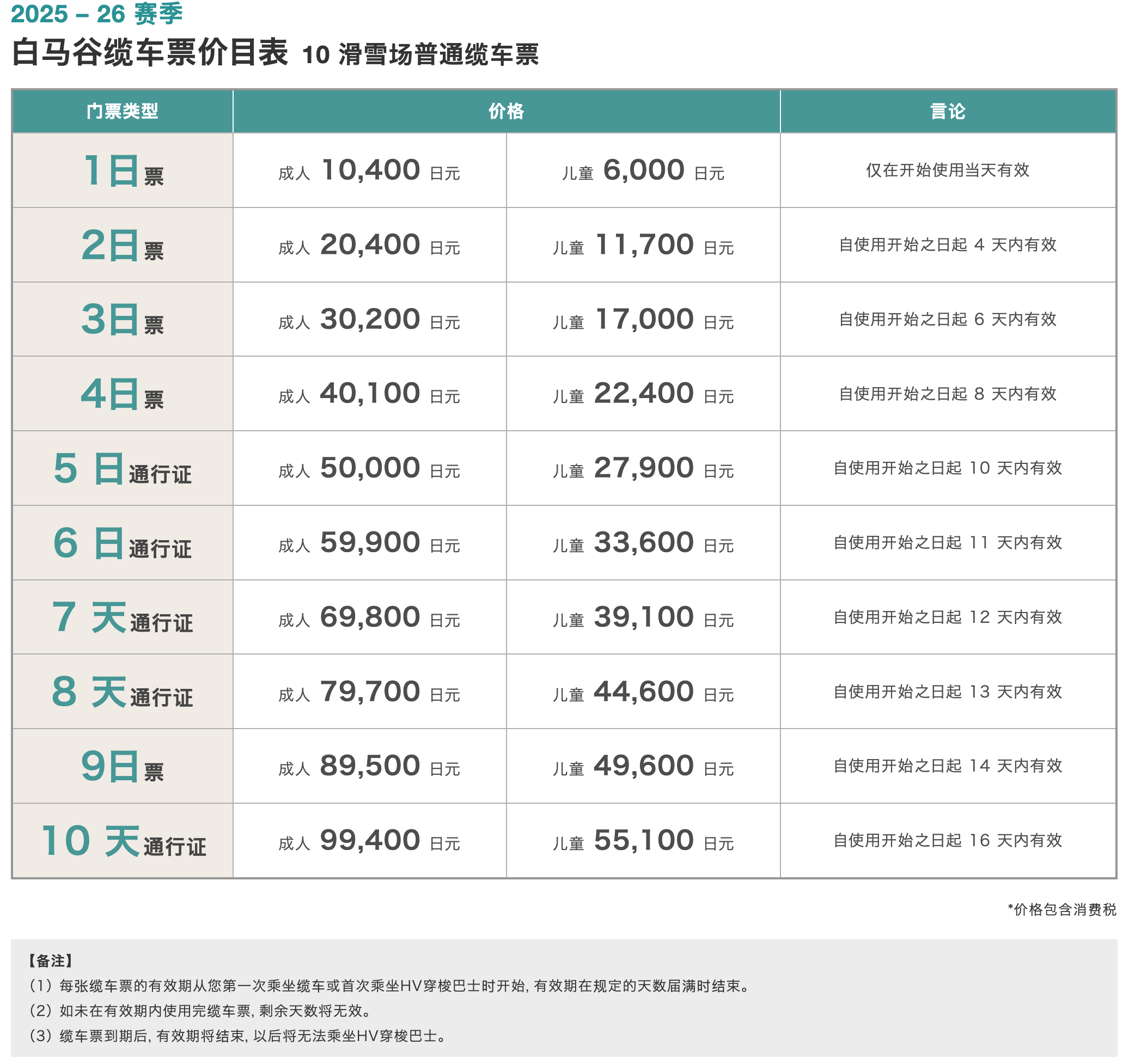 雪票联票参考25/26价格:(购买联票可以享受免费乘坐雪场班车)