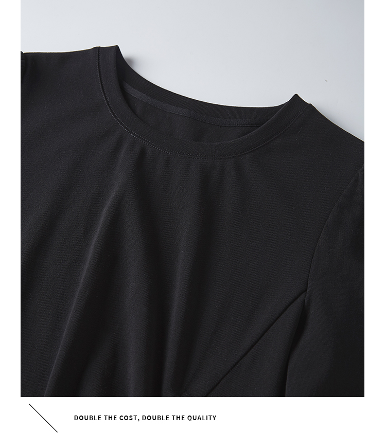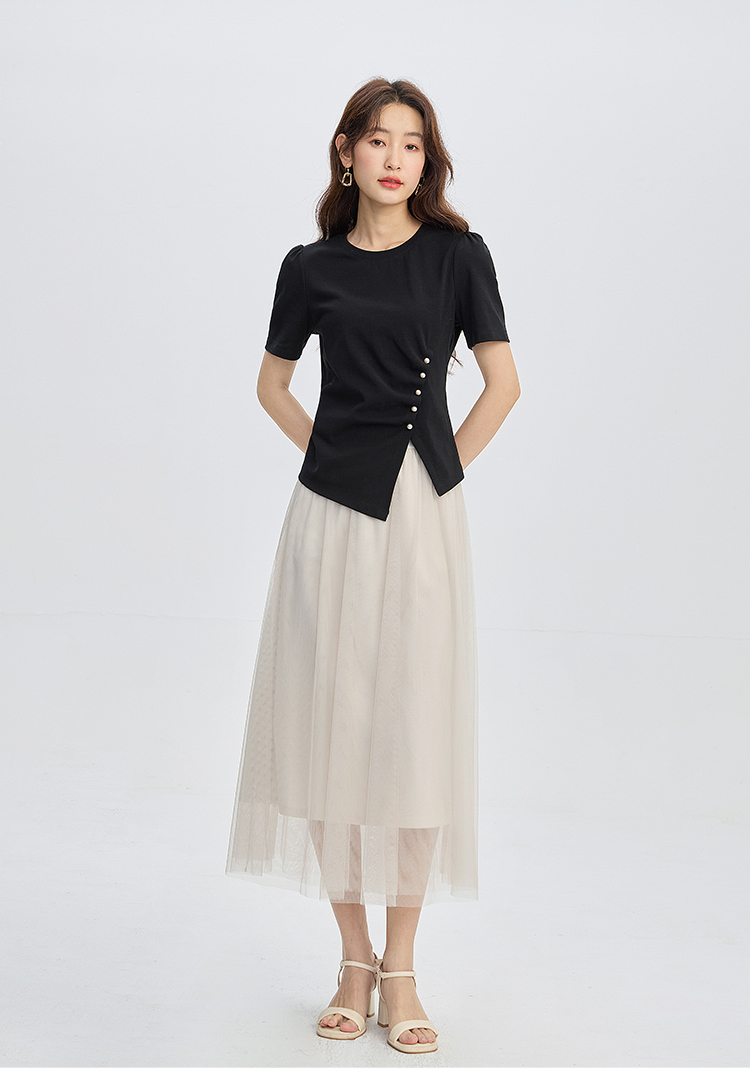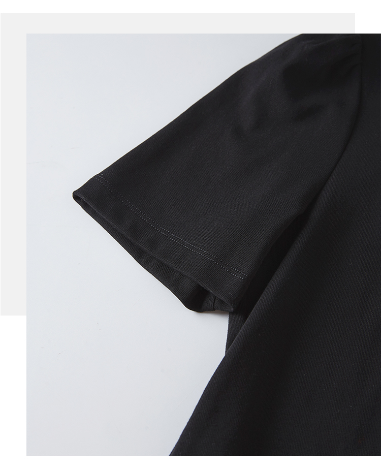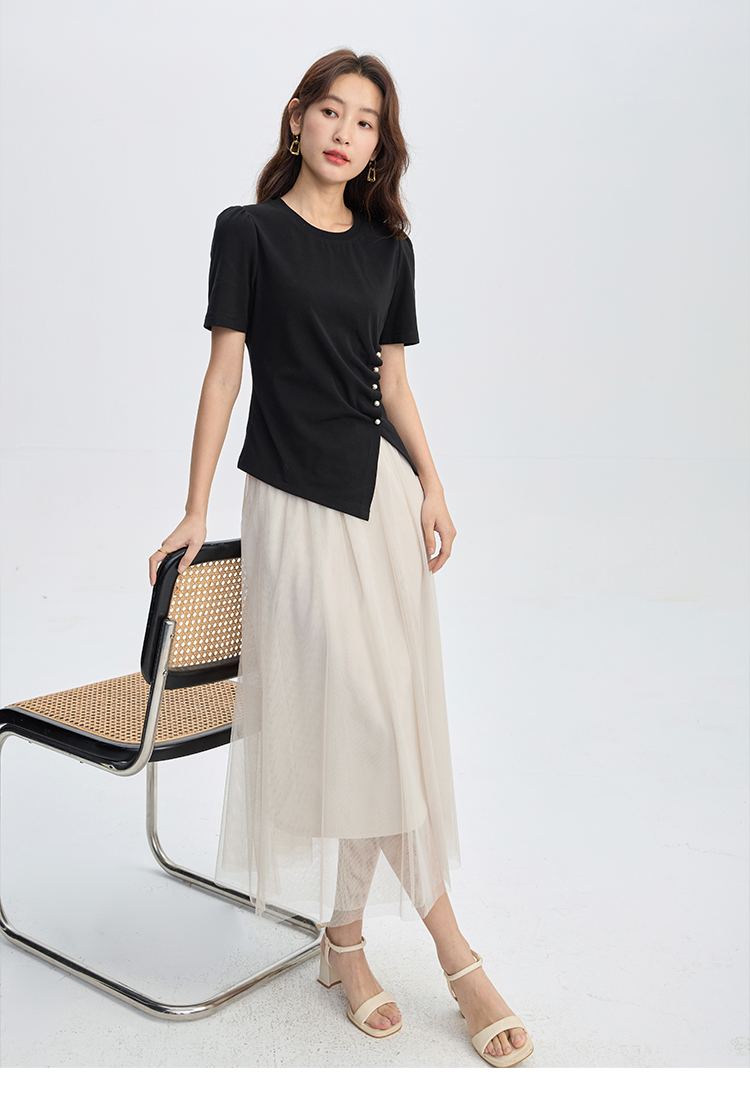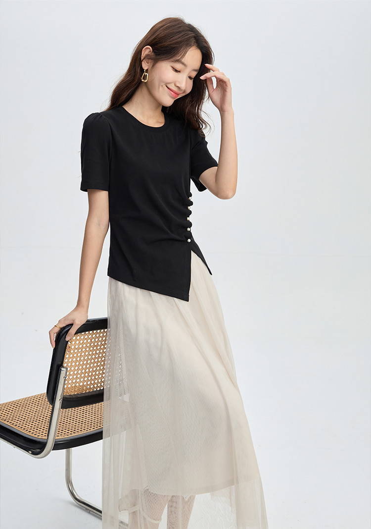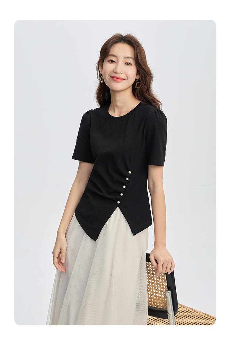 【专属特价】熙世界黑色不规则开叉短袖T恤女2025夏新款时尚洋气正肩显瘦上衣