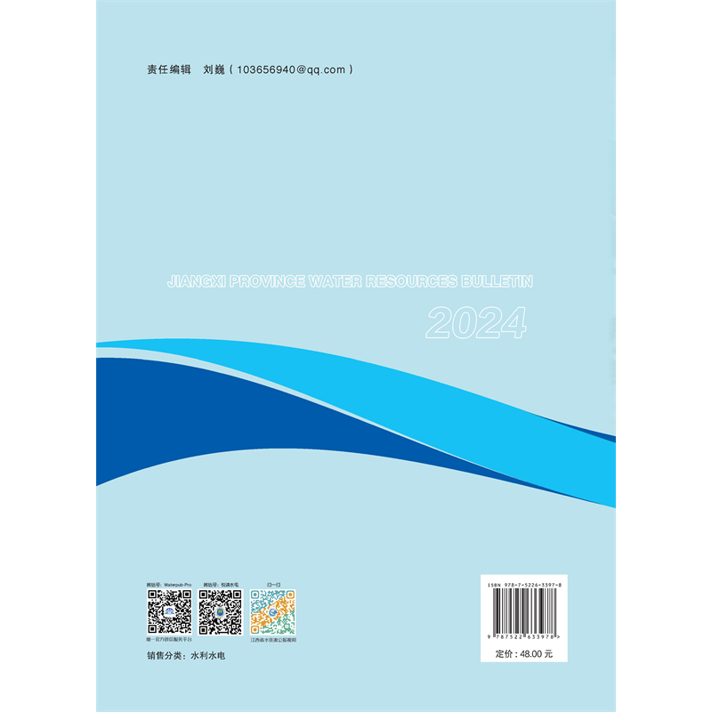 本书为2024年江西省水资源公报,内容包括水资源量、蓄水动态、水资源开发利用、用水总量和用水效率控制指标执行情况以及重要水事。《公报》中涉及的各类数据是经济社会发展统计与实时监测统计分析成果,其中,多年平均值统一采用1956~2016年水文系列平均值。《公报》由江西省水利厅组织编制,参加编制的单位包括江西省水文监测中心、江西省灌溉试验中心站、江西省各流域水文水资源监测中心。本书是江西省年度水资源统计成果的权威发布。'