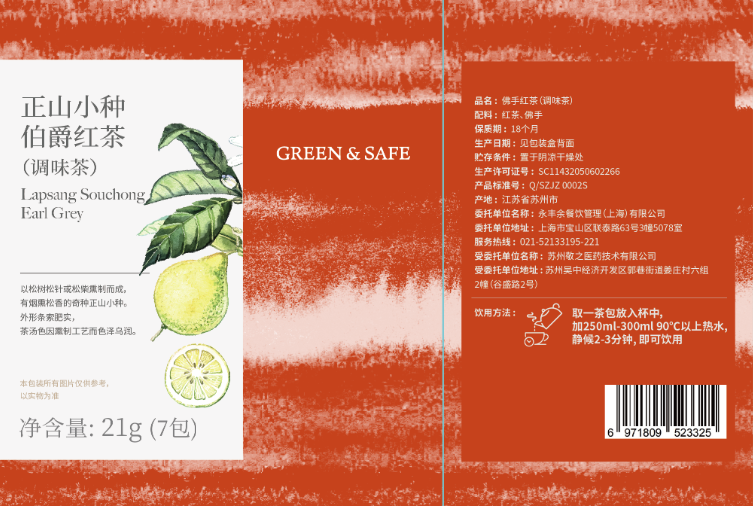 | 品名 | 正山小种伯爵红茶(调味茶) Lapsang Souchong Earl Grey Tea |