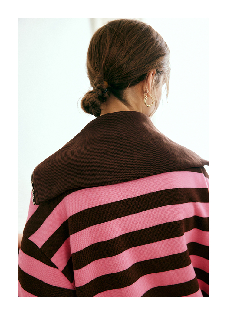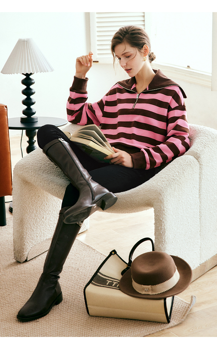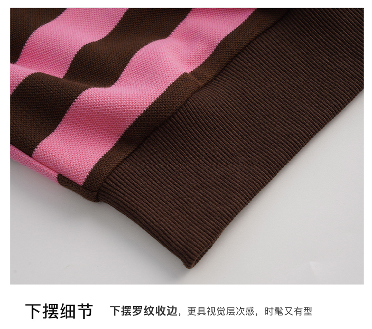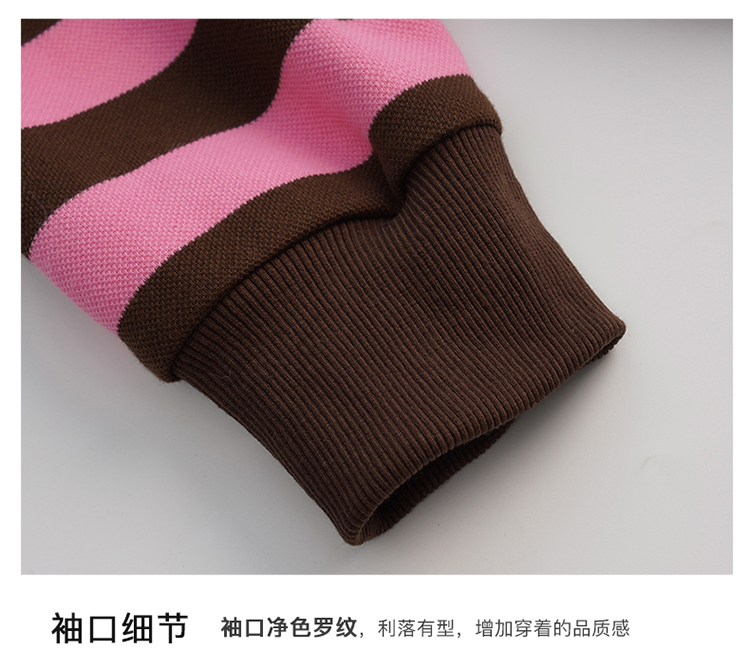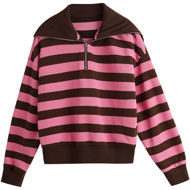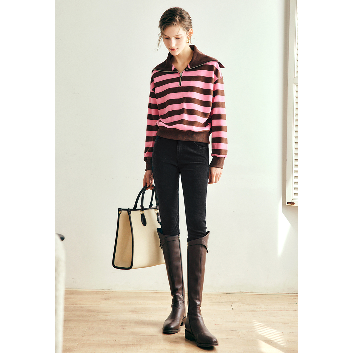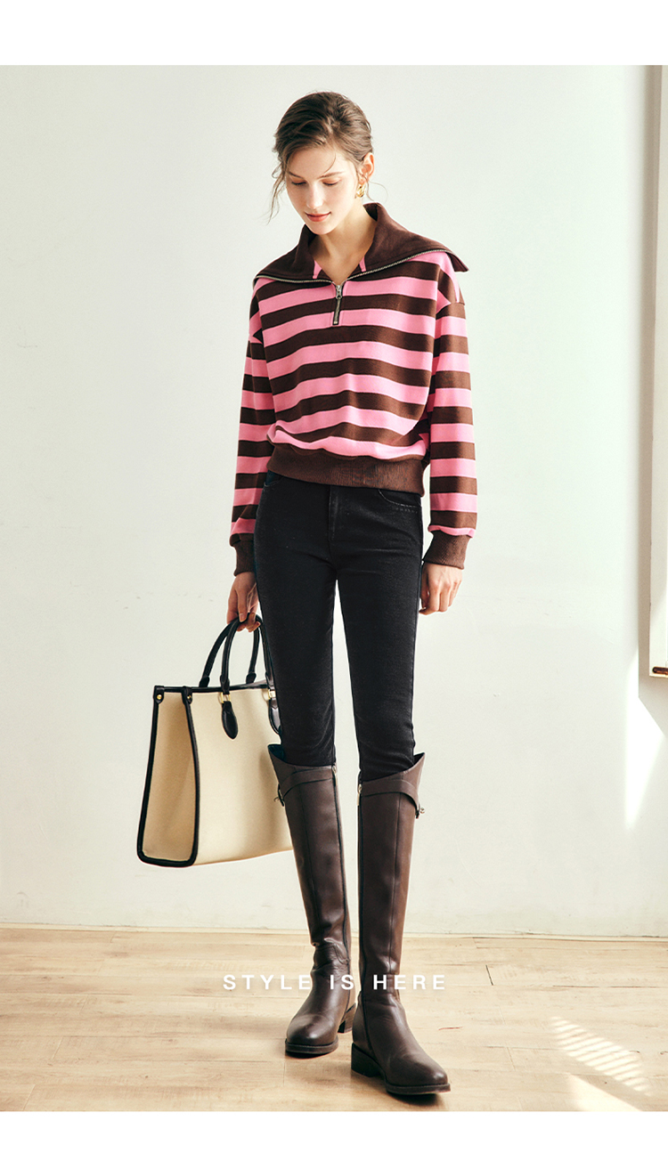 OLrain欧芮儿法式半拉链条纹卫衣女秋冬大翻领套头上衣