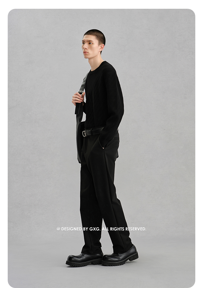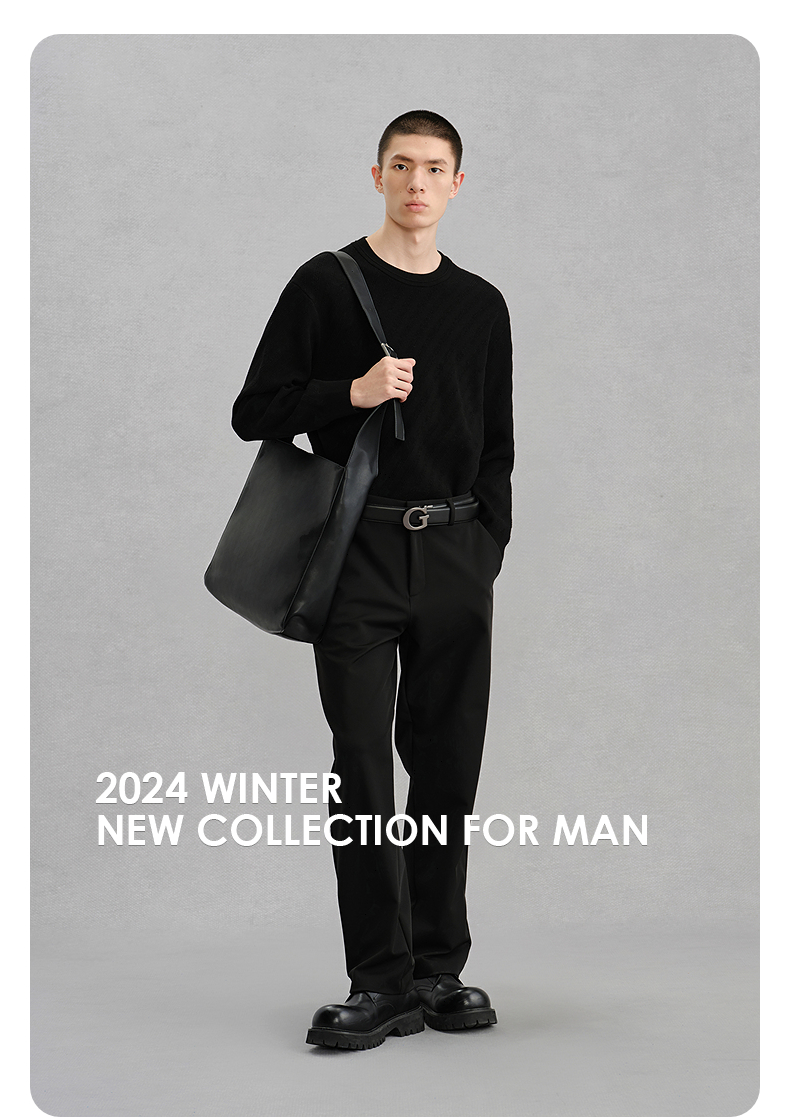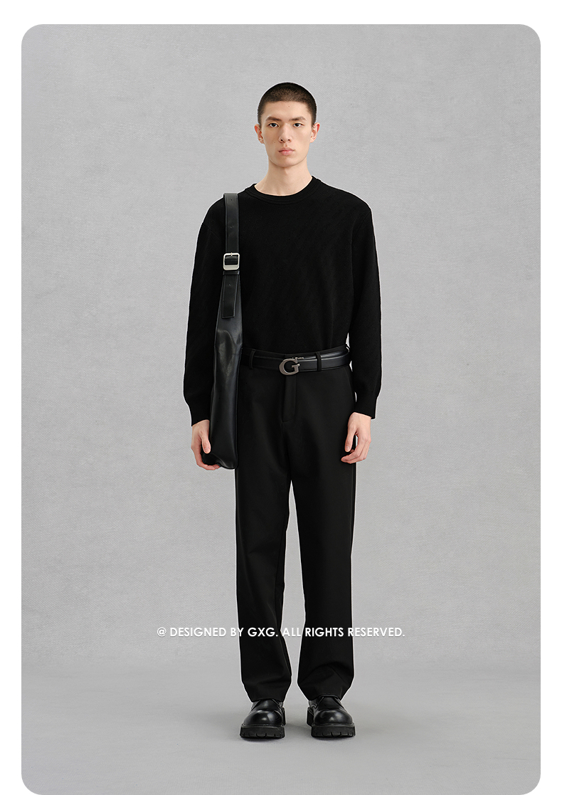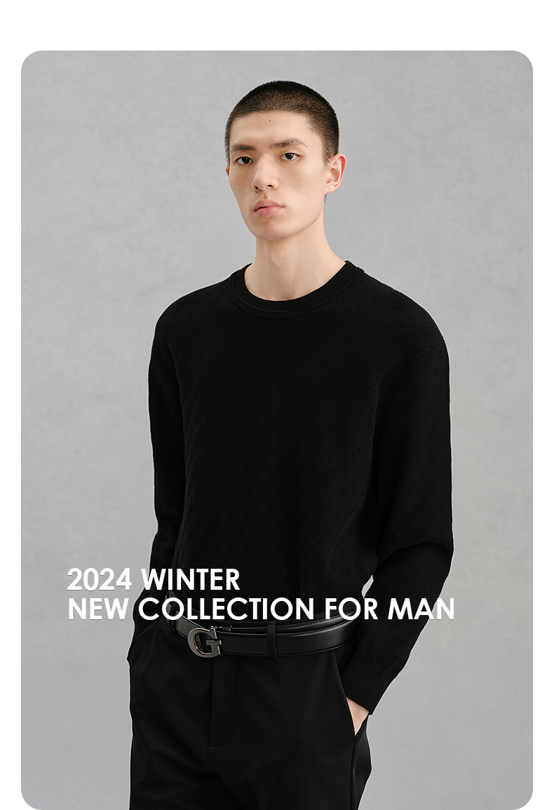 GXG男装 黑色圆领基础线衫通勤男毛衣 24年冬G24X204043