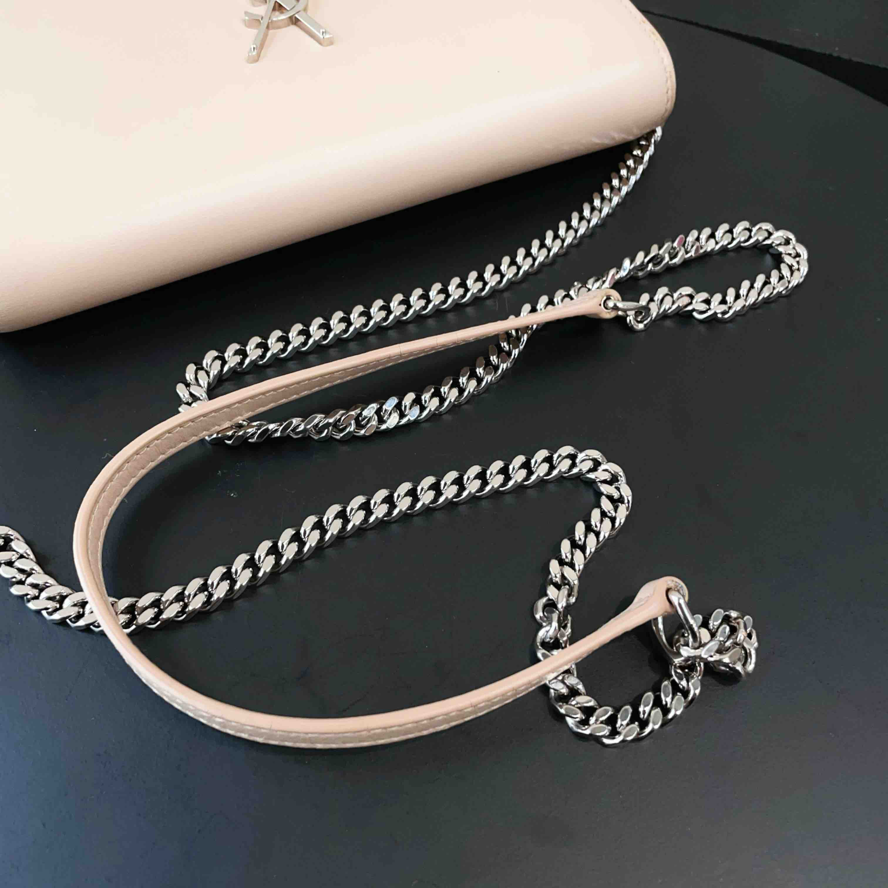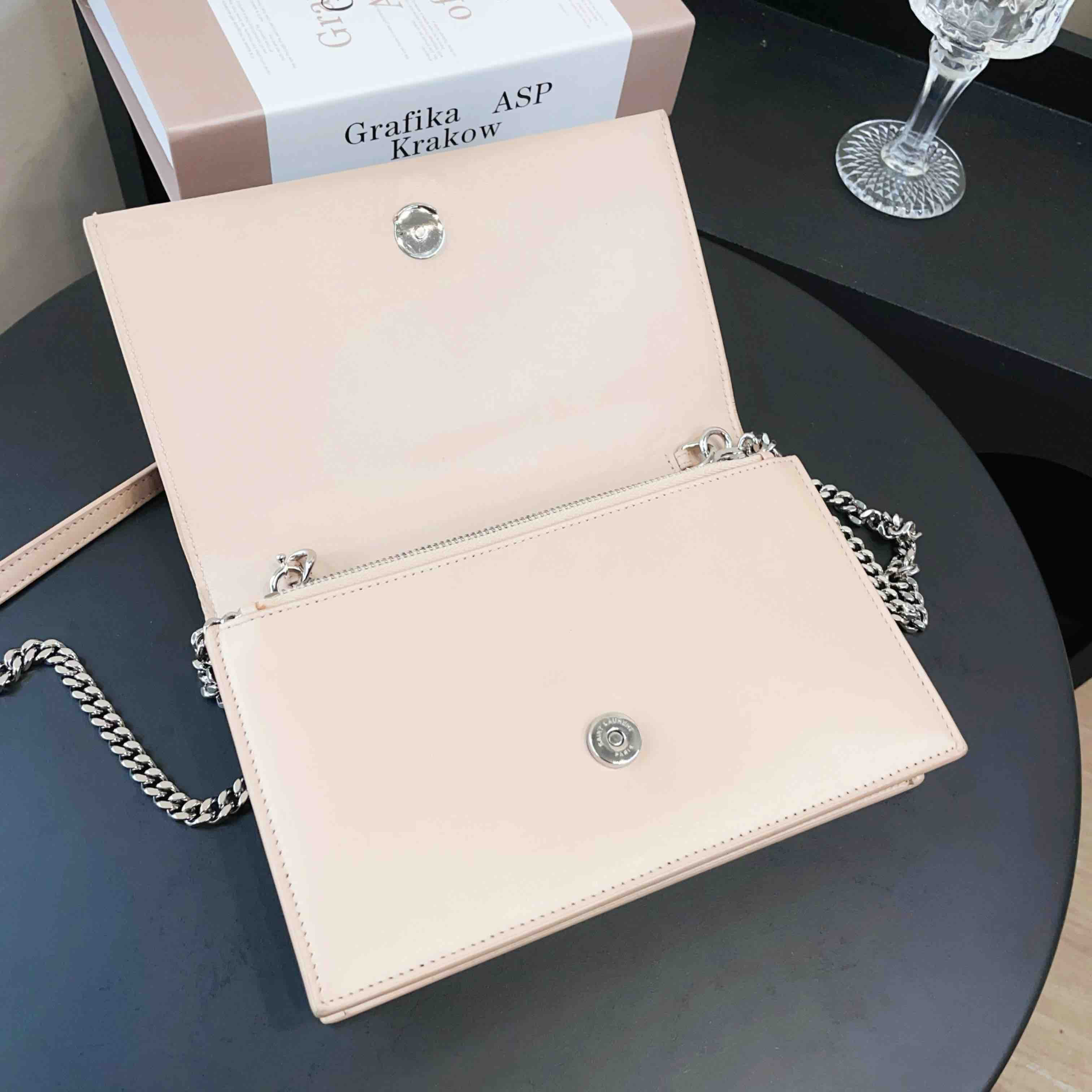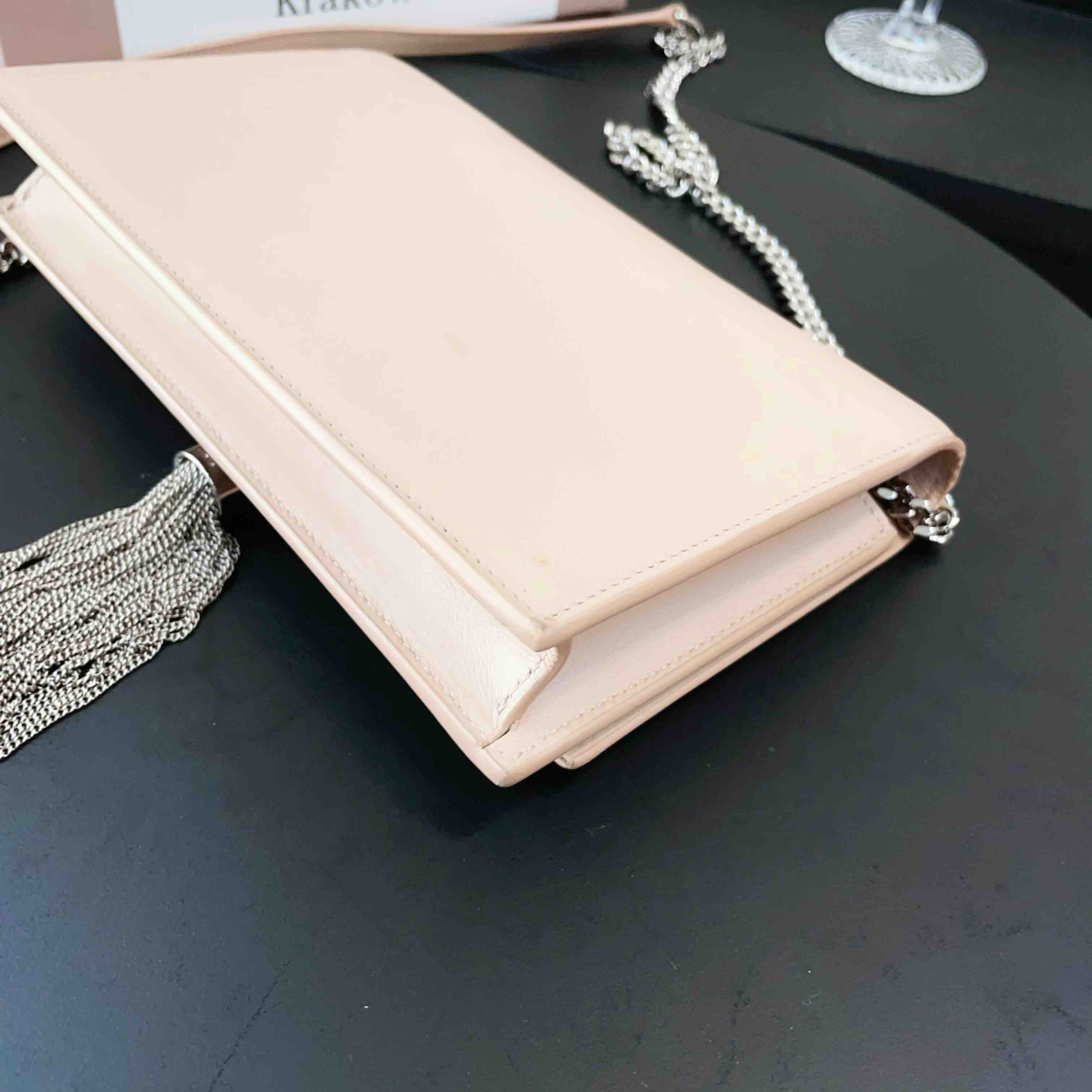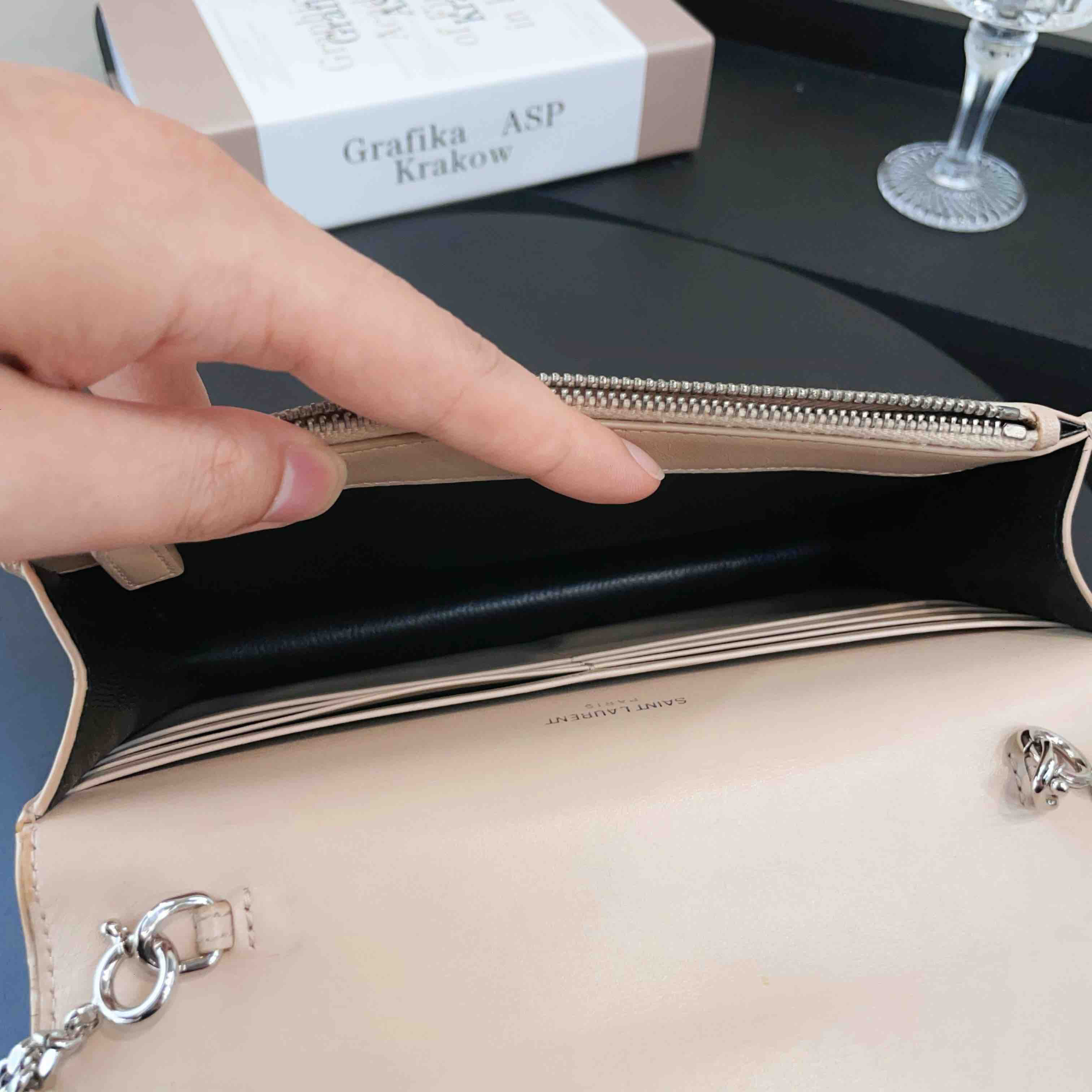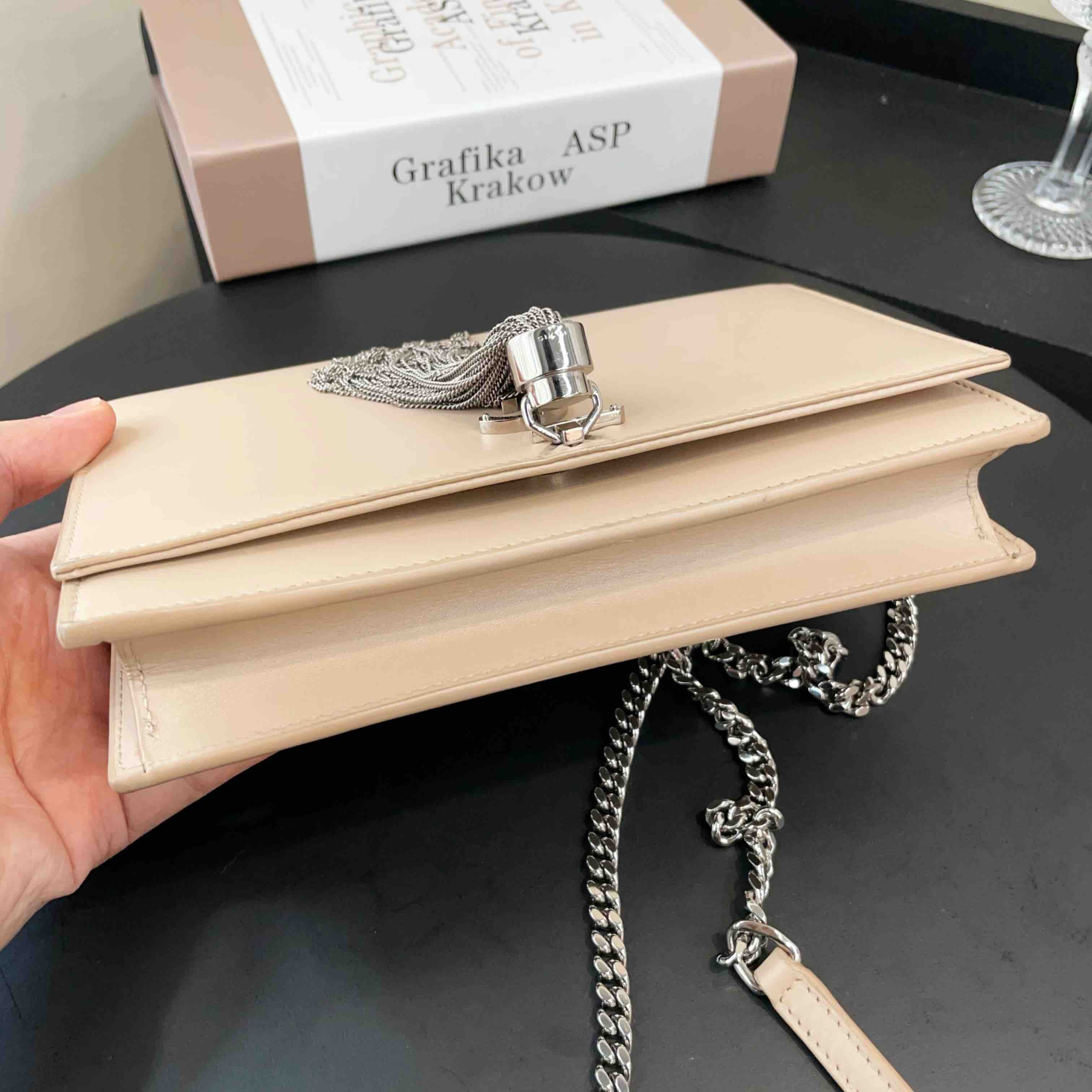【商品描述】正品二手 YSL 米色 kate 流苏 牛皮 信封 链条包 👜 95新 19x12 五金轻微划痕 油边轻微磨损