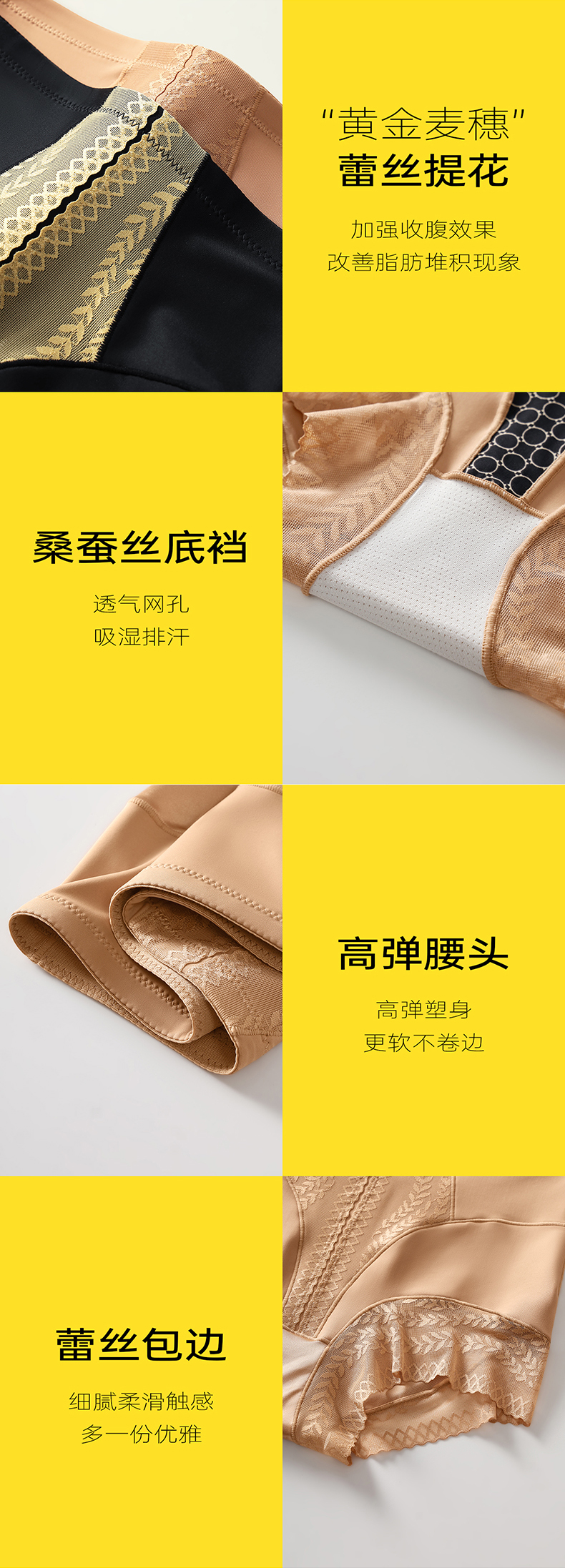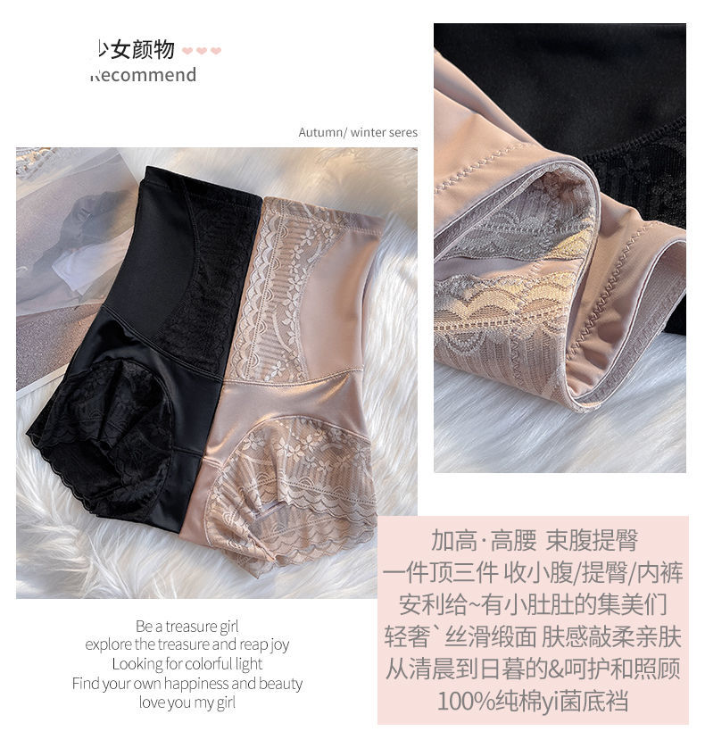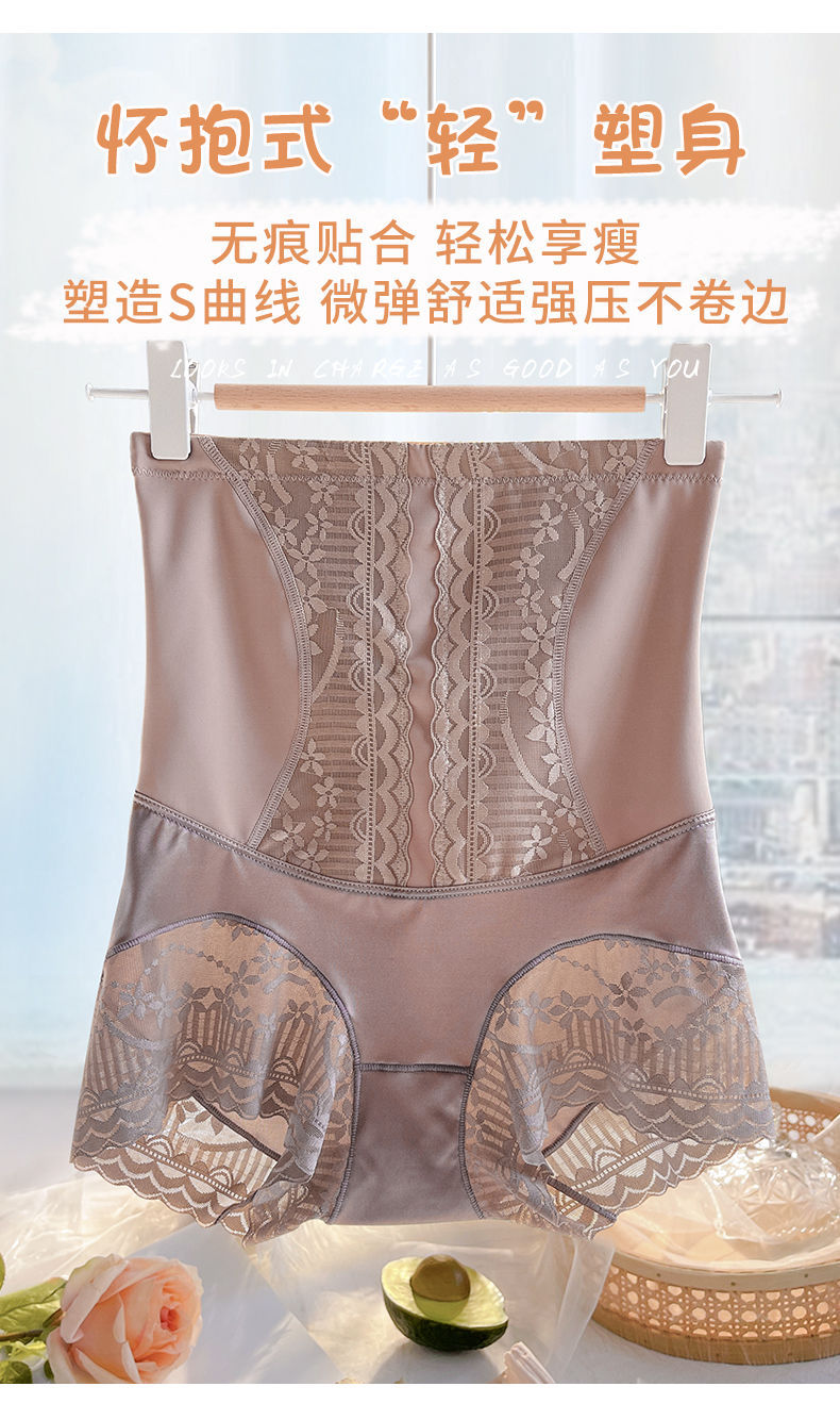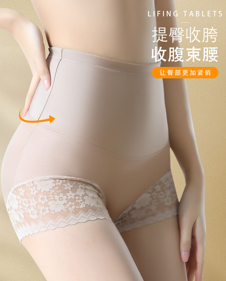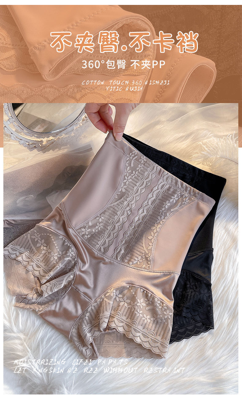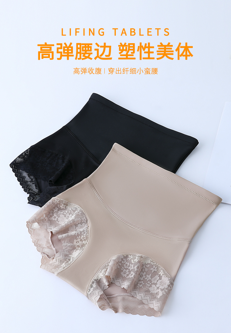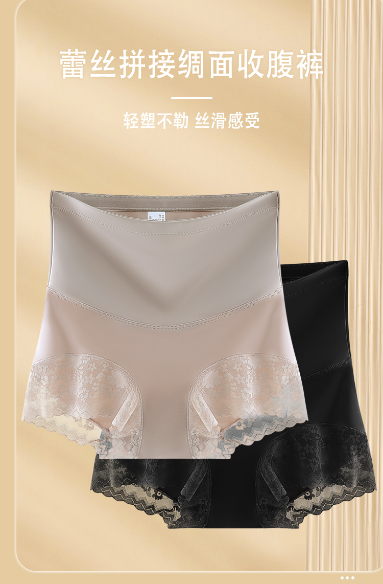 蕾丝高腰绸面收腹裤小蛮腰女士内裤提臀塑身安全裤0018/0060/8804/7838
