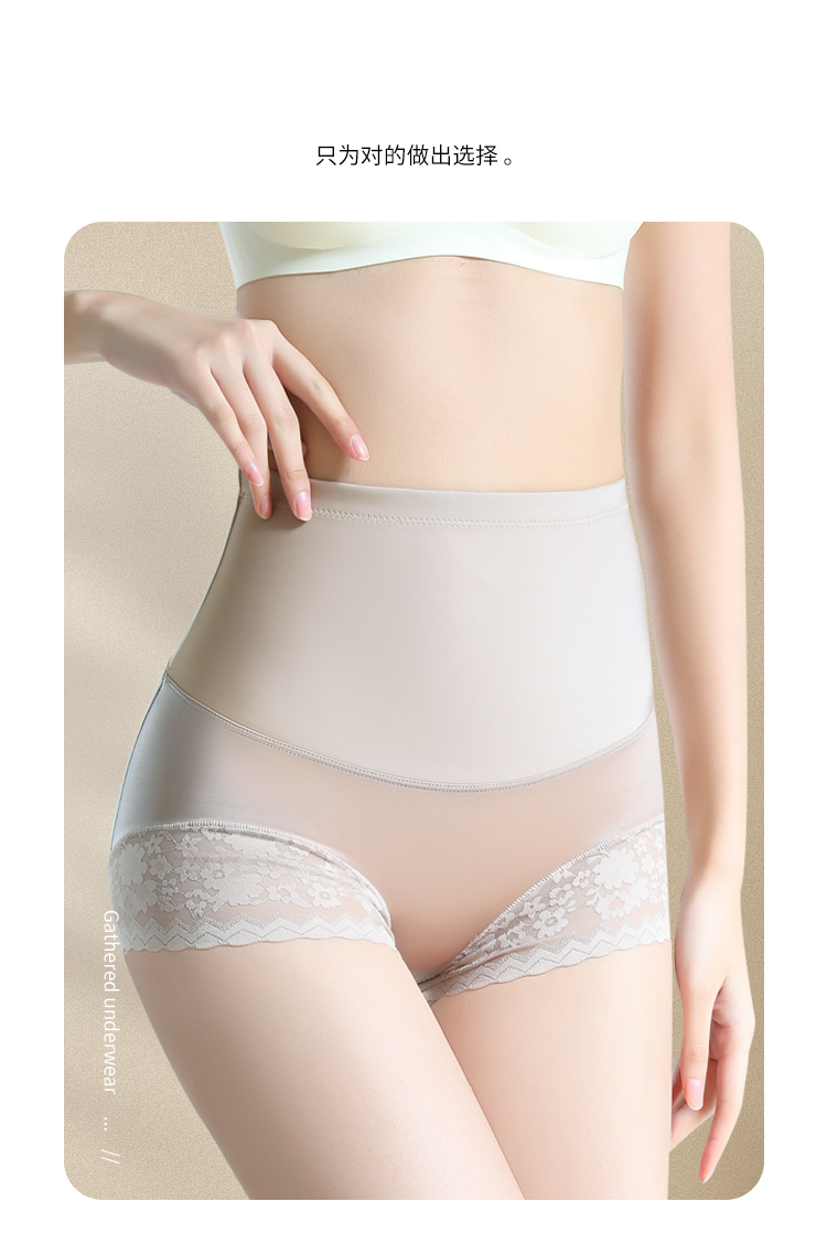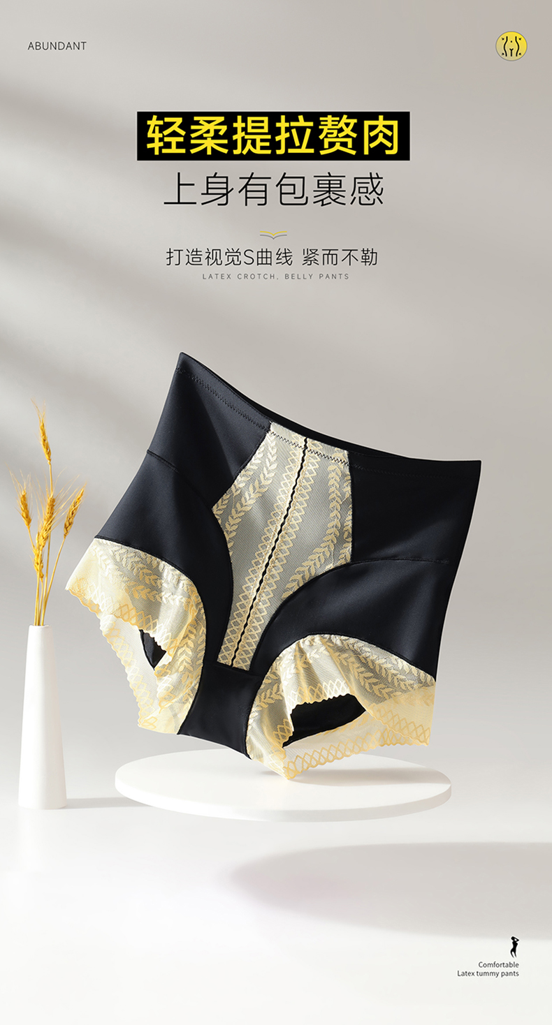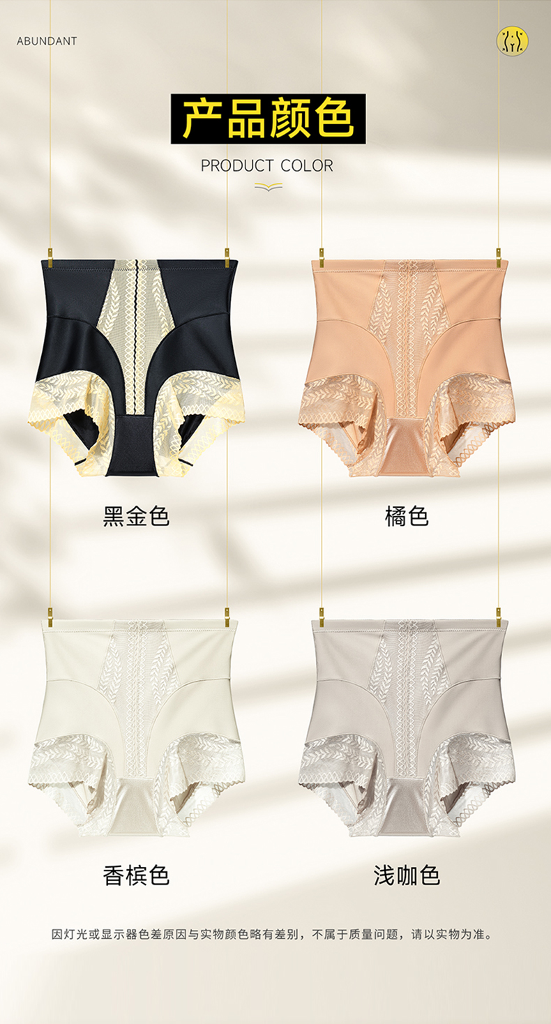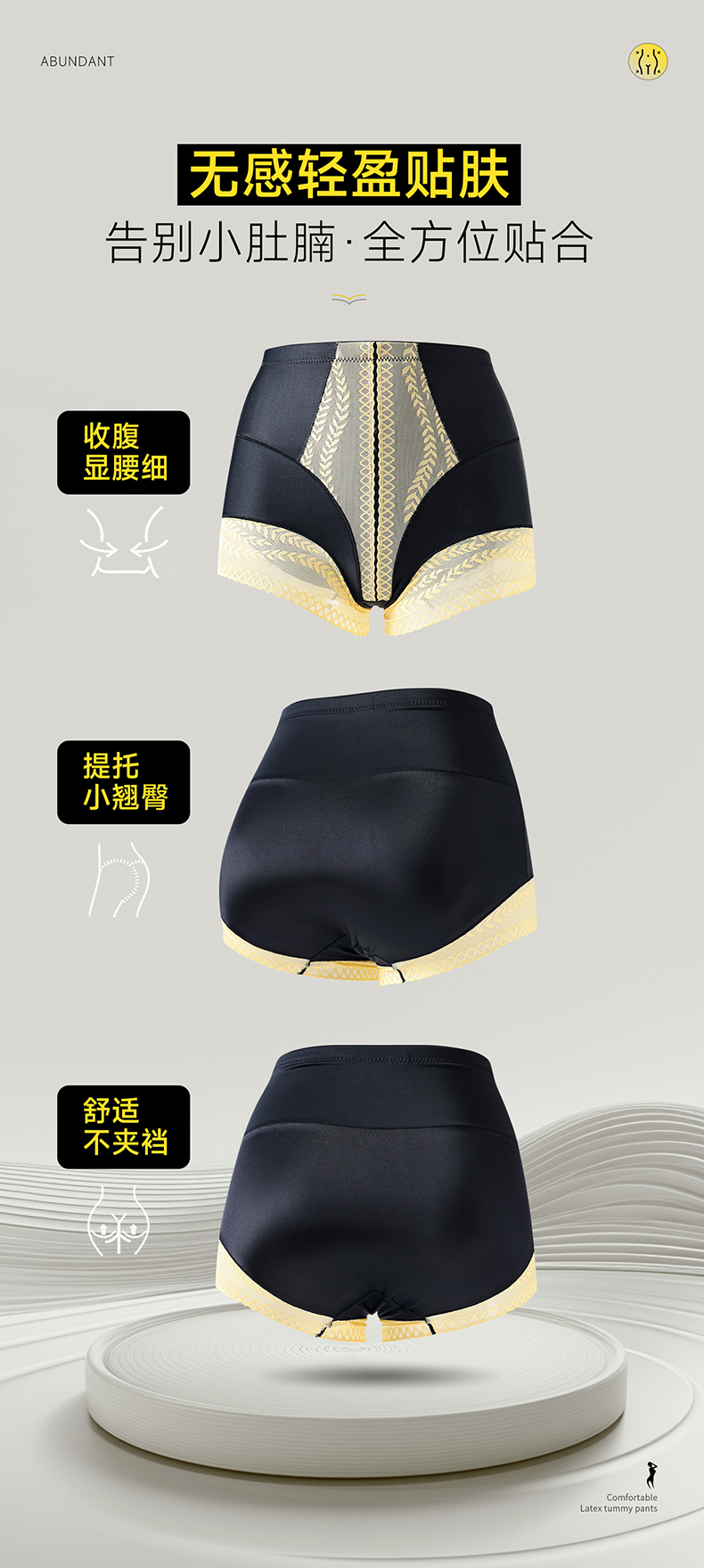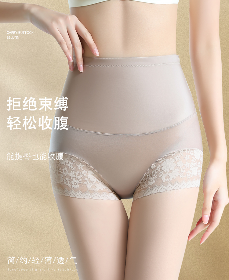 蕾丝高腰绸面收腹裤小蛮腰女士内裤提臀塑身安全裤0018/0060/8804/7838