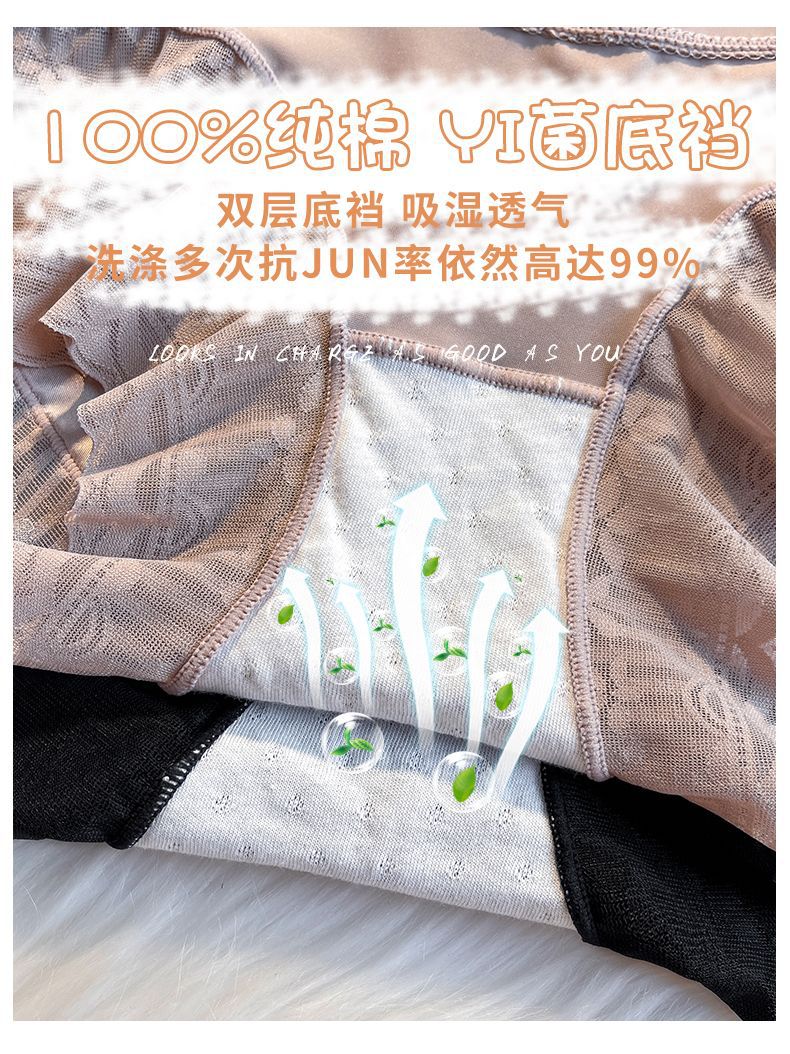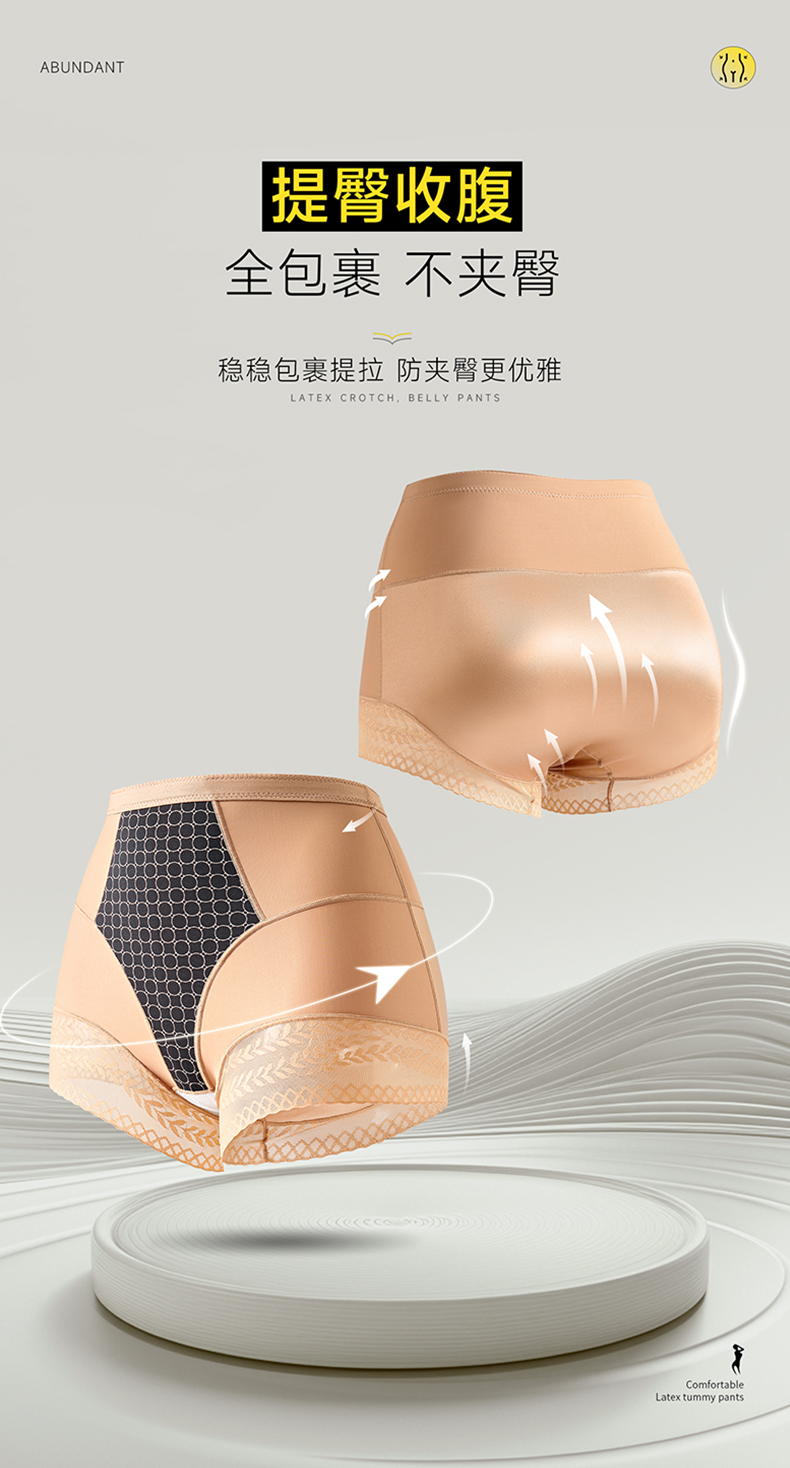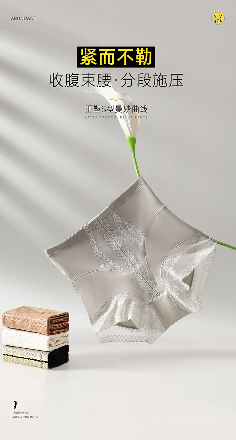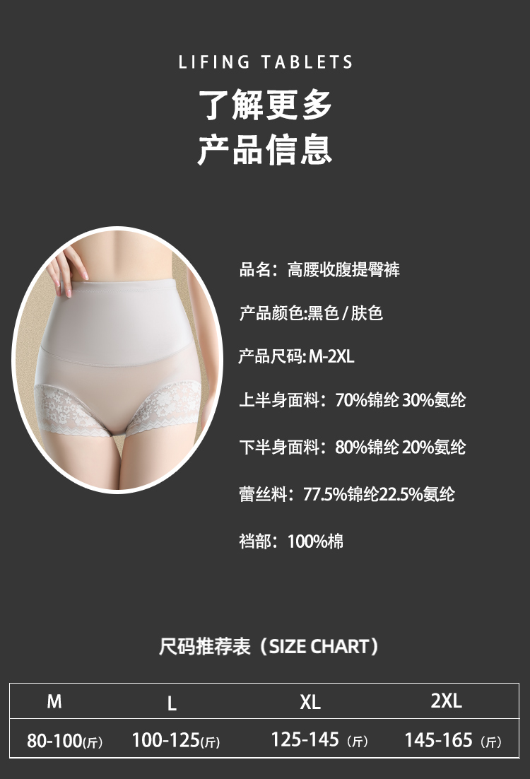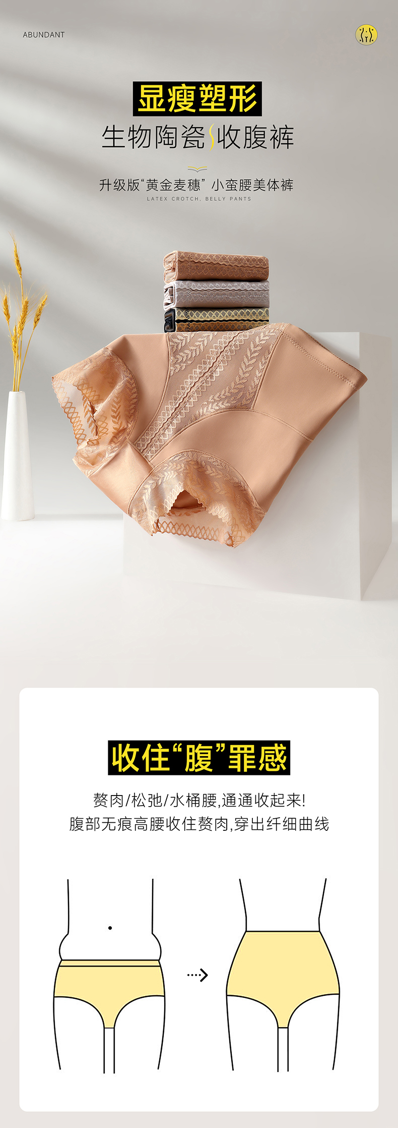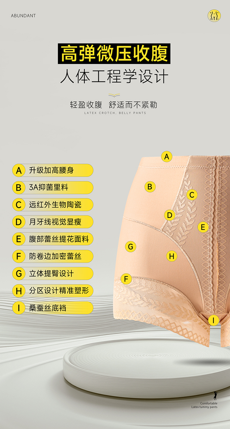 蕾丝高腰绸面收腹裤小蛮腰女士内裤提臀塑身安全裤0018/0060/8804/7838