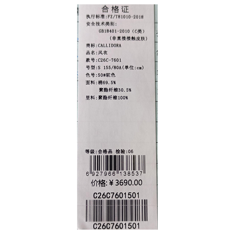 卡莉朵拉风衣C26C7601