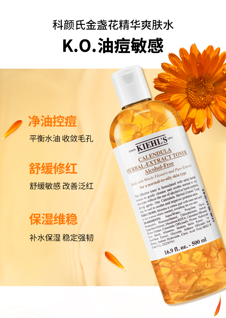 科颜氏金盏花植萃爽肤水 500ml 收缩毛孔抗痘补水保湿舒缓维稳
