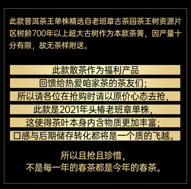 【积分兑换】【老班章单株】2021年头春茶王勐海茶区单株普洱生茶200g散茶