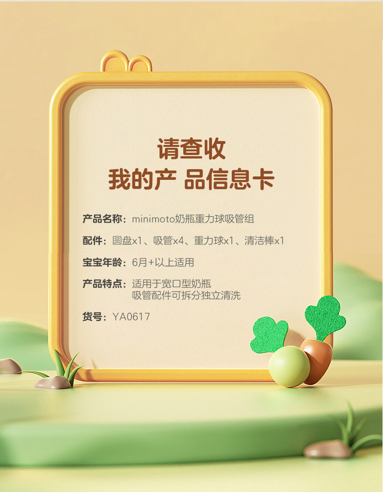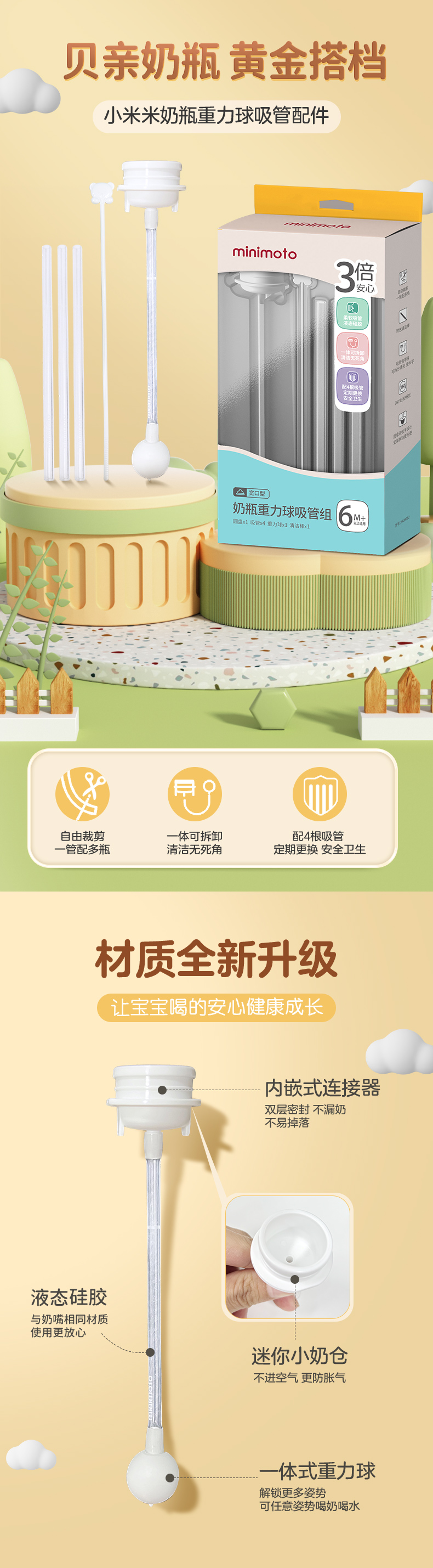 小米米用品重力球配件适配贝亲奶瓶三代宽口径奶嘴吸管组学饮水杯/YA0617