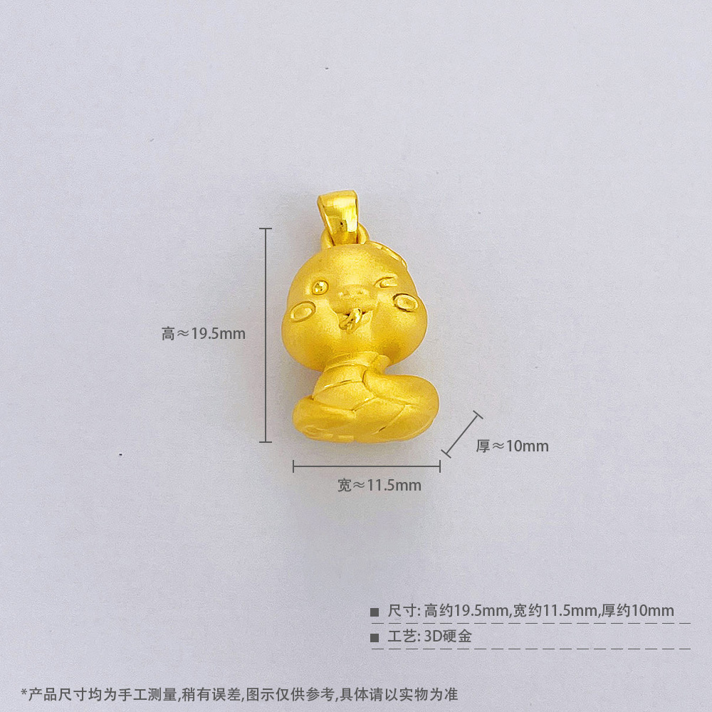 【限时7.5折】【定价黄金】足金 #生肖 #蛇年新品 【精品】3D硬金空心俏皮鬼脸蛇宝宝吊坠(AR3DDZ00220)预售产品下单后不退款不退货不换货不补差价