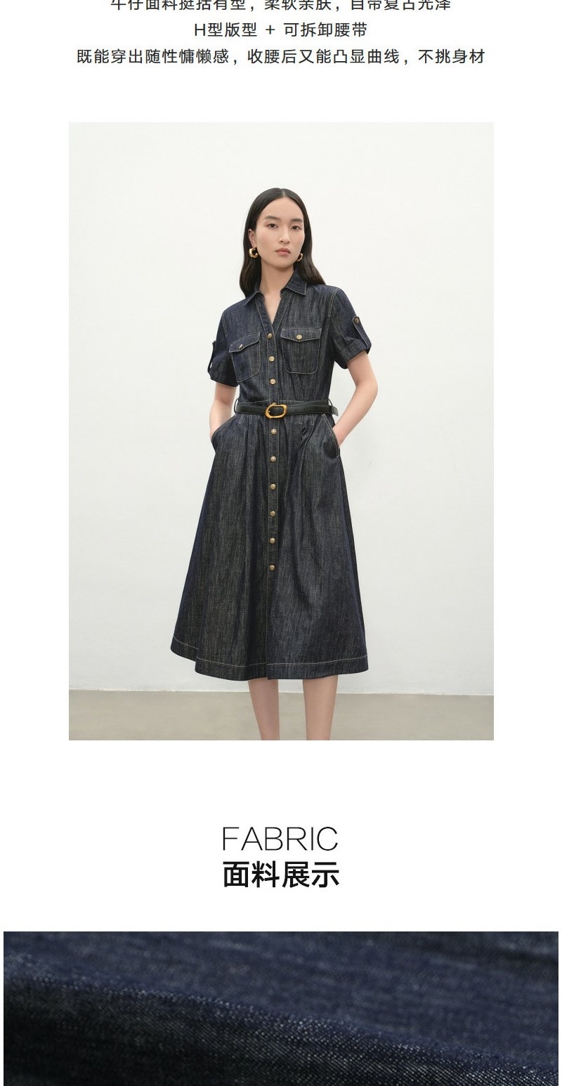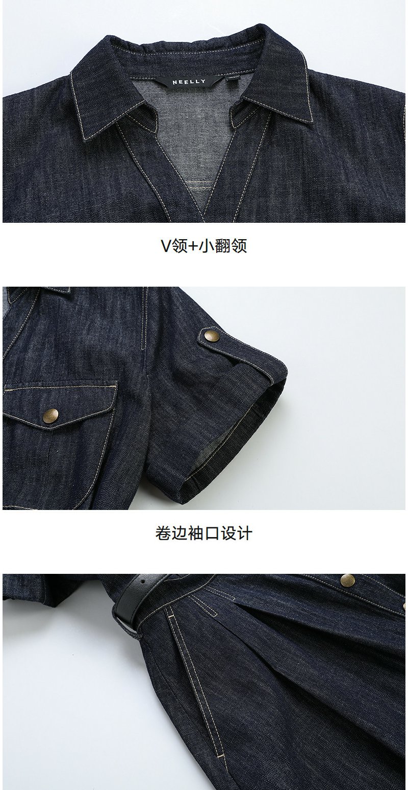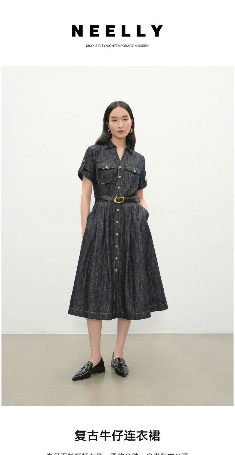 NEELLY纳俪商场同款夏季新款复古休闲牛仔连衣裙女慵懒收腰长裙N26044Y04533