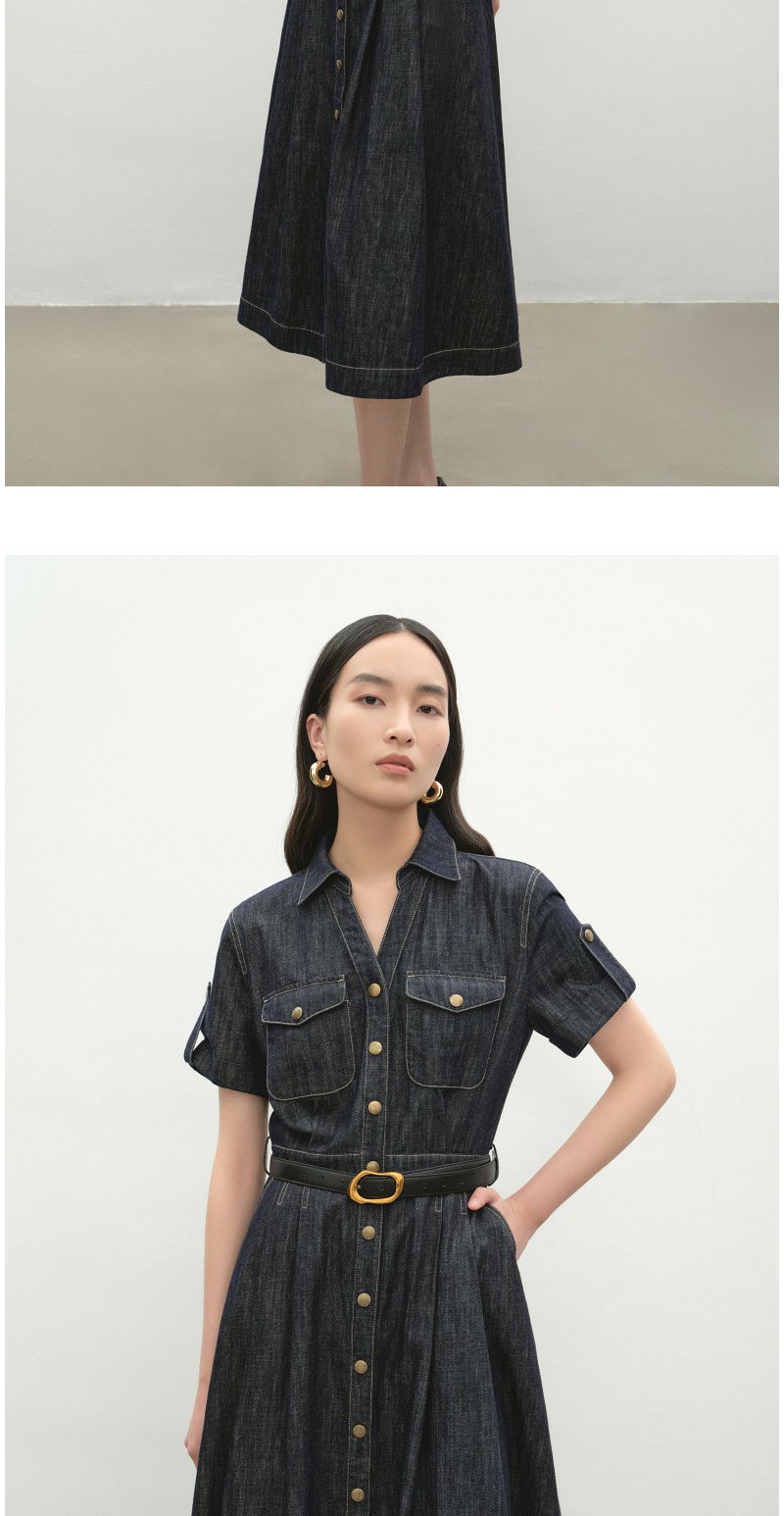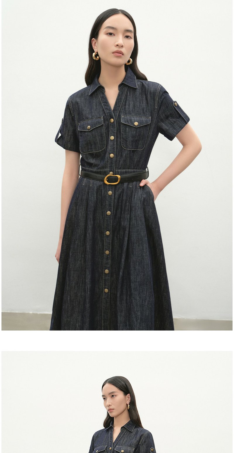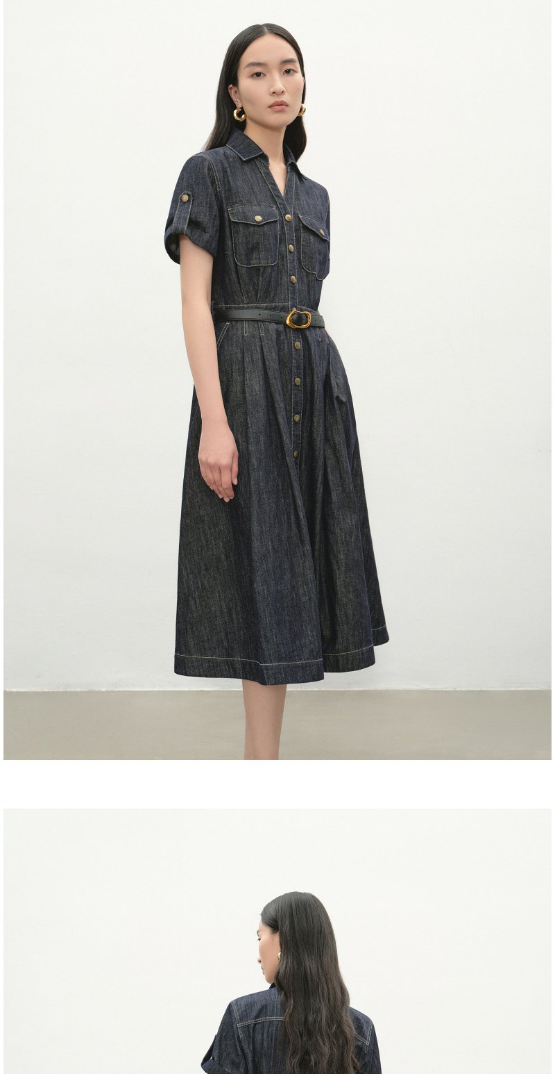 NEELLY纳俪商场同款夏季新款复古休闲牛仔连衣裙女慵懒收腰长裙N26044Y04533