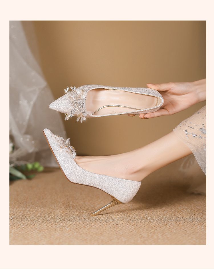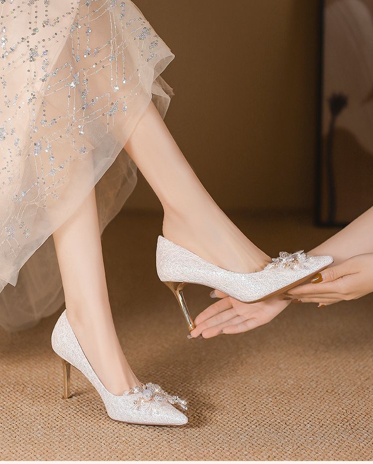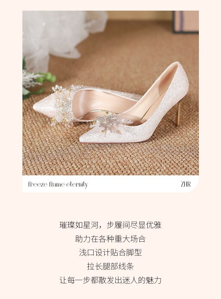 ZHR则则水钻高跟鞋女2025新款春季气质法式婚鞋显高不累脚伴娘鞋