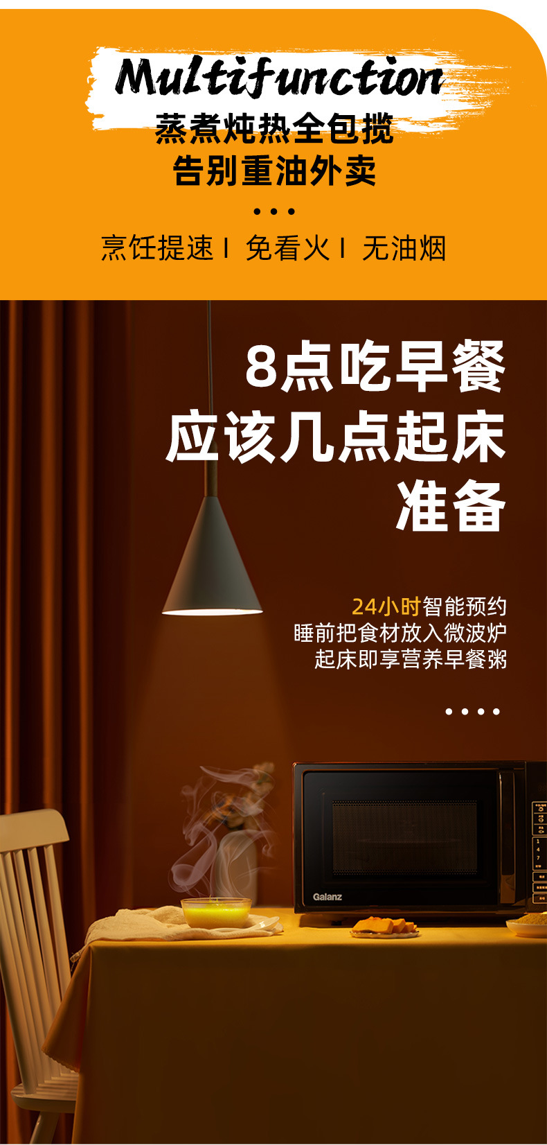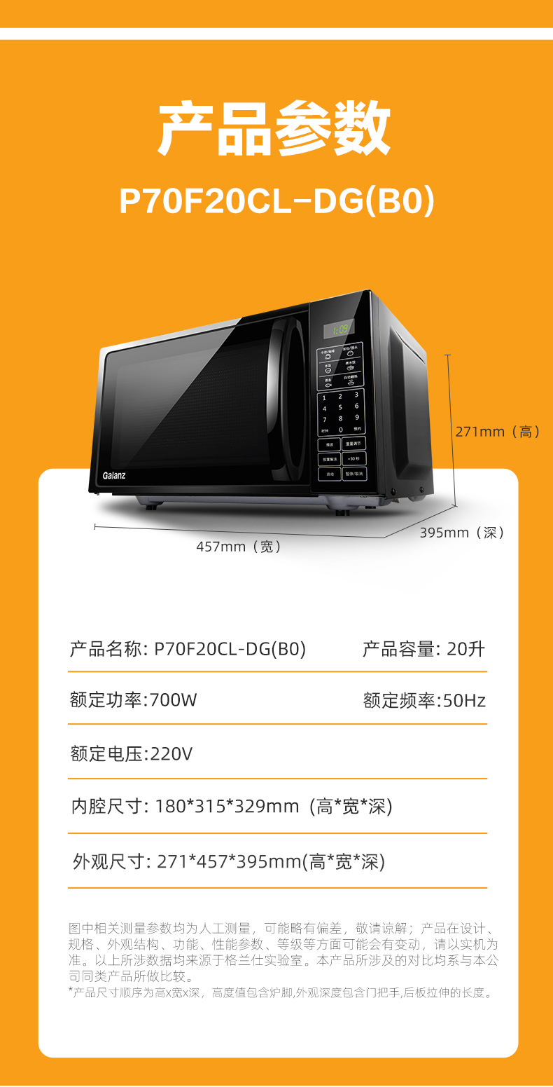 【格兰仕微波炉】20L平板内胆家用多功能烤箱 智能预约热饭菜微波炉