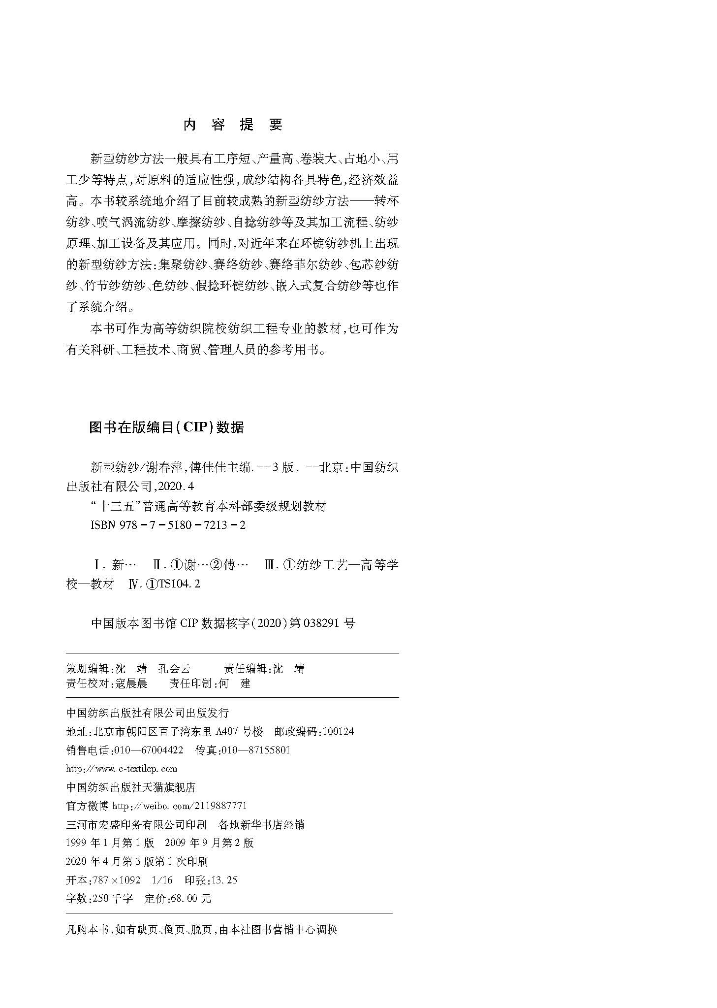 新型纺纱 第3版 谢春萍 傅佳佳 十三五 普通高等教育本科部委级规划教材新型纺纱方法高等纺织院校纺织工程专业教材纺纱加工流程书