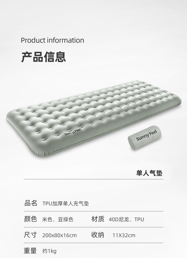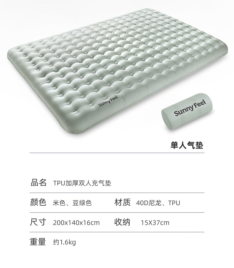 SunnyFeel户外露营气垫TPU加厚充气床垫_野营睡垫营地防水充气床