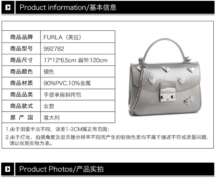【香港直邮】·QH Furla 芙拉 女士银色PVC单肩包斜挎包 992782