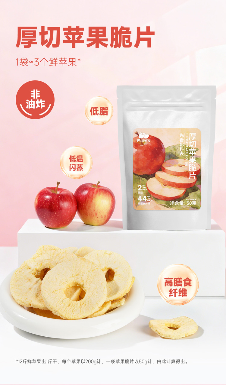 西域美农 厚切苹果脆片50g 袋装 低脂高膳食纤维 儿童零食非油炸