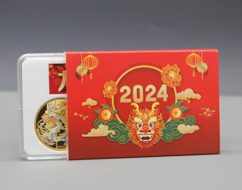新款龙年生肖贺岁纪念章中国风金属纪念币活动会销随手小礼品摆件