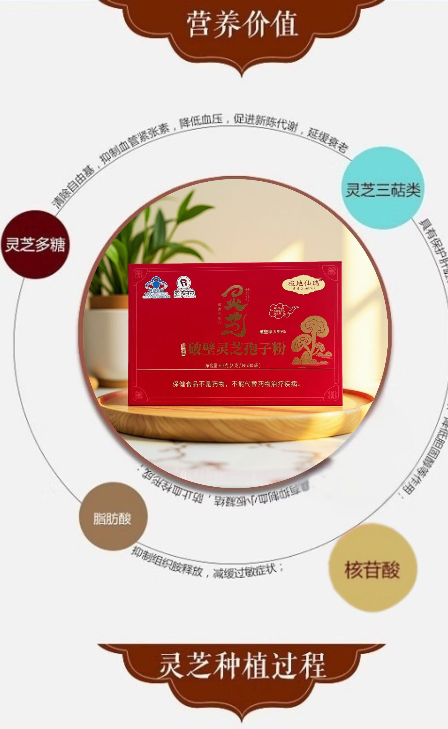 极地仙瑞破壁灵芝孢子粉2g*30条