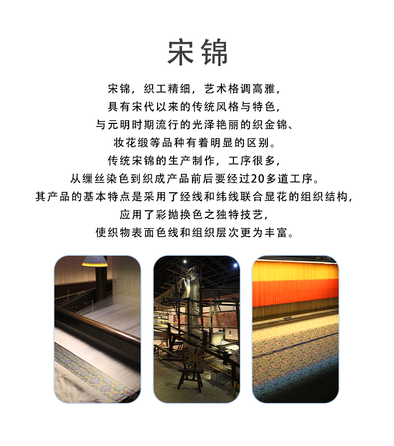 - 上久楷前身为苏州上九坎绸缎庄,源于1889年,是清光绪年间的皇室御用宋锦织造商。现从事“世界非物质文化遗产—宋锦”的抢救性开发,并研制出世界首台按照宋锦传统工艺织造的电子提花机,使宋锦走向了产业化道路