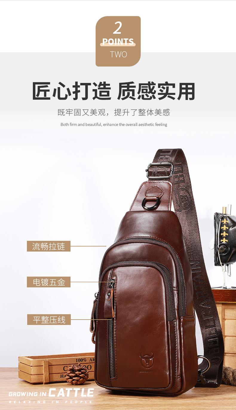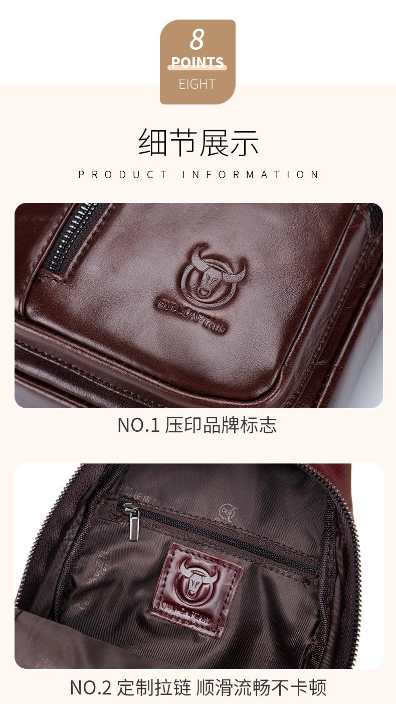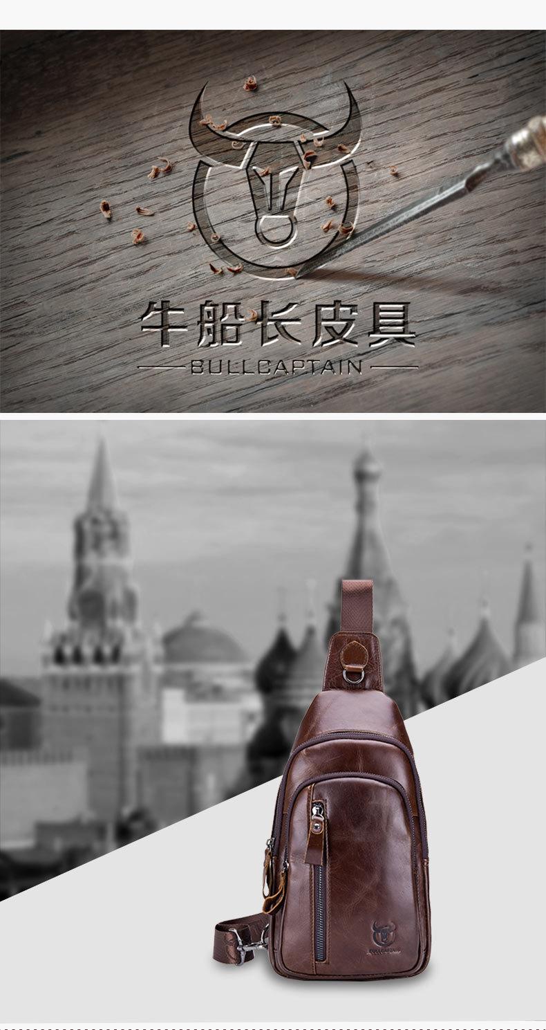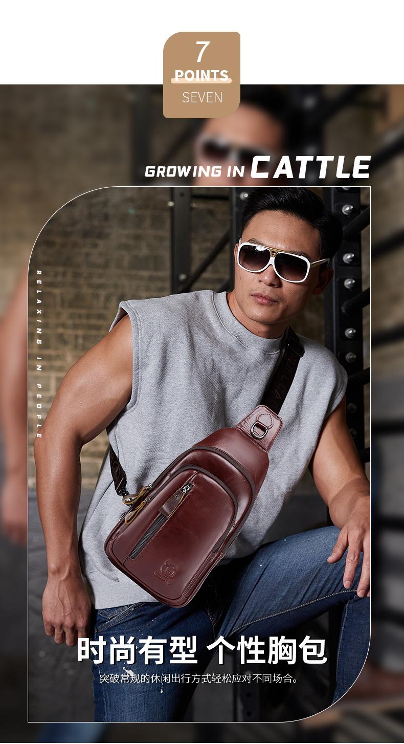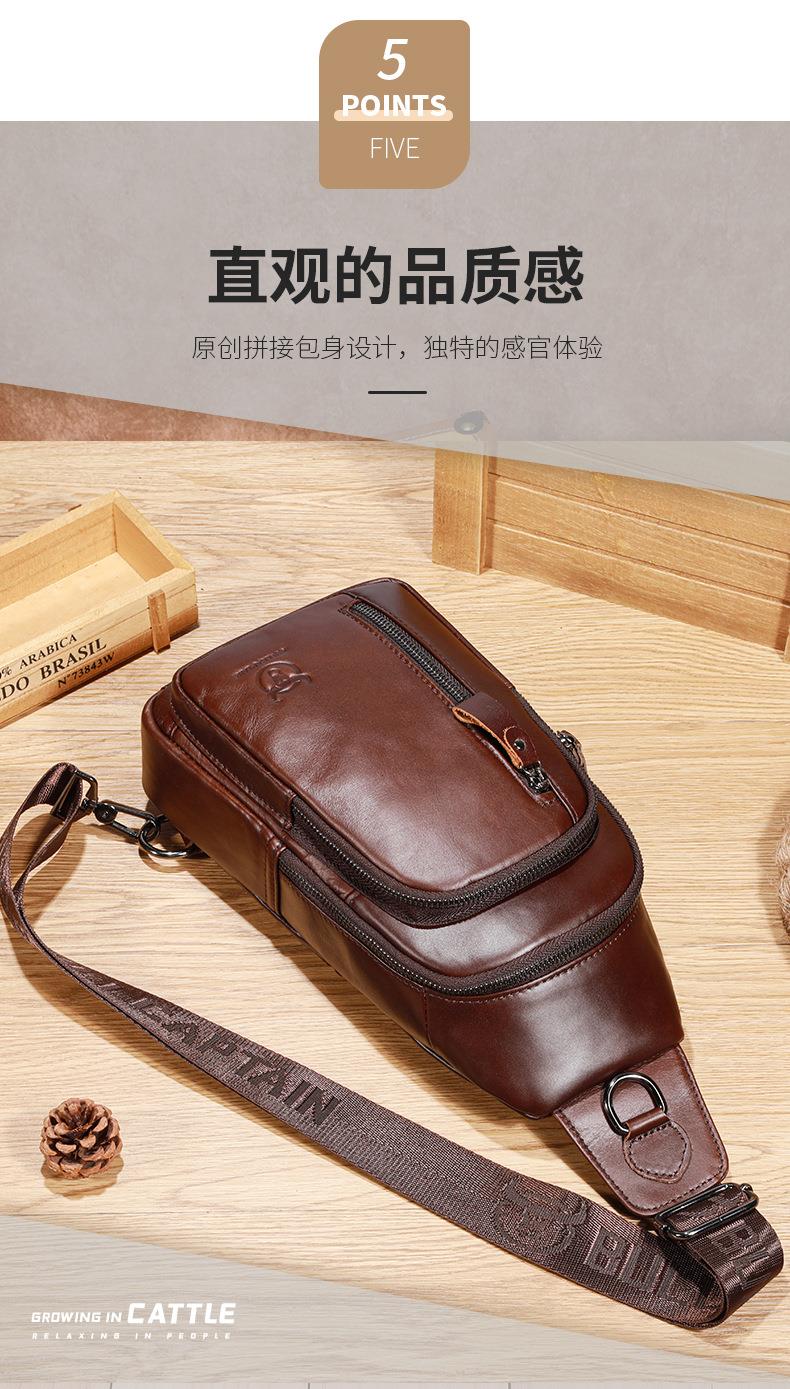 牛船长男士真皮单肩斜挎胸包头层牛皮时尚多功能运动休闲胸前包