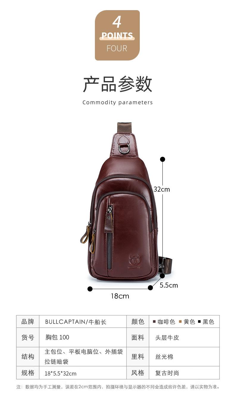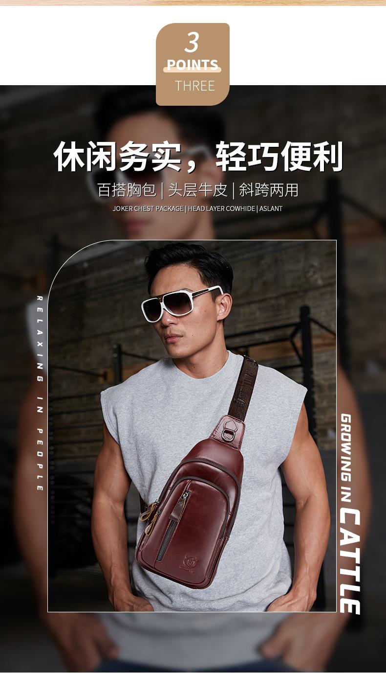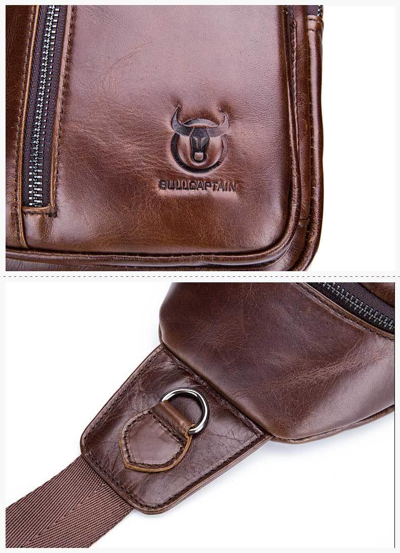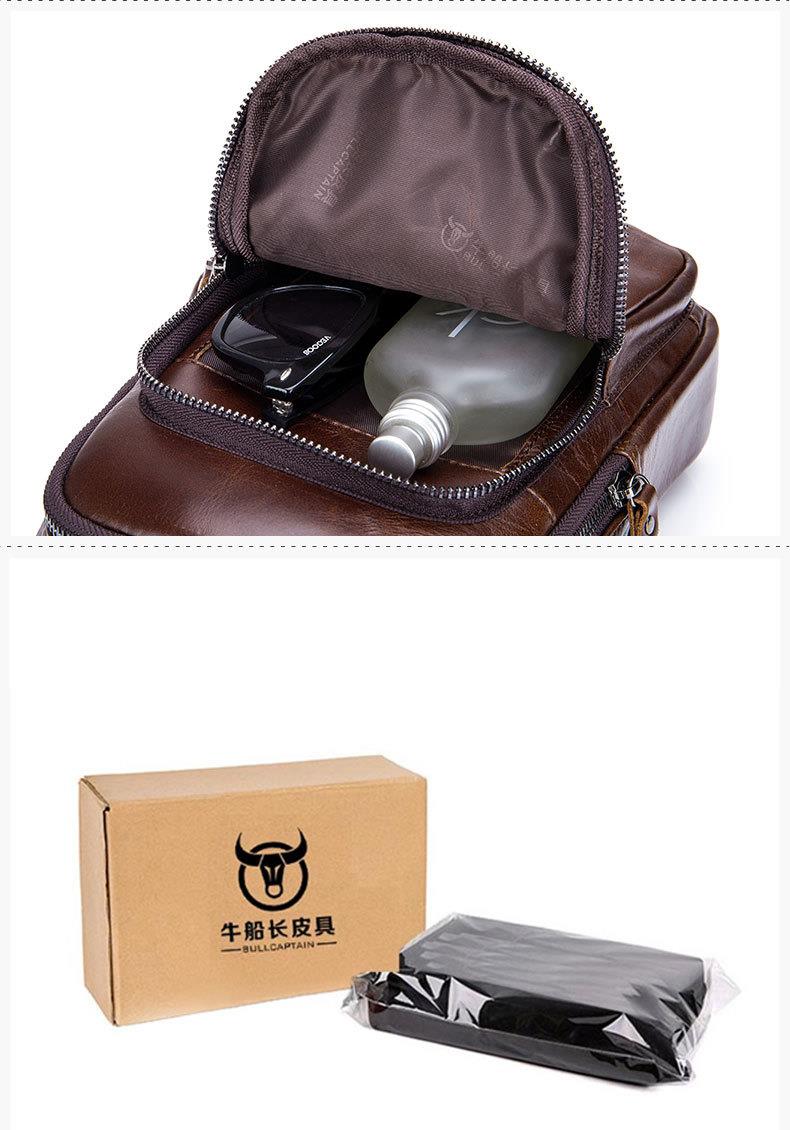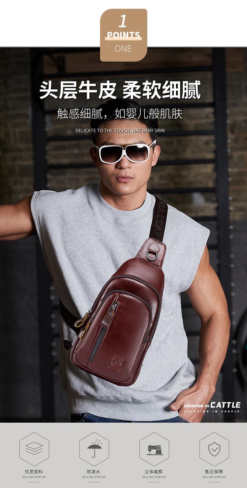 牛船长男士真皮单肩斜挎胸包头层牛皮时尚多功能运动休闲胸前包