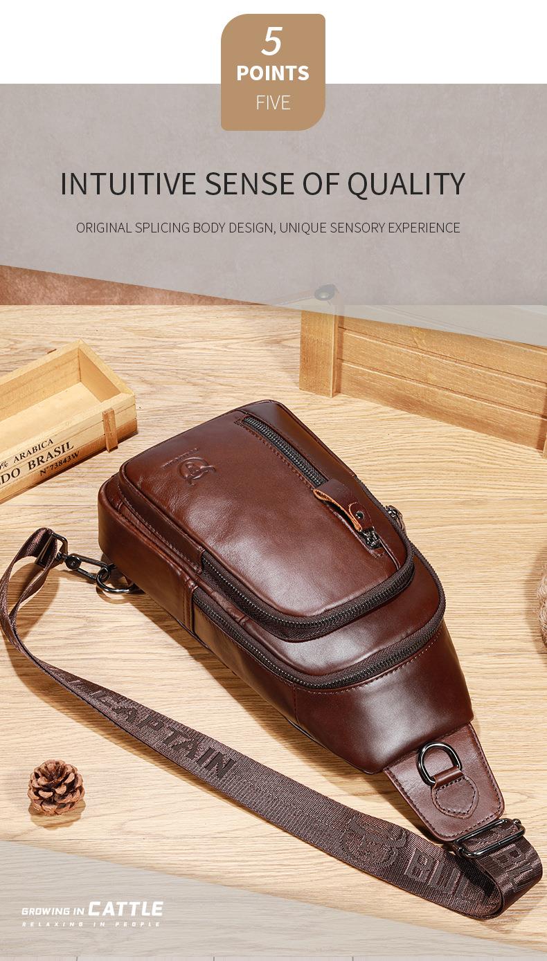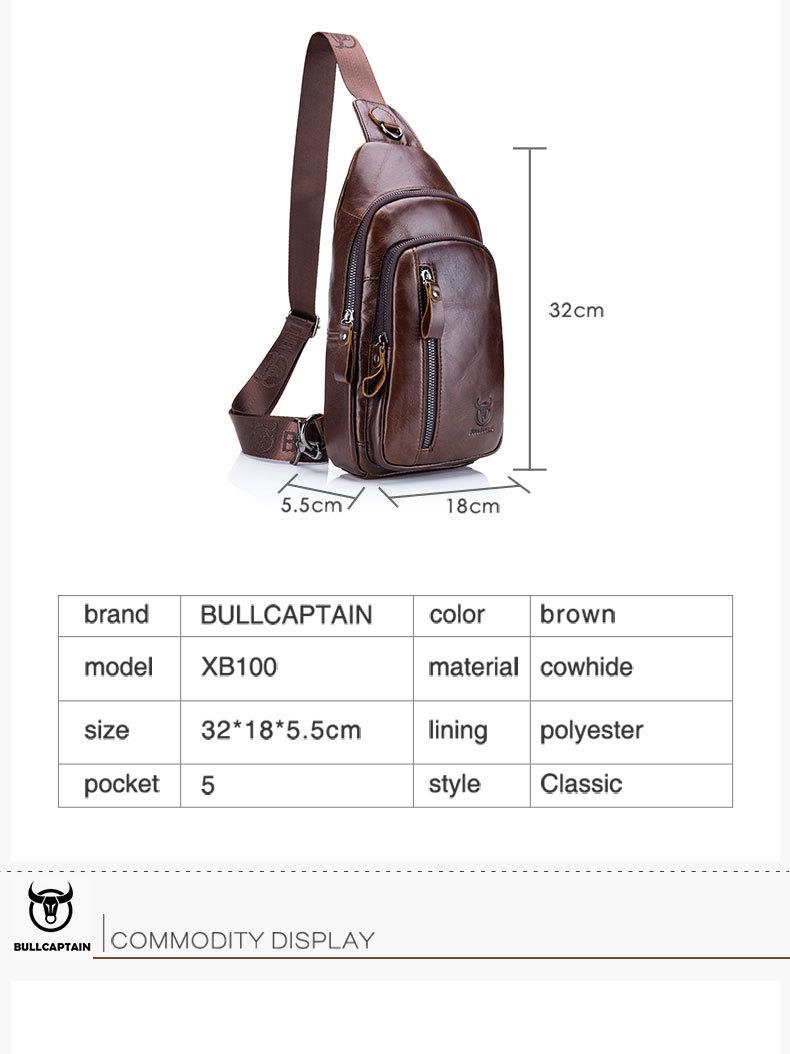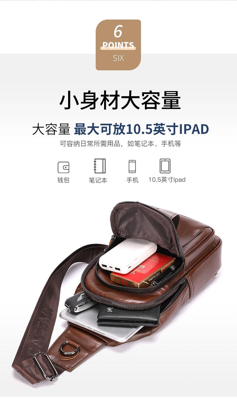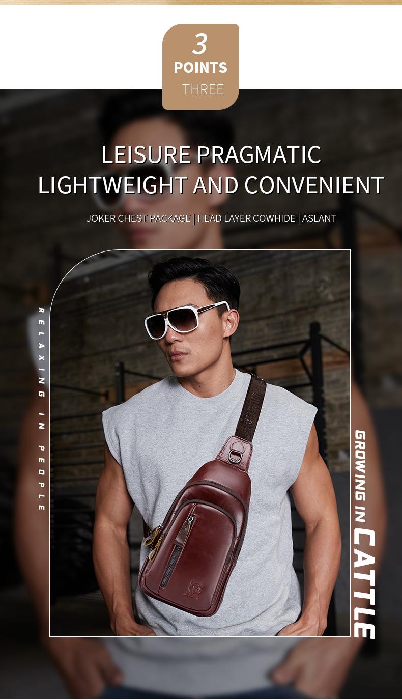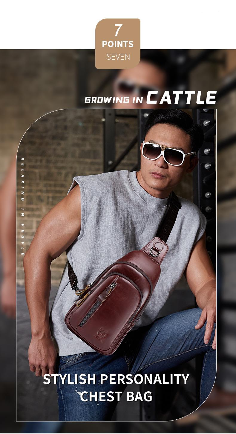 牛船长男士真皮单肩斜挎胸包头层牛皮时尚多功能运动休闲胸前包