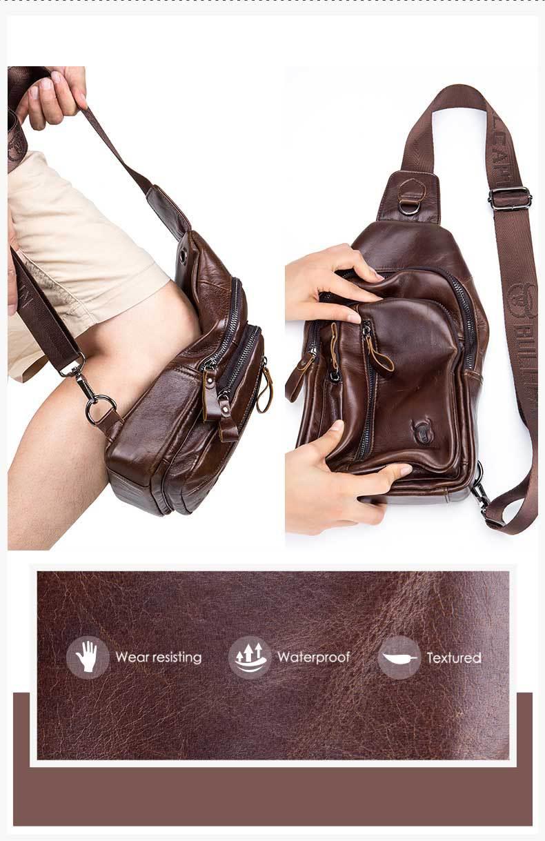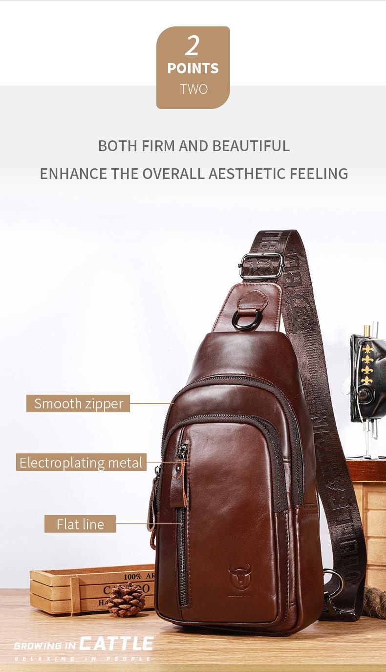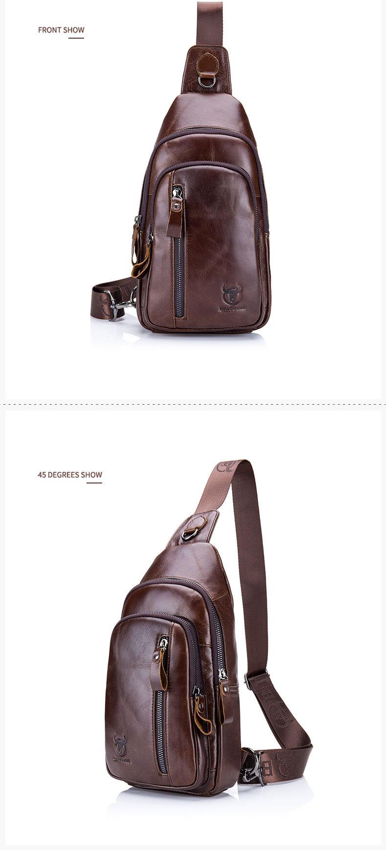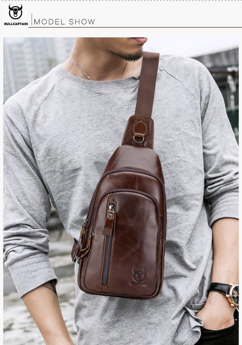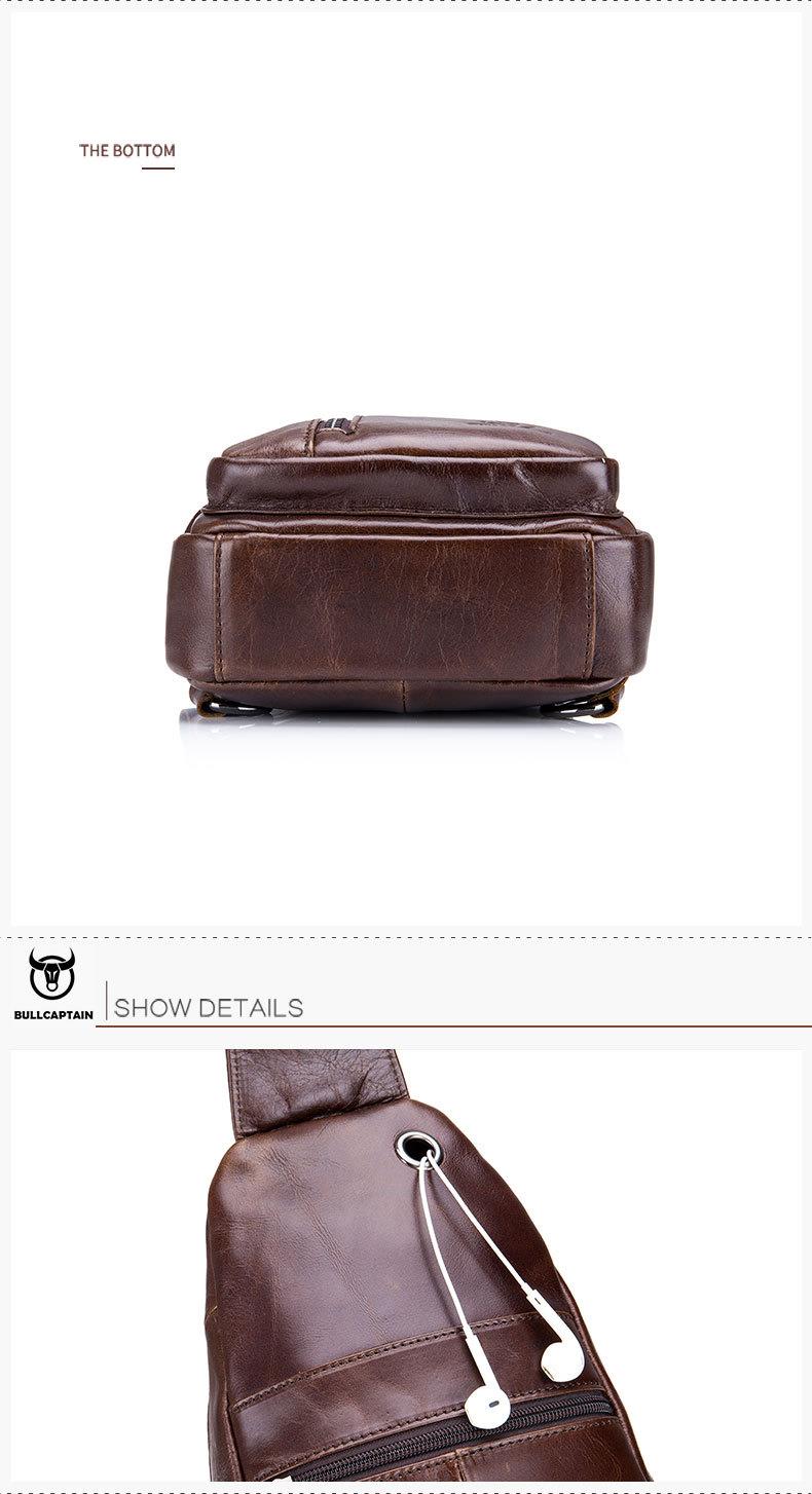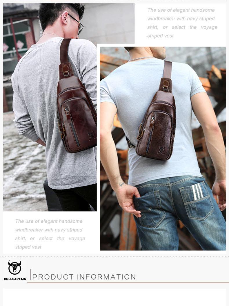 牛船长男士真皮单肩斜挎胸包头层牛皮时尚多功能运动休闲胸前包