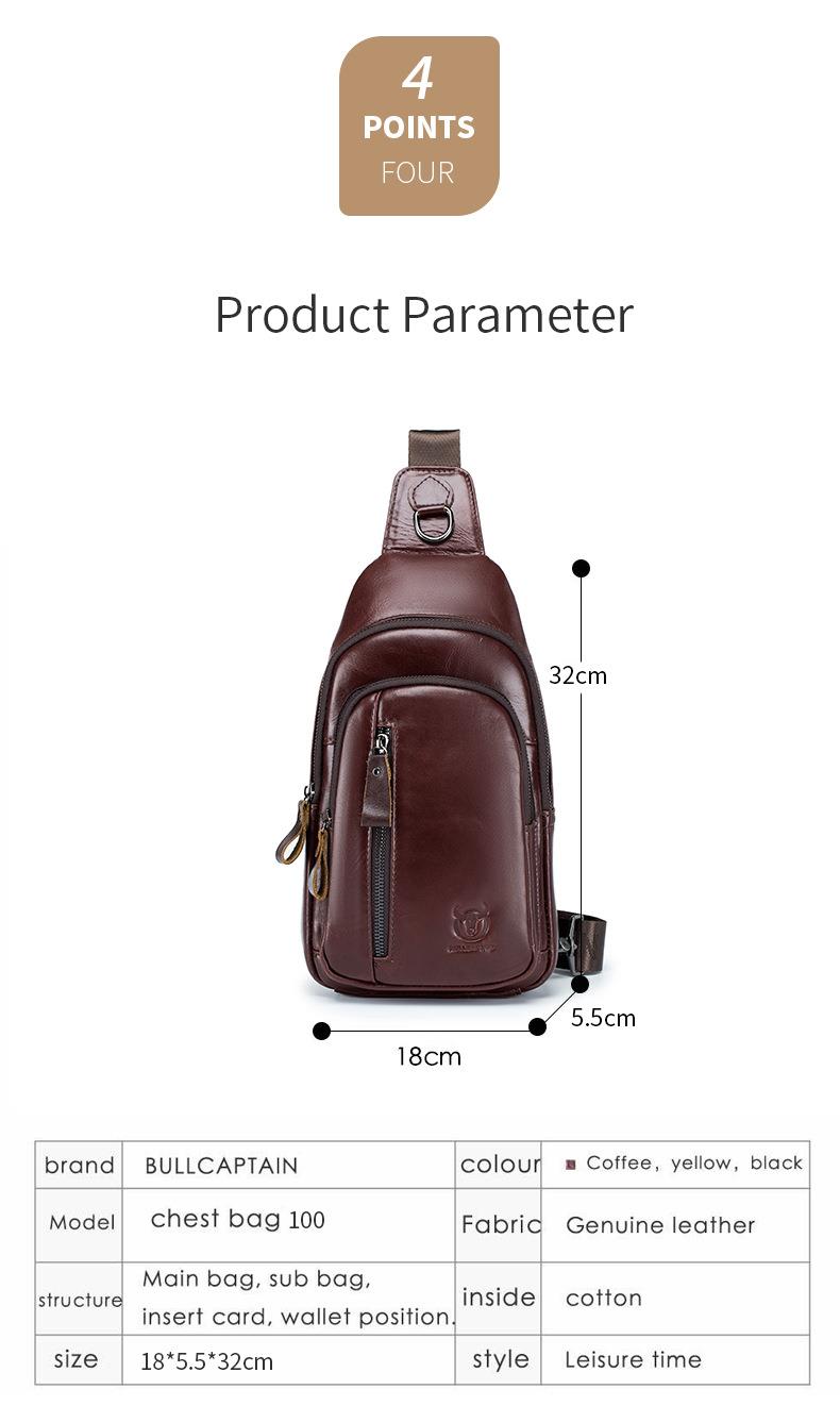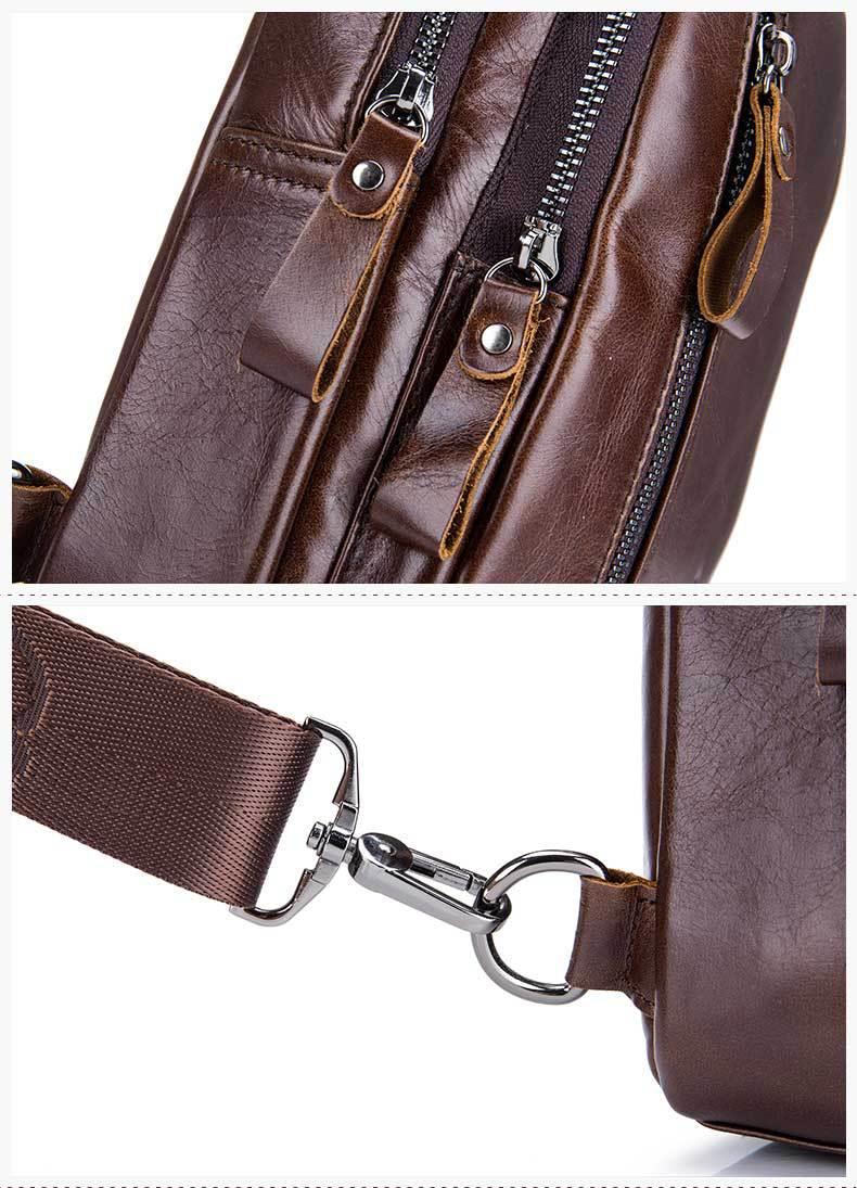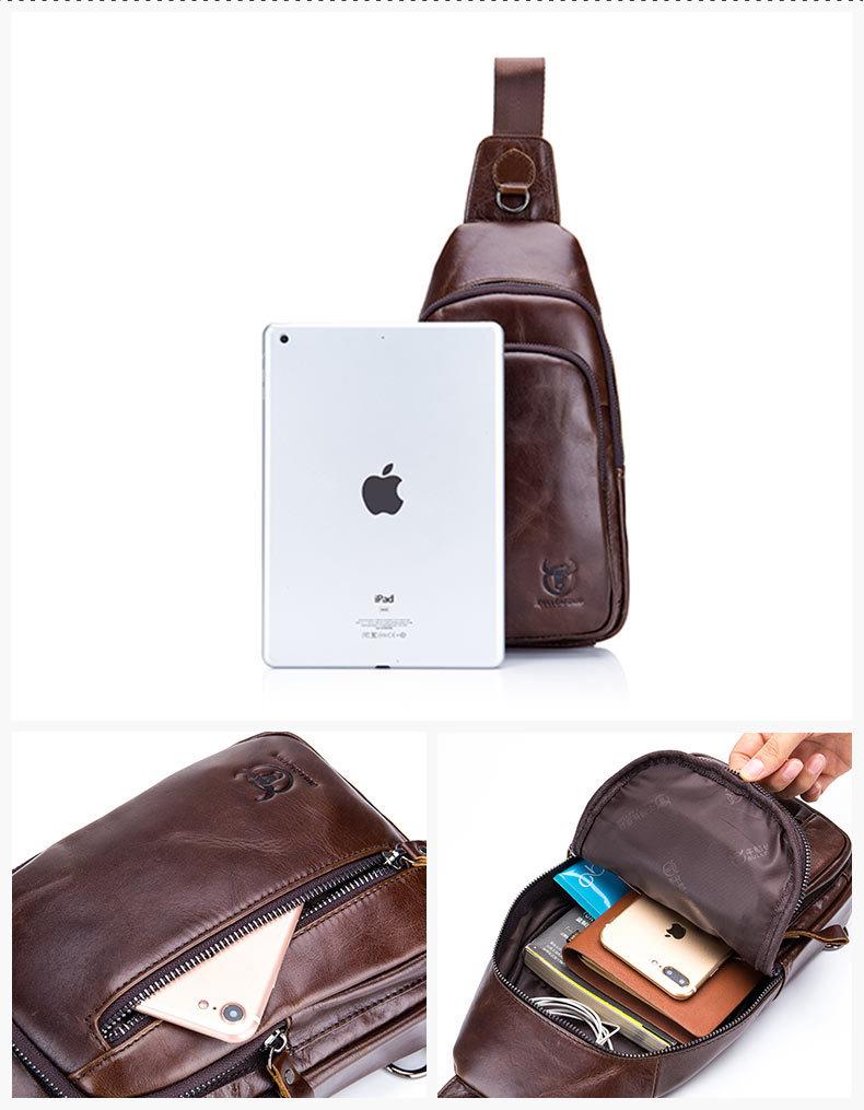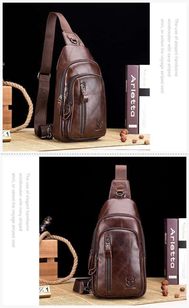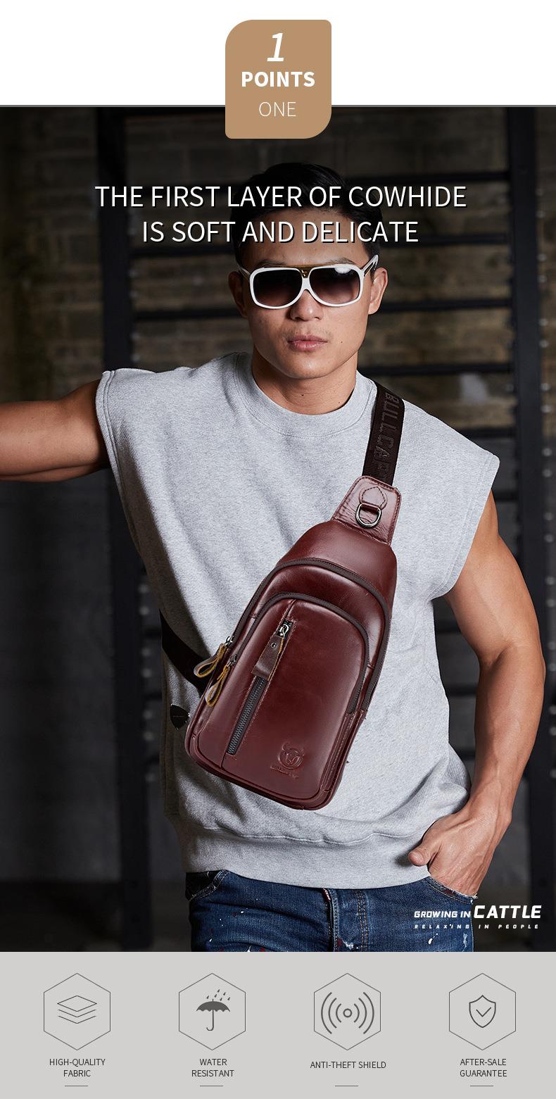 牛船长男士真皮单肩斜挎胸包头层牛皮时尚多功能运动休闲胸前包