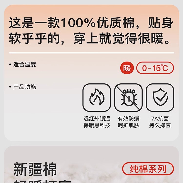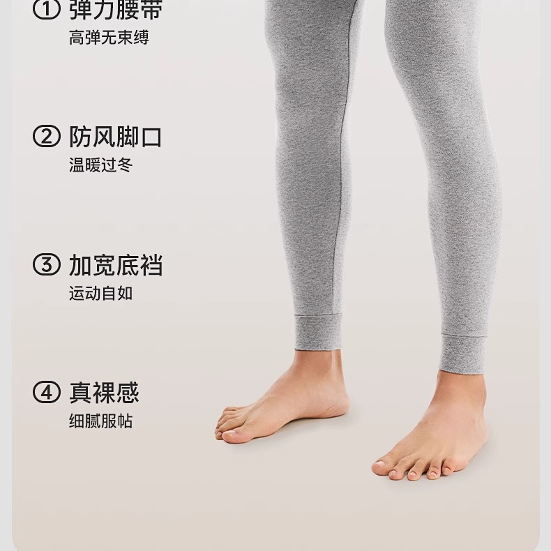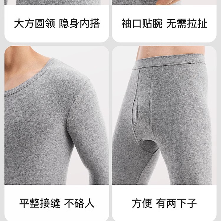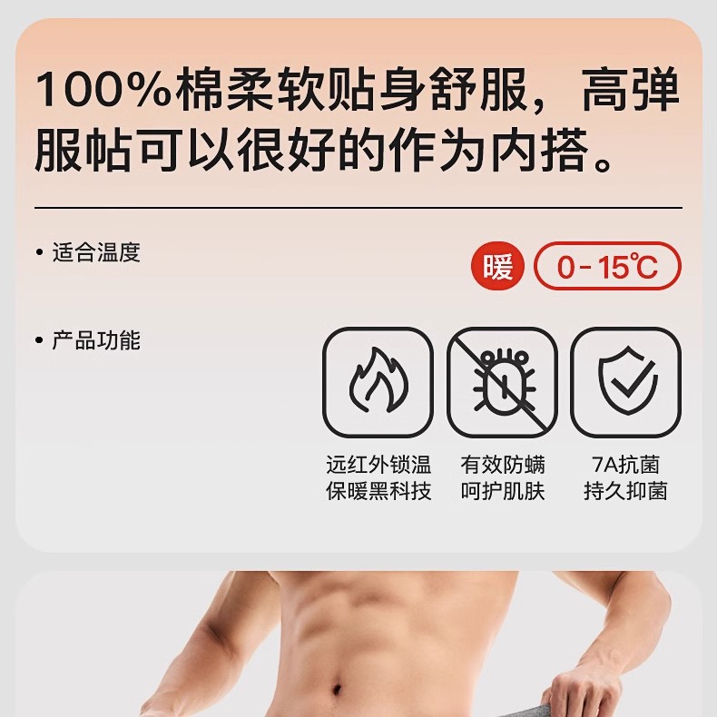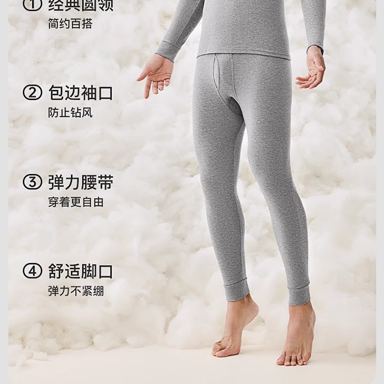 【拍2件立减20元】【60s新疆长绒棉打底衫+保暖裤】220g轻厚男士7A抗菌发热保暖棉衣 全棉抗起球耐磨