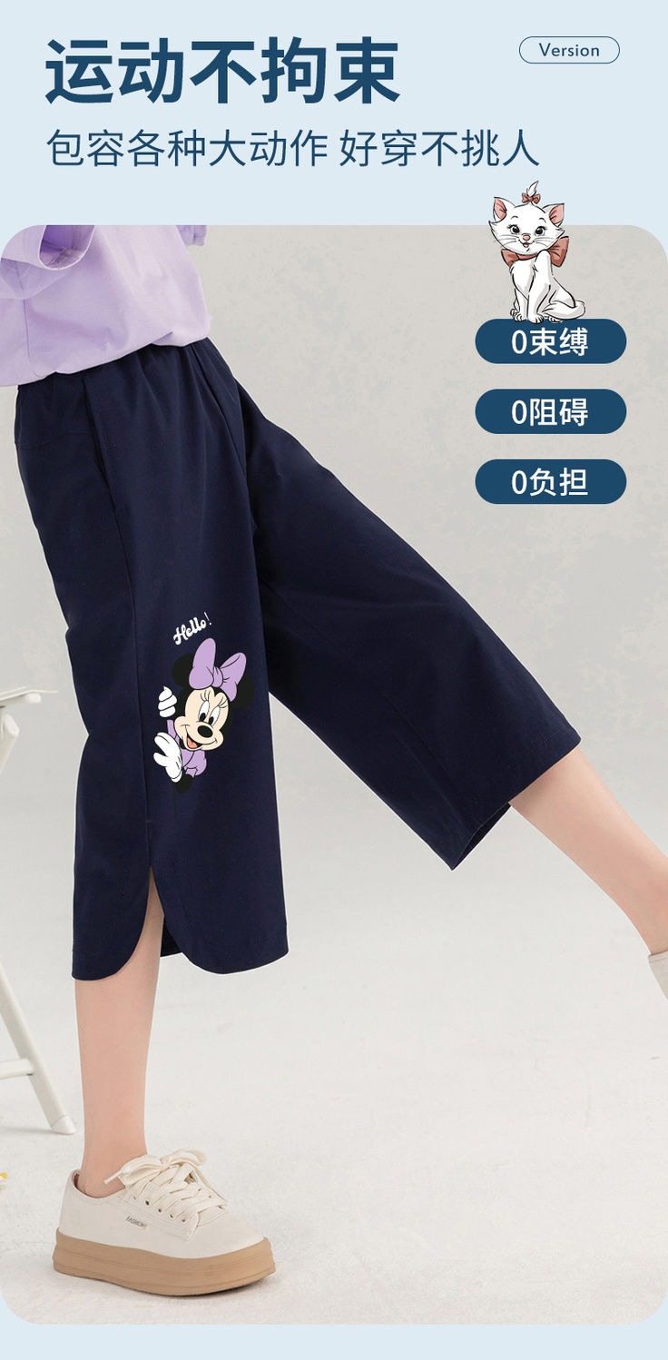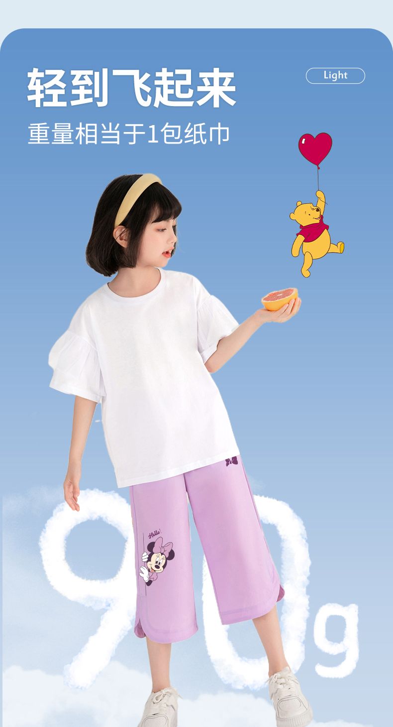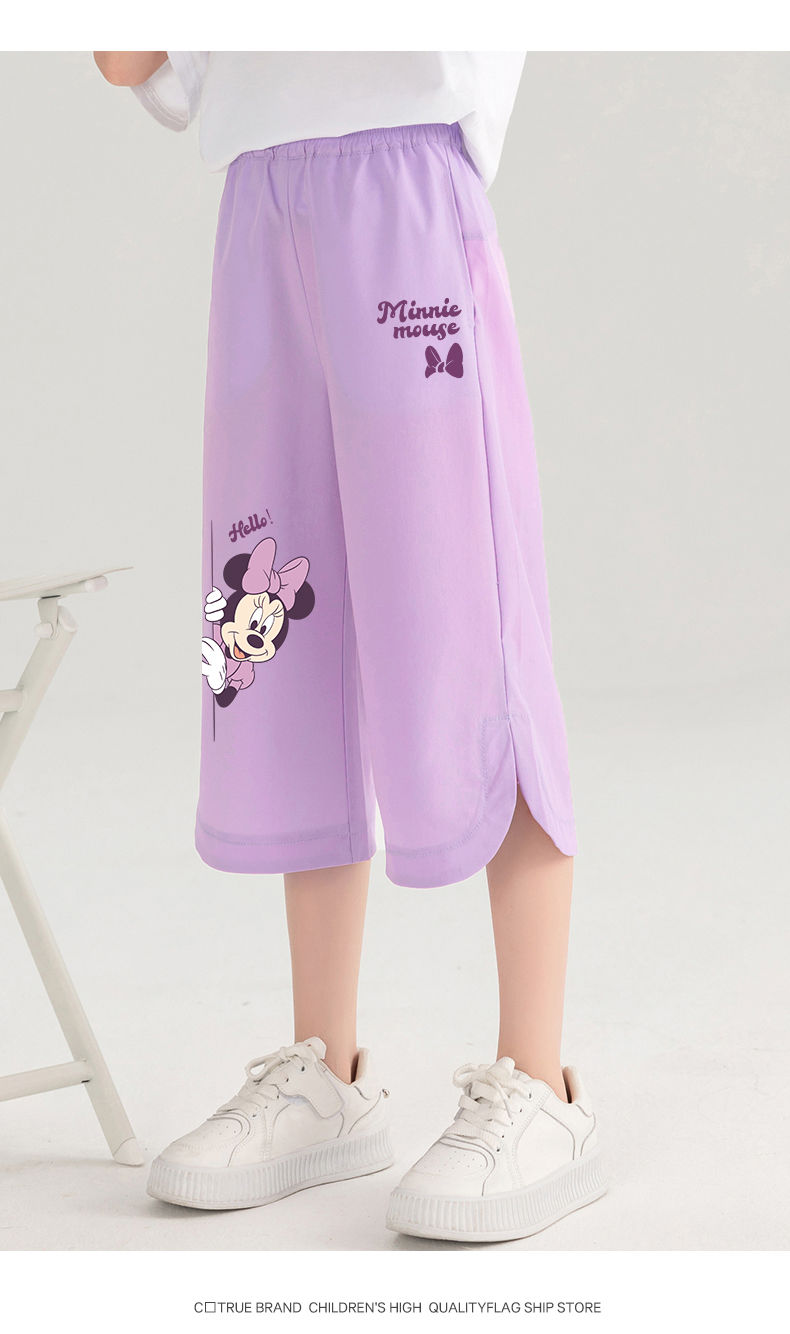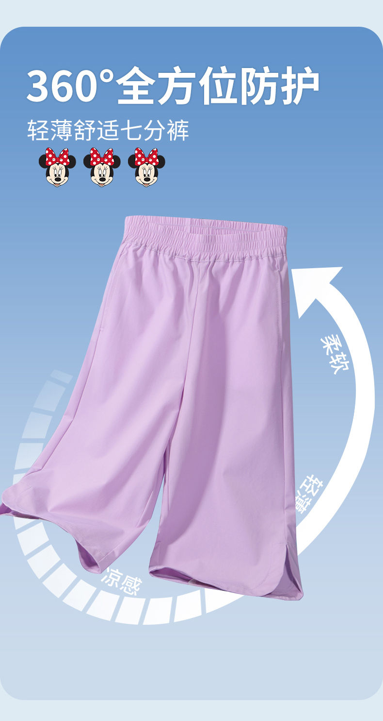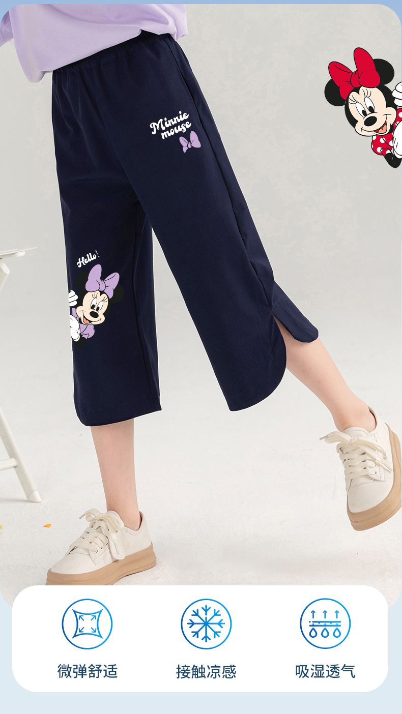 迪士尼女童七分裤夏季薄款冰丝儿童裤子2025新款女大童短裤外穿潮