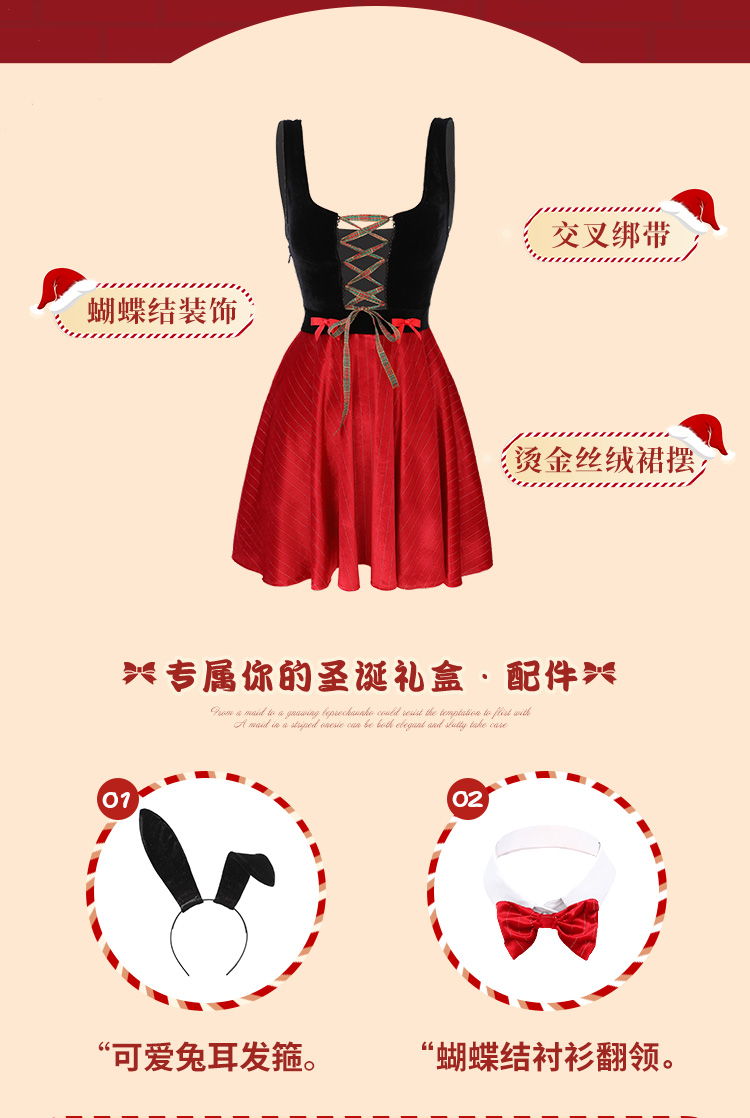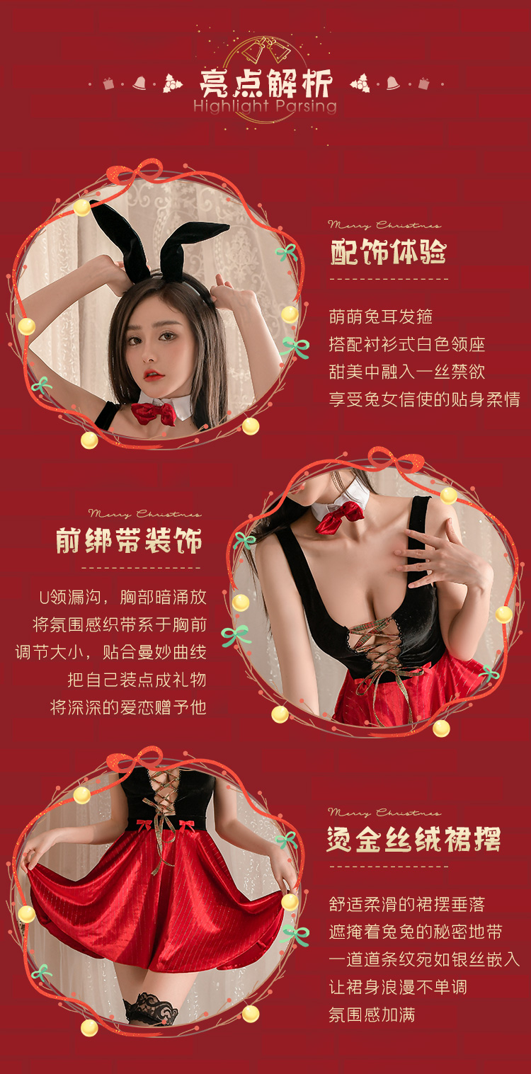 霏慕 圣诞甜欲前绑带丝绒兔女套装6580 情趣内衣性感均码